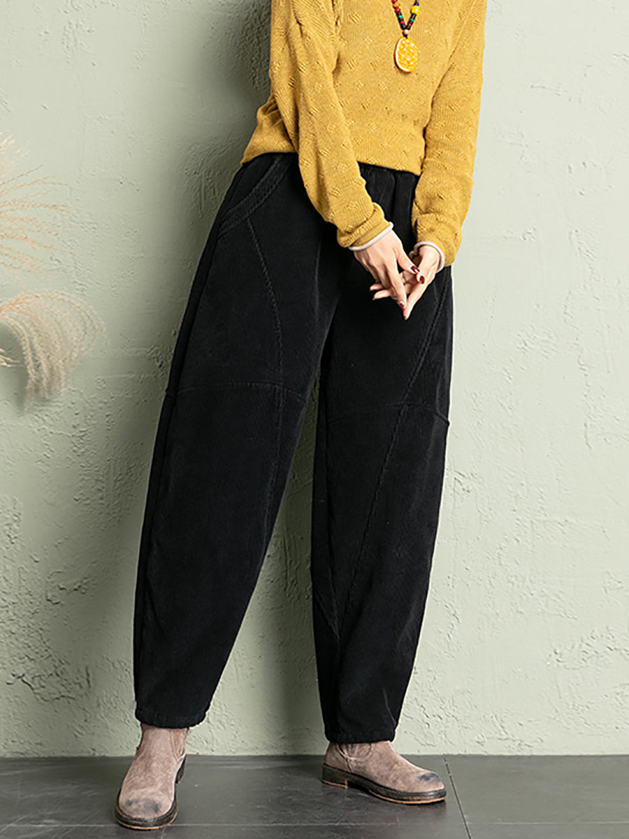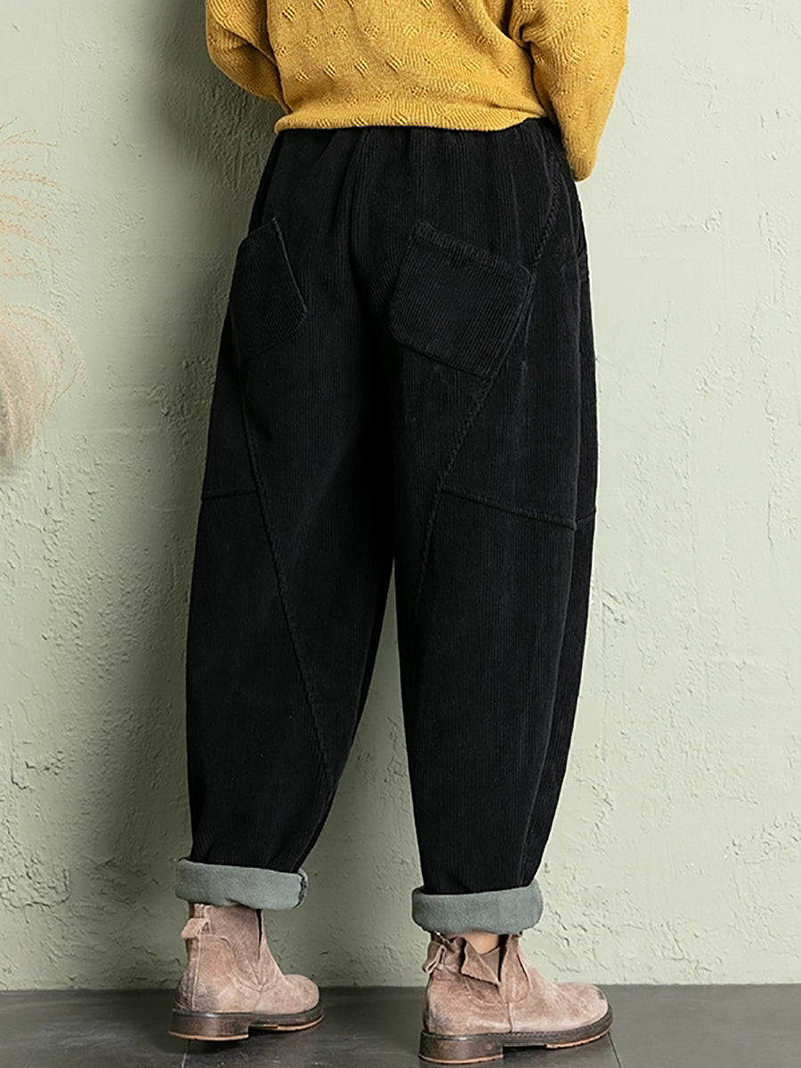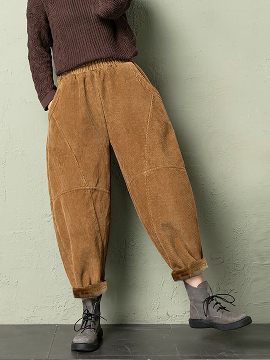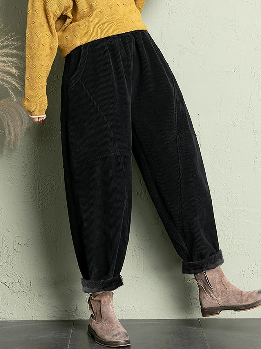 بنطلون حريمي شتوي كاجوال من قماش مخملي بلون نقي