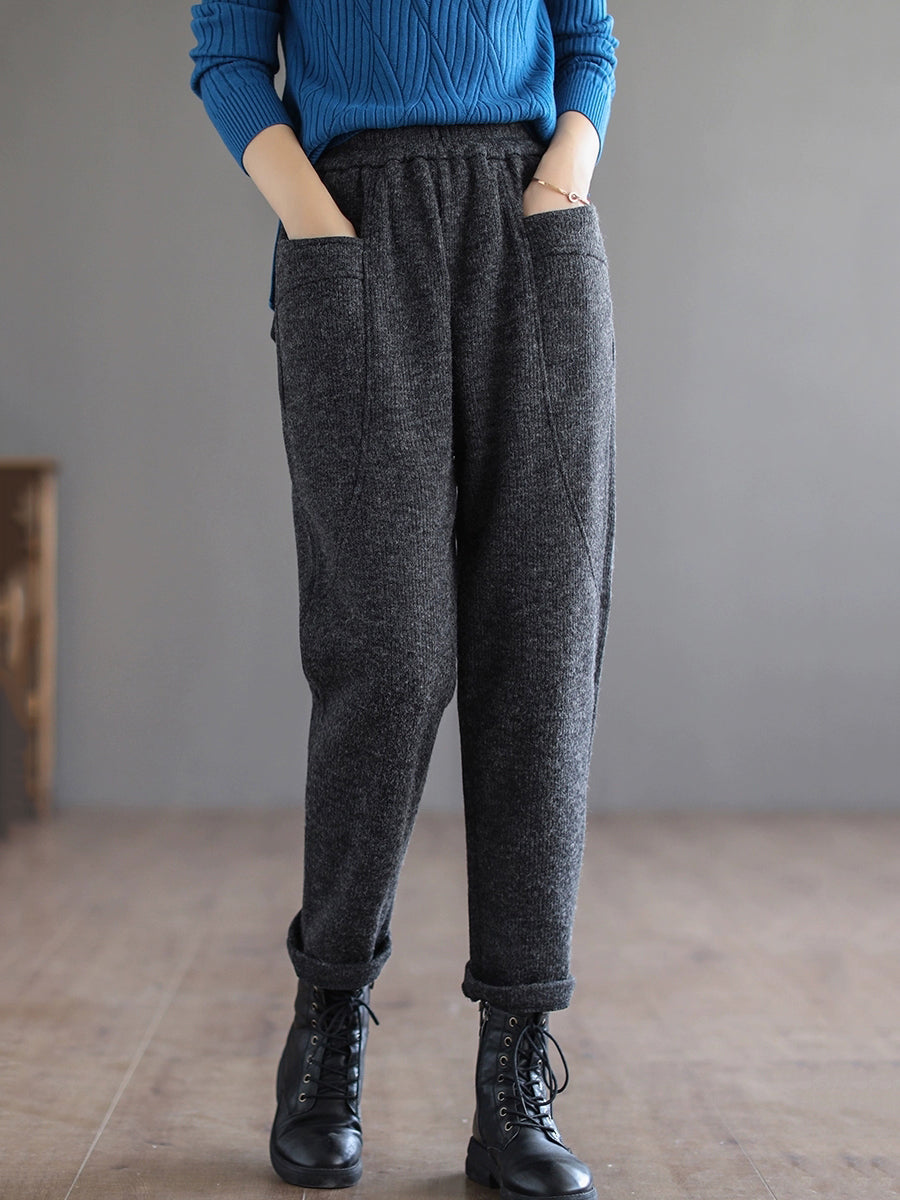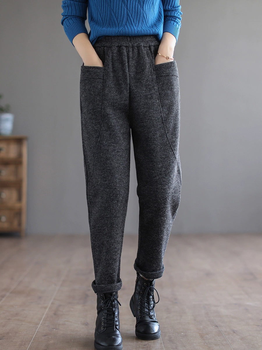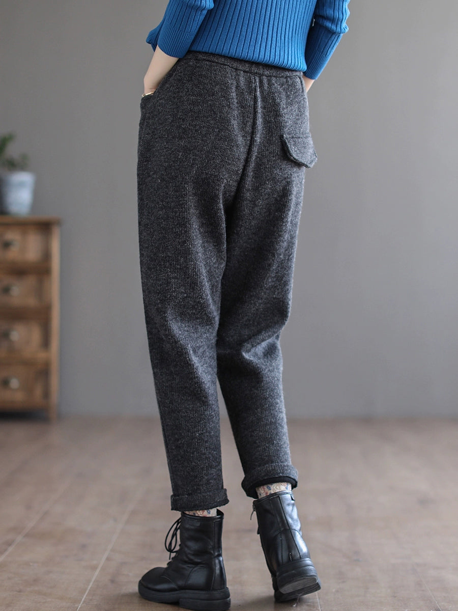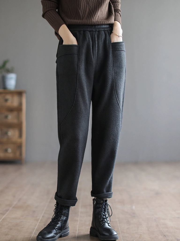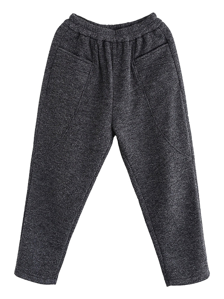 بنطلون حريم نسائي شتوي كاجوال مبطن بالصوف بلون نقي