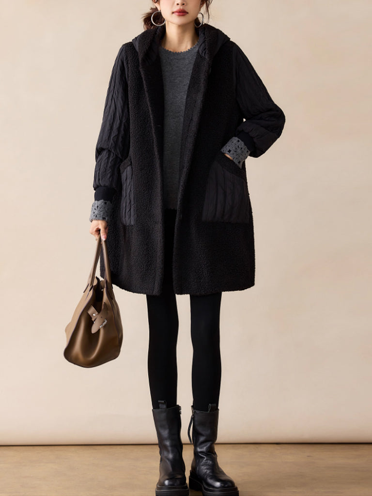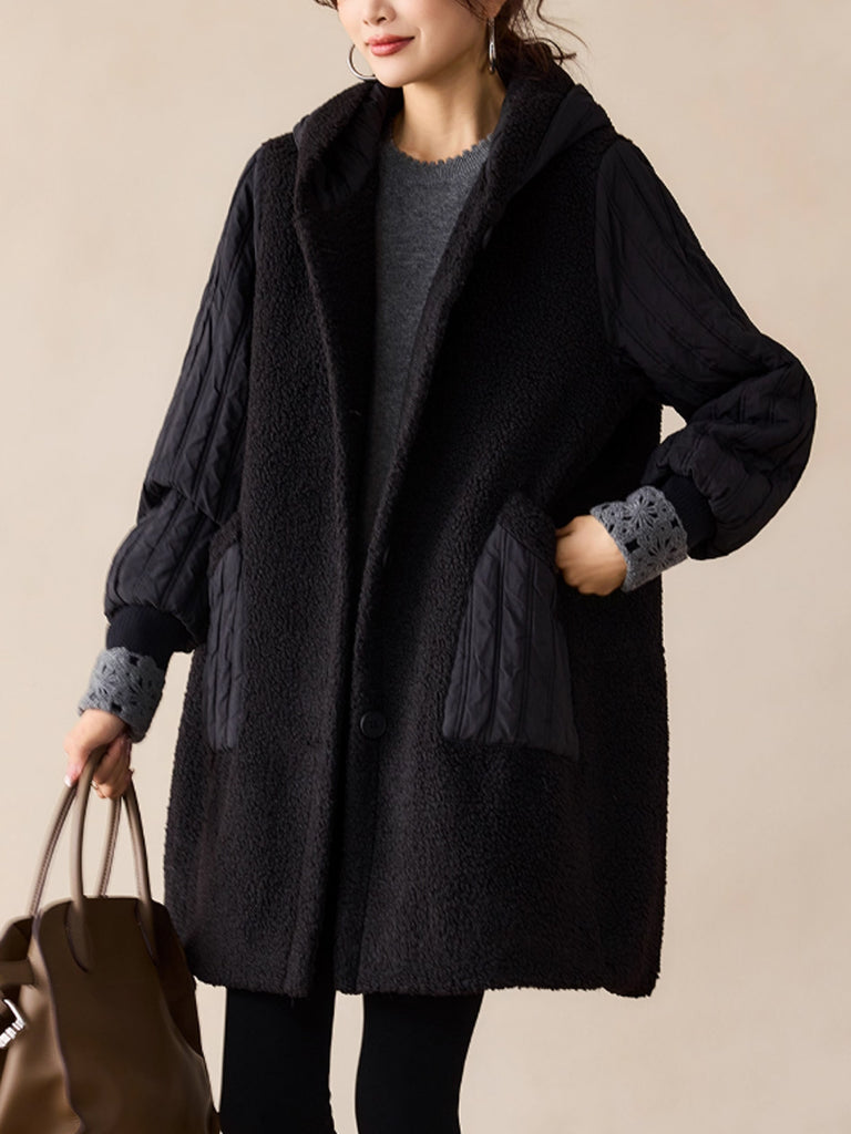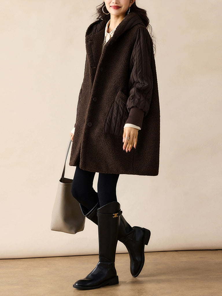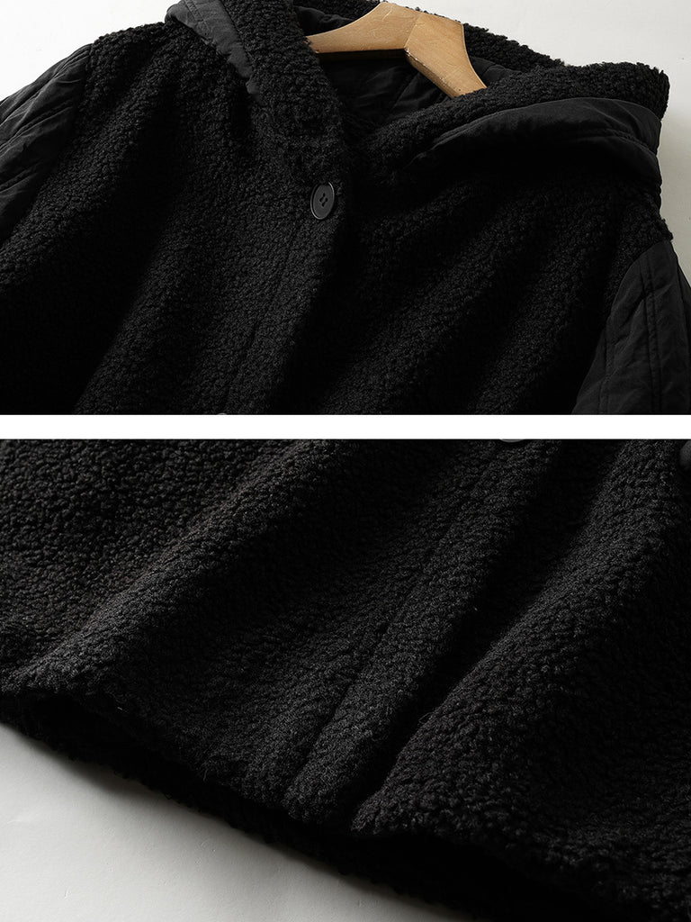 معطف نسائي شتوي كاجوال من الصوف بغطاء للرأس بلون نقي