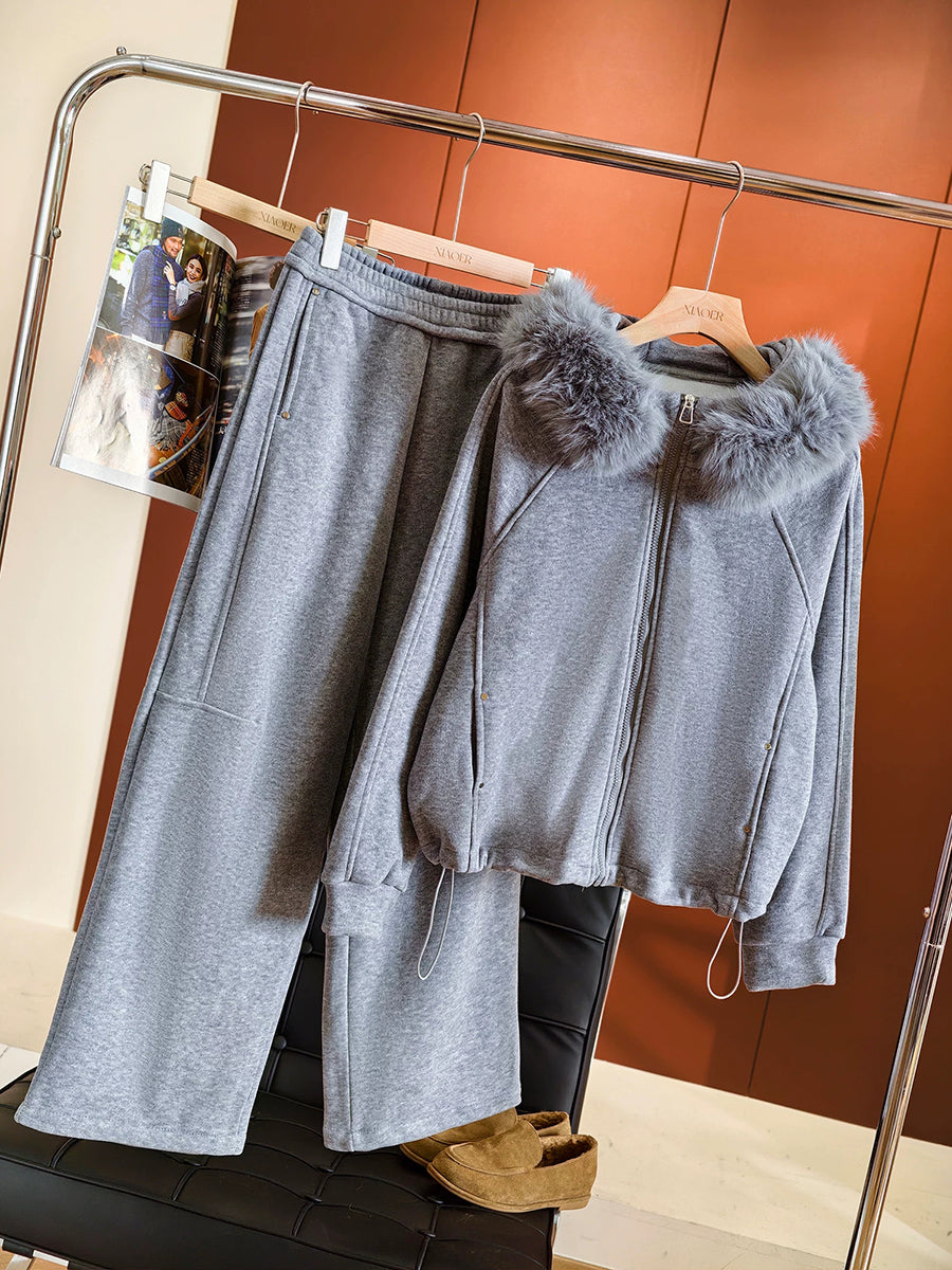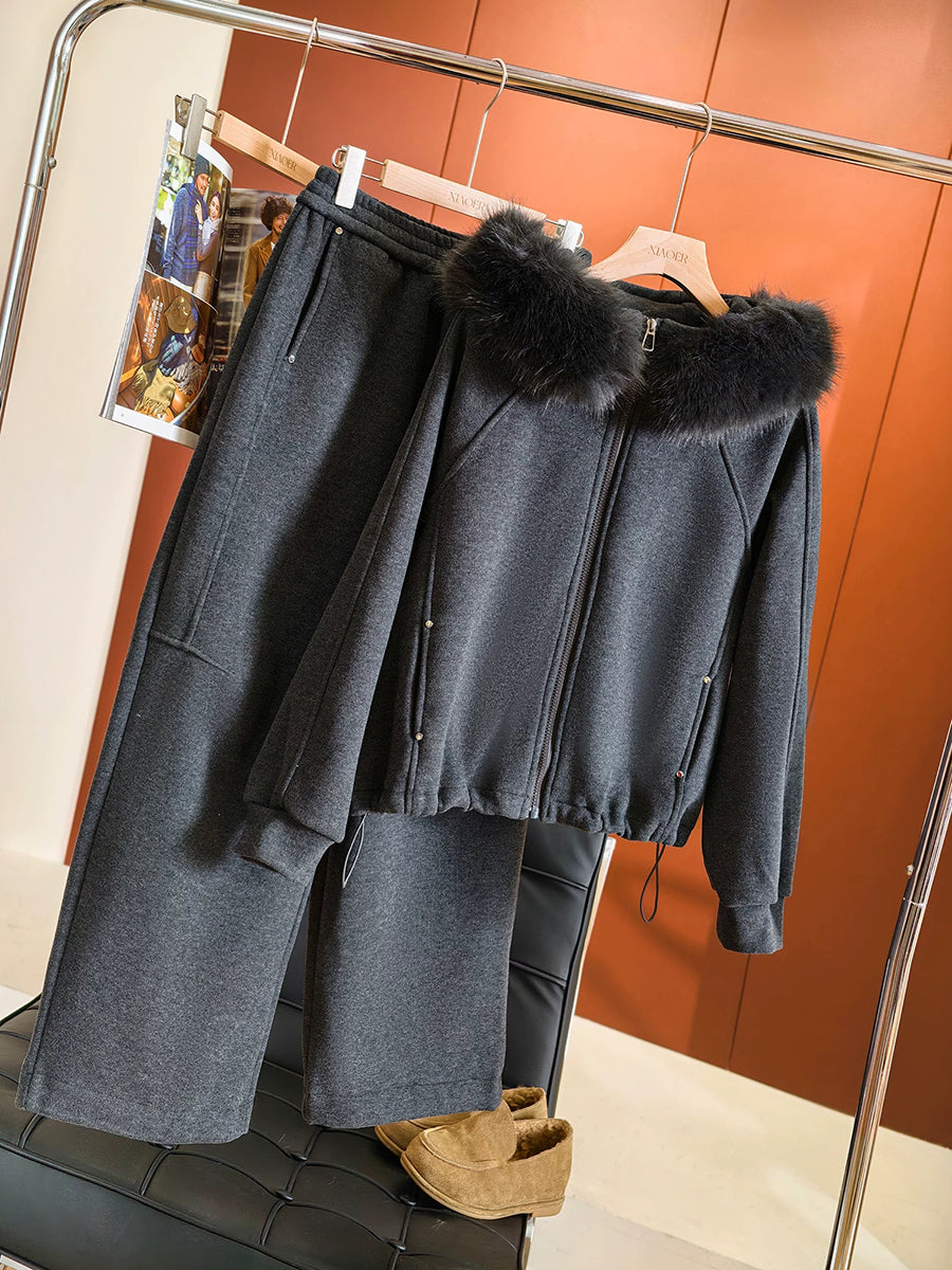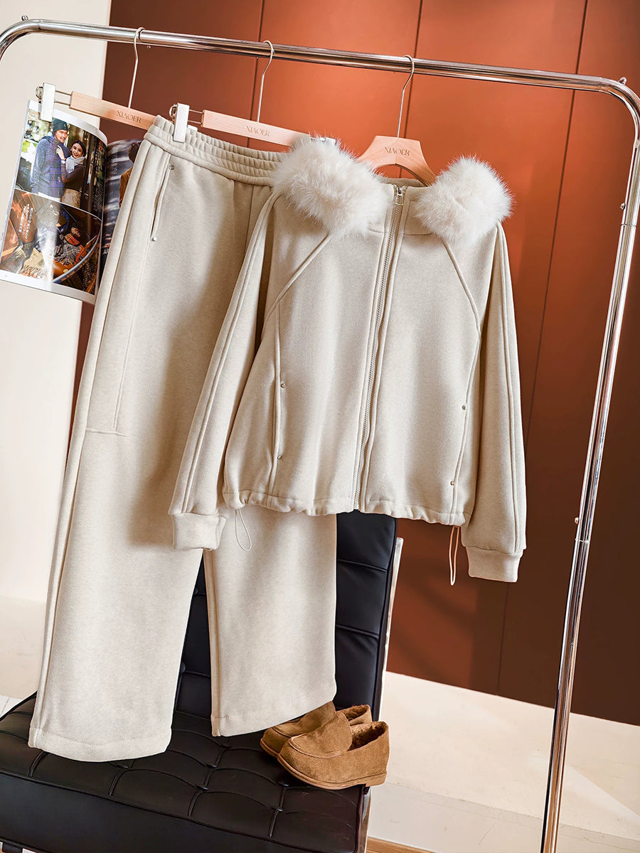 بدلات شتوية نسائية كاجوال بألوان سادة مزودة بغطاء للرأس