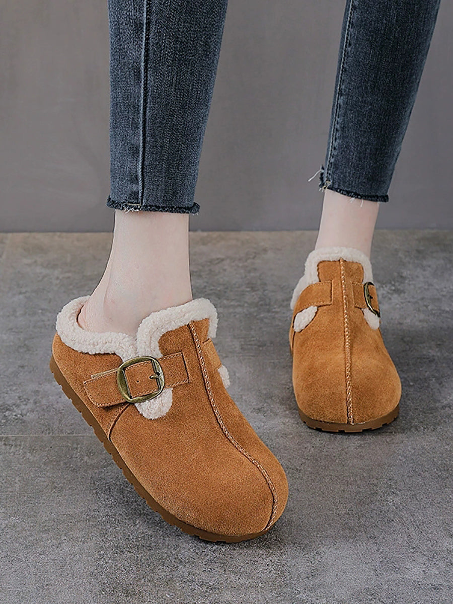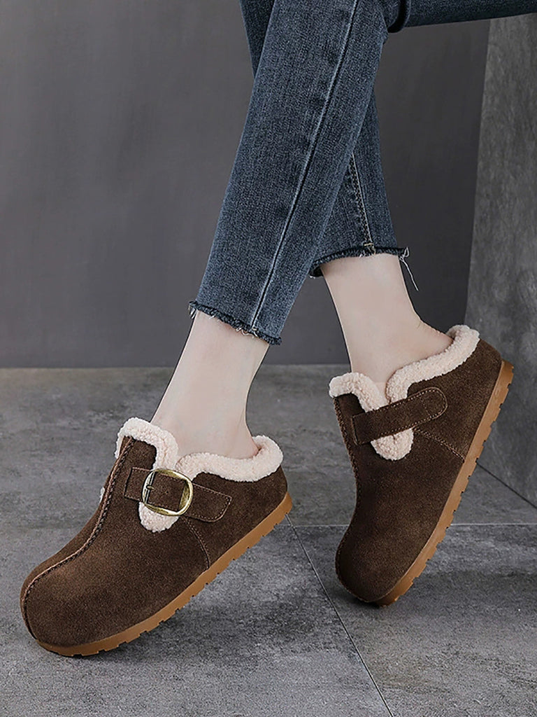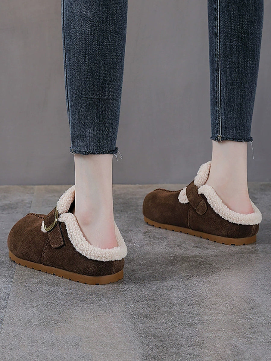 أحذية نسائية شتوية كاجوال من جلد الغزال مبطنة بالصوف