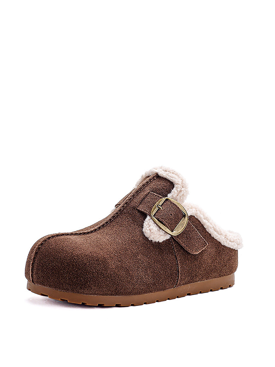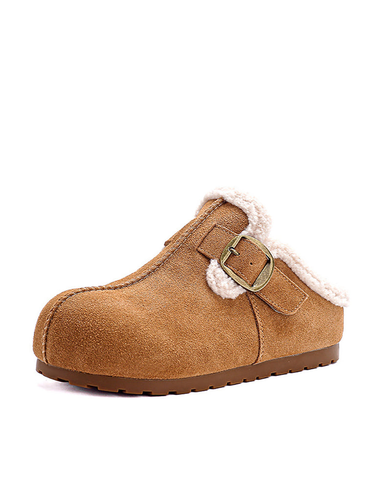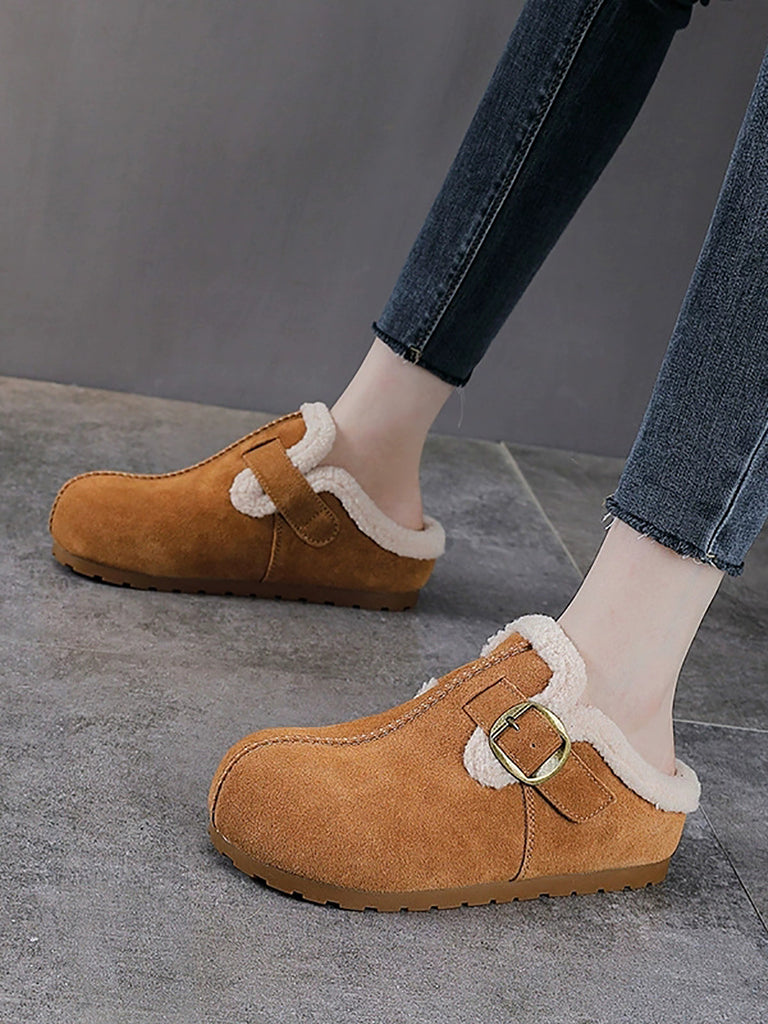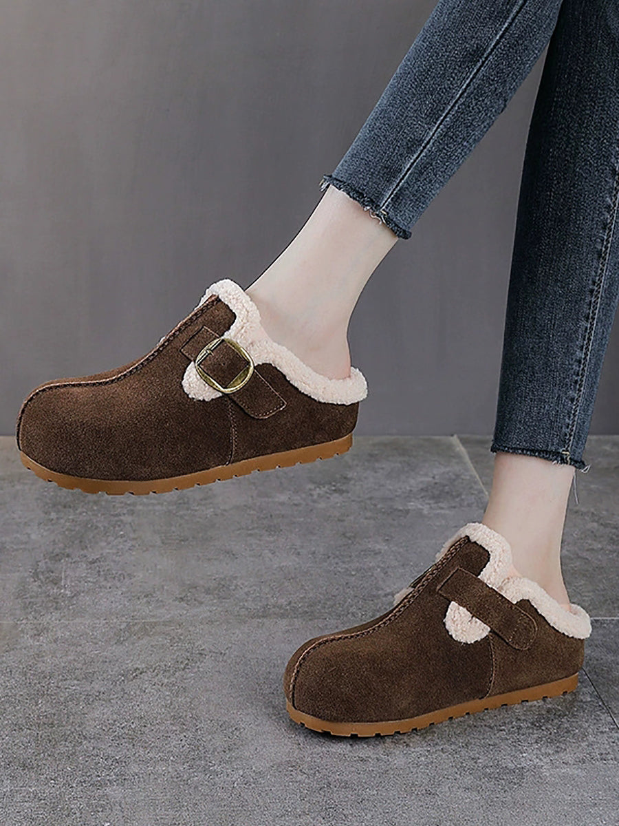 أحذية نسائية شتوية كاجوال من جلد الغزال مبطنة بالصوف