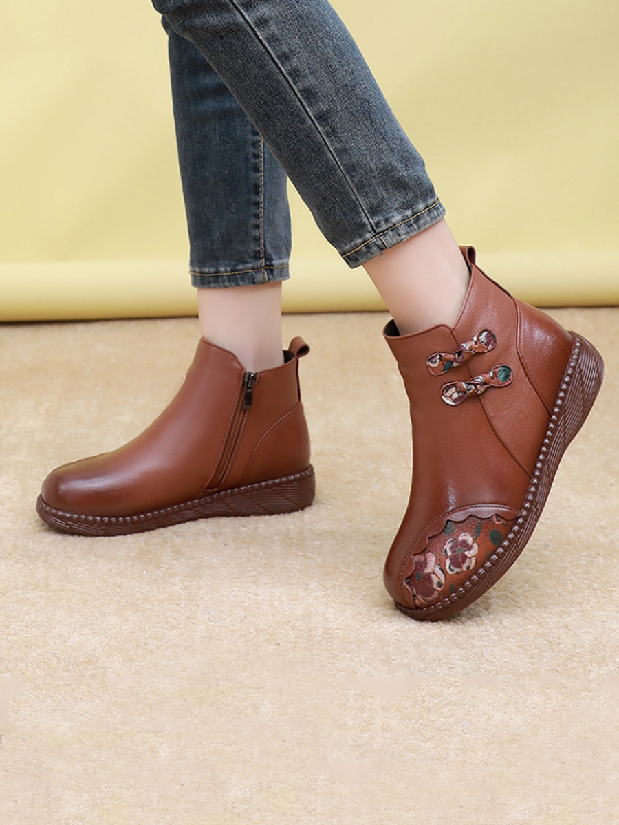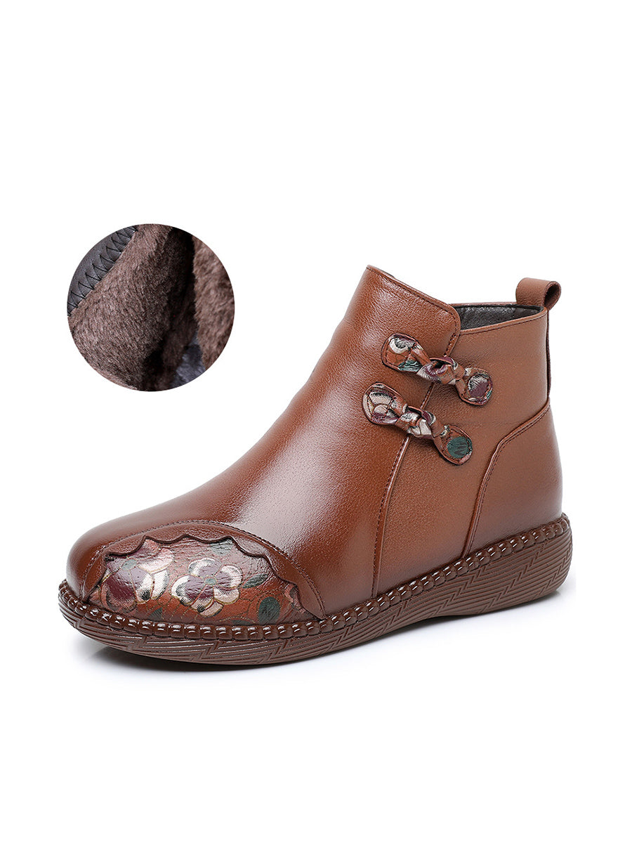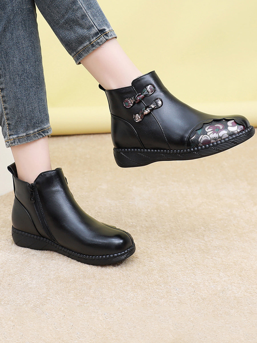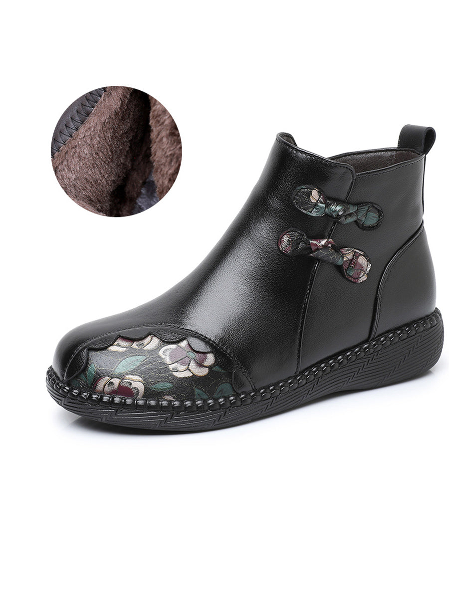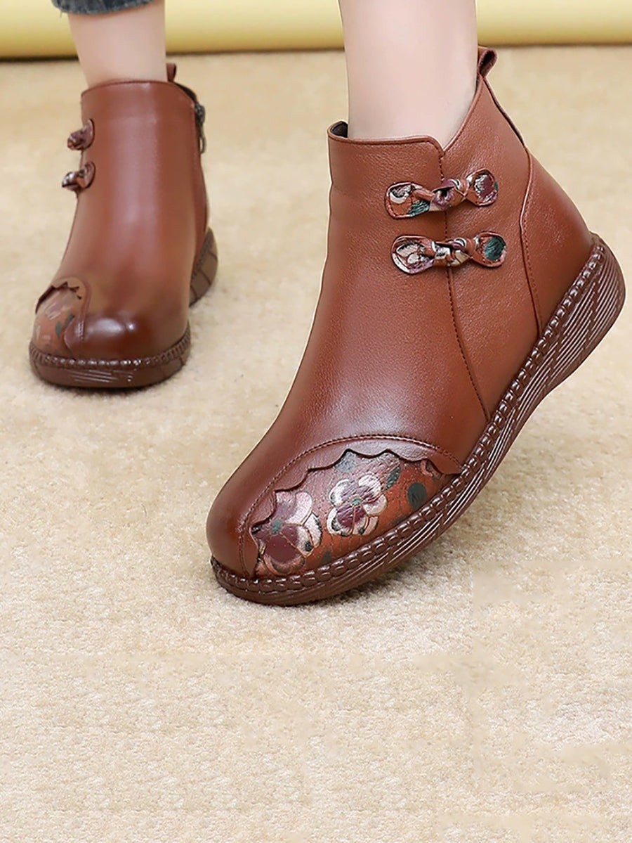 أحذية نسائية شتوية قصيرة مزينة بنقوش زهور عرقية