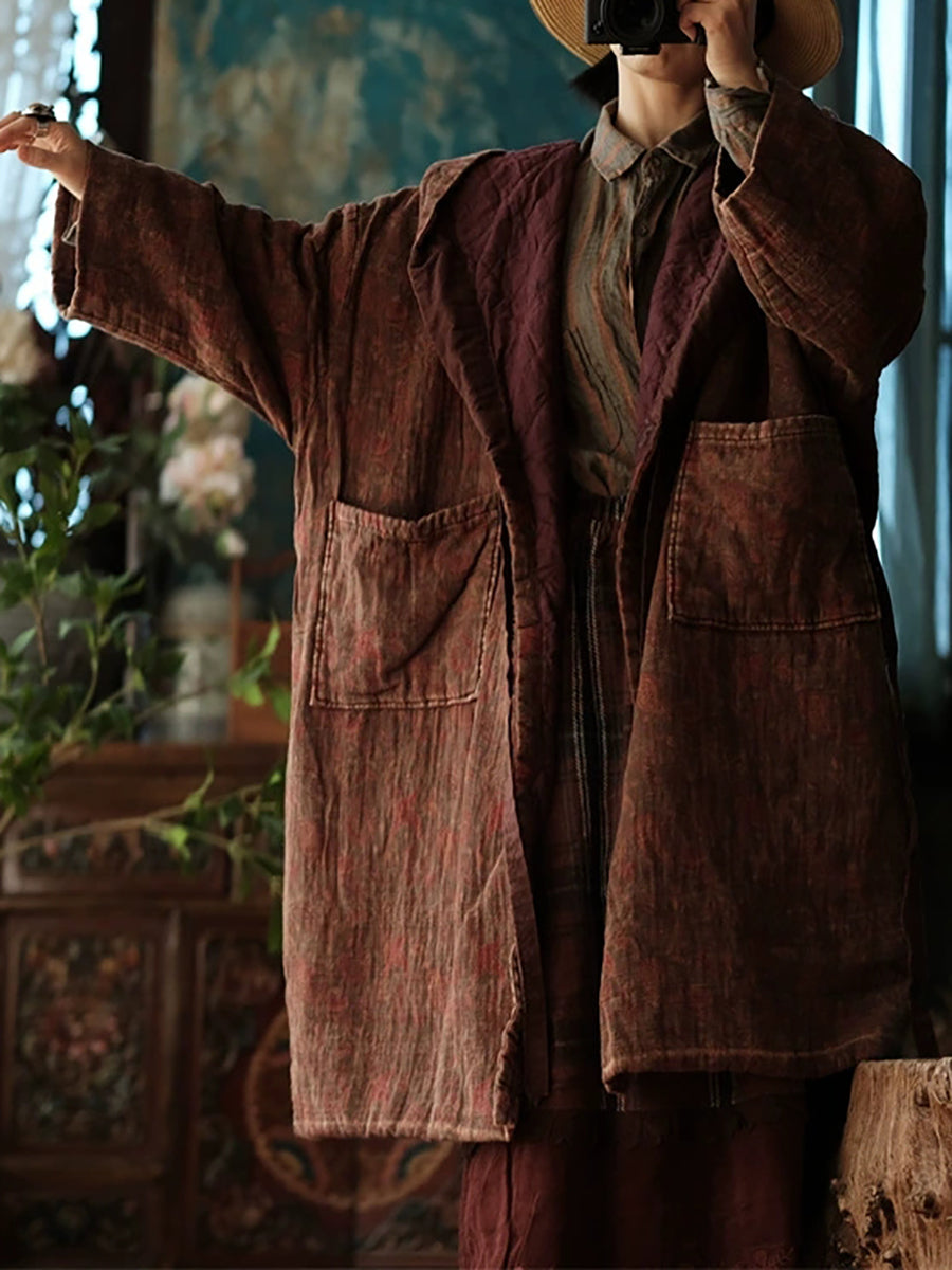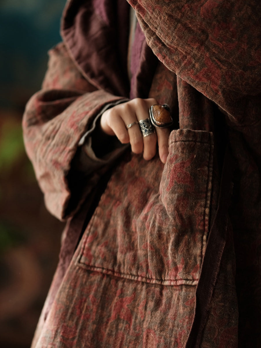 معطف نسائي شتوي من القطن بغطاء رأس مطبوع عليه عرقيات