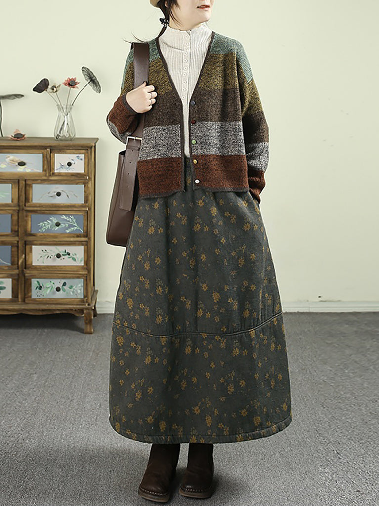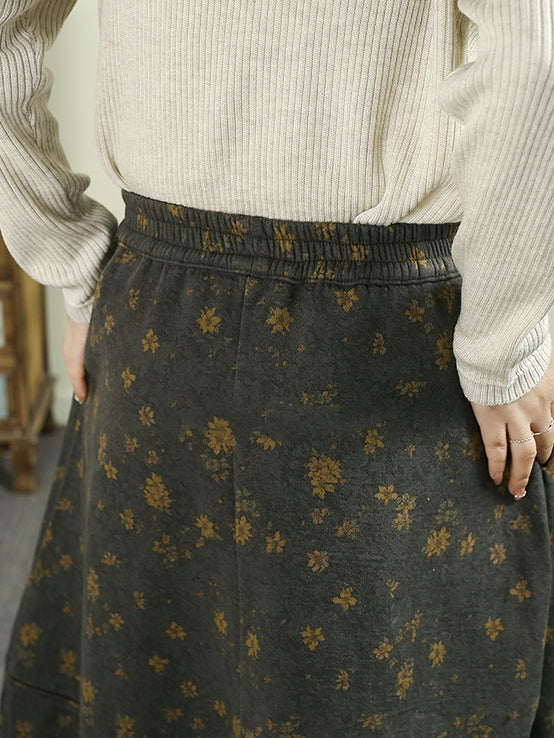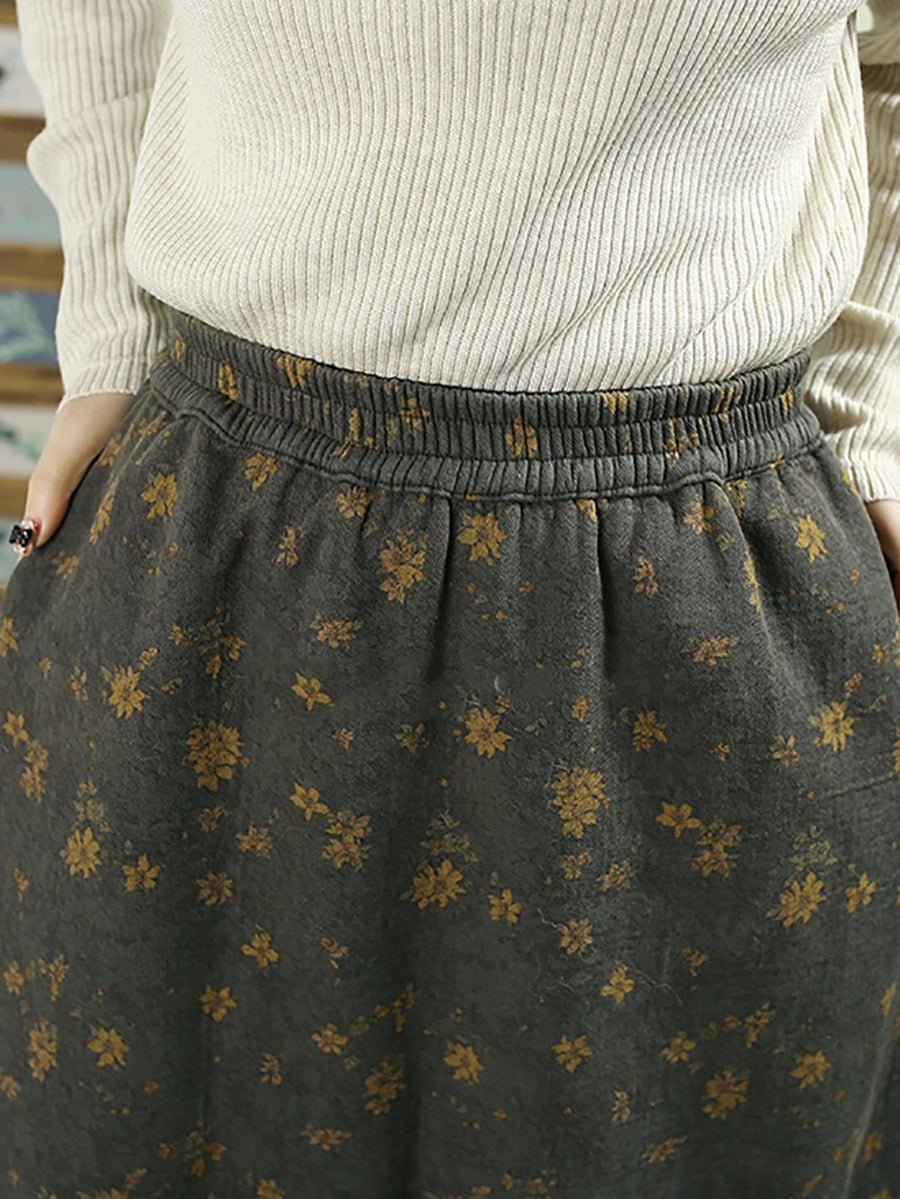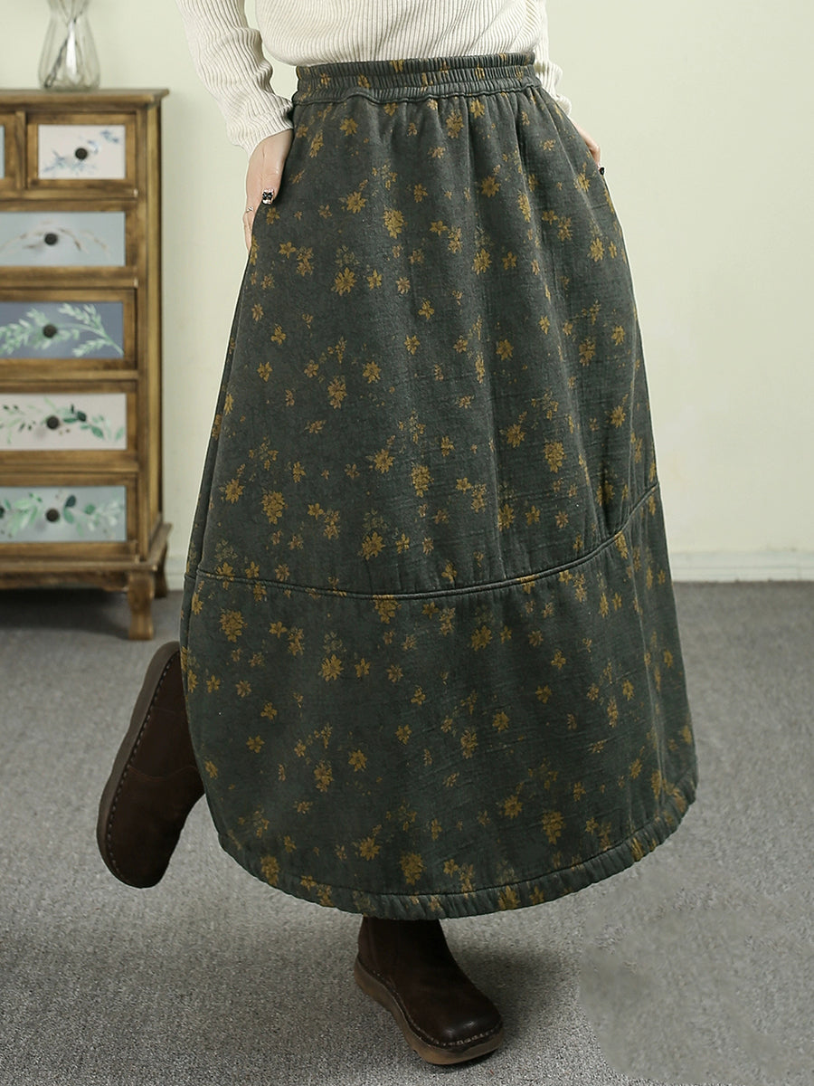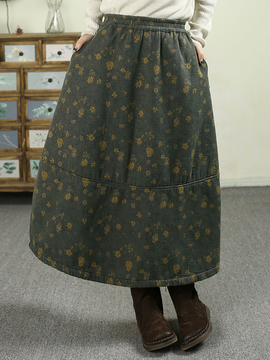 تنورة نسائية شتوية مبطنة بالفرو بنقشة زهور مصنوعة من القطن بنسبة 100% على شكل حرف A
