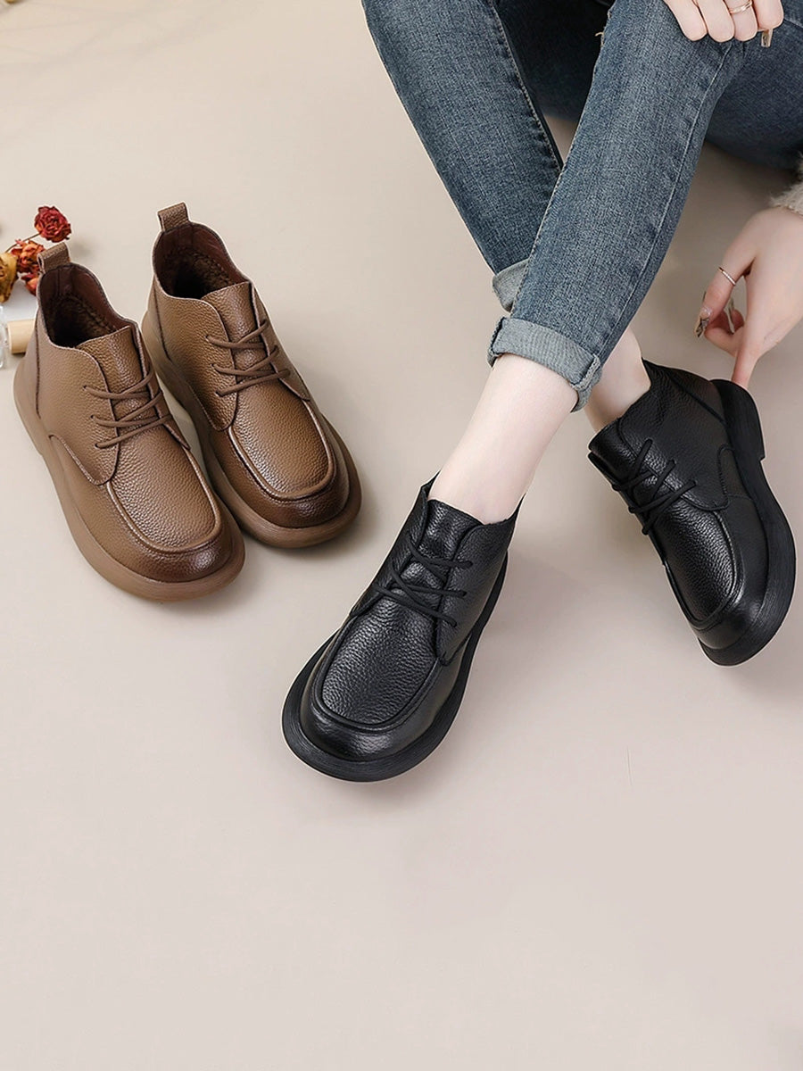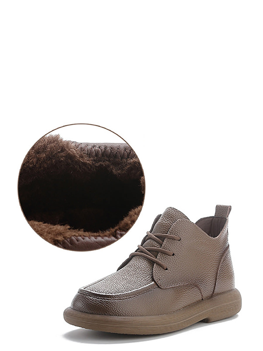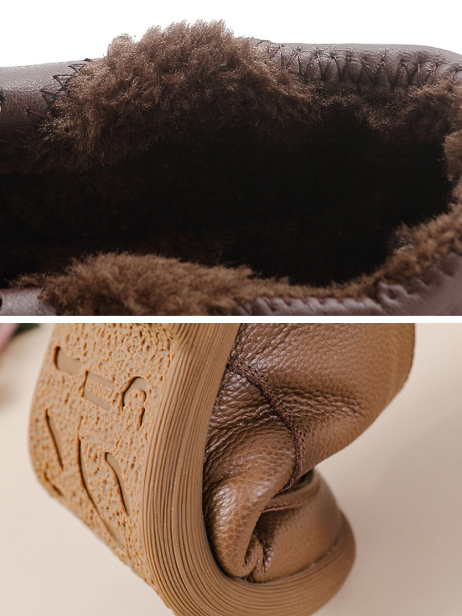 أحذية نسائية شتوية مسطحة من الجلد الطبيعي للكاحل