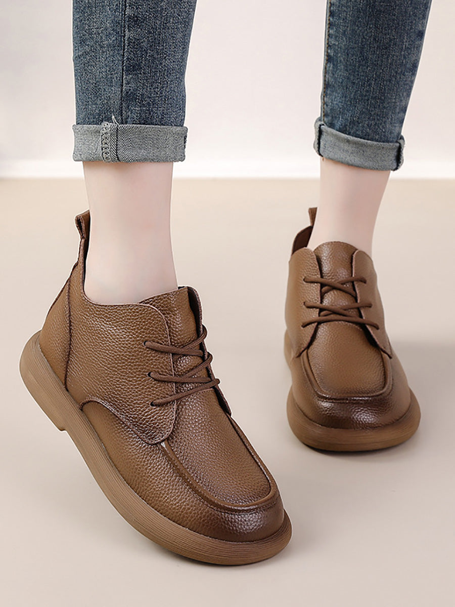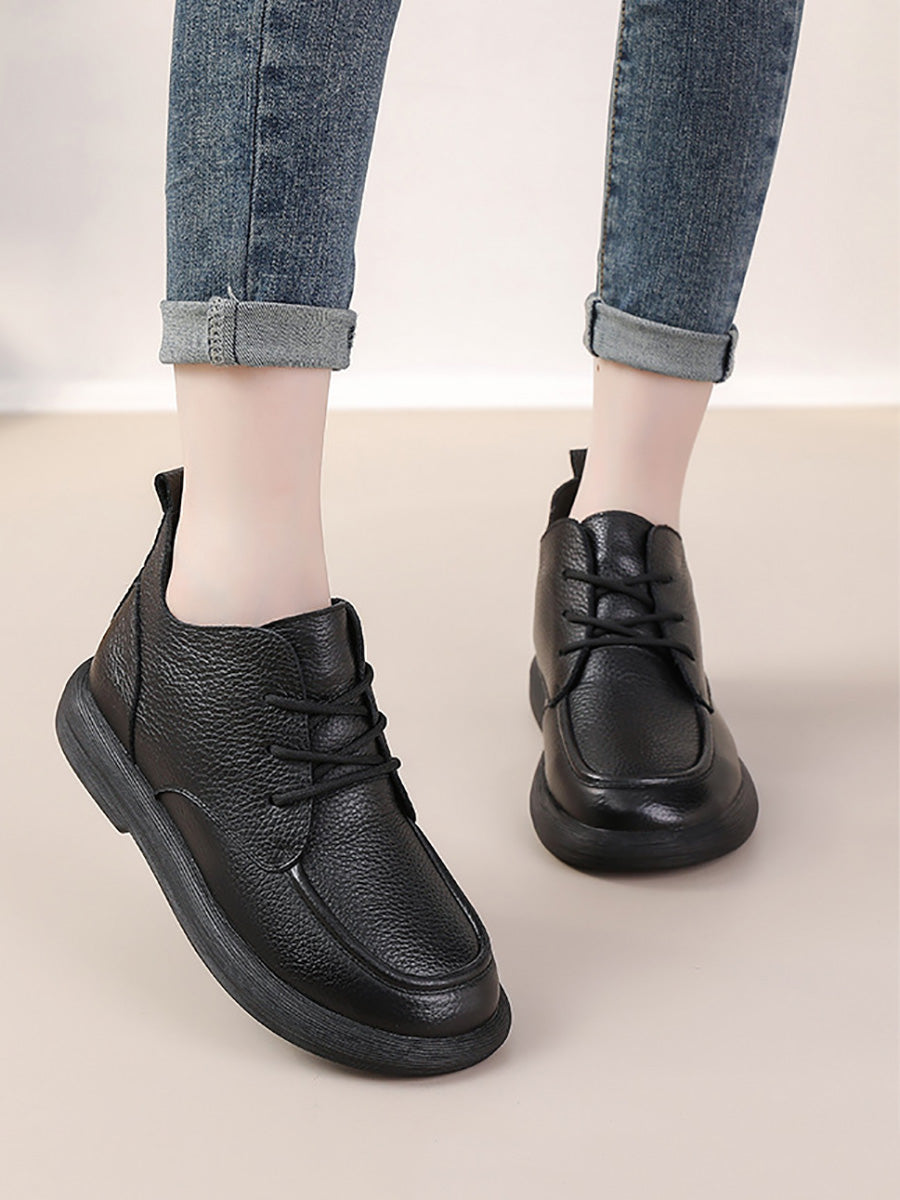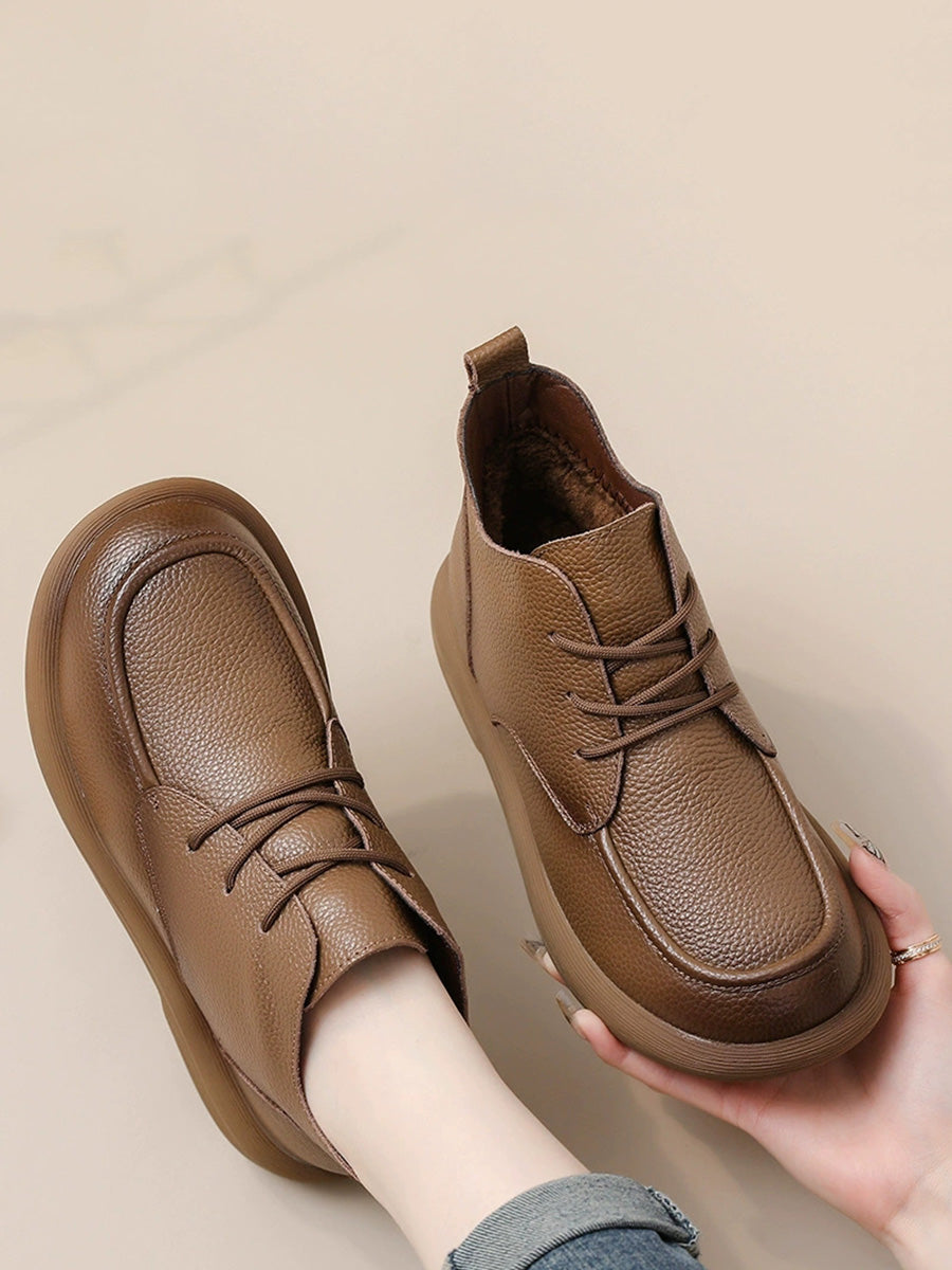 أحذية نسائية شتوية مسطحة من الجلد الطبيعي للكاحل
