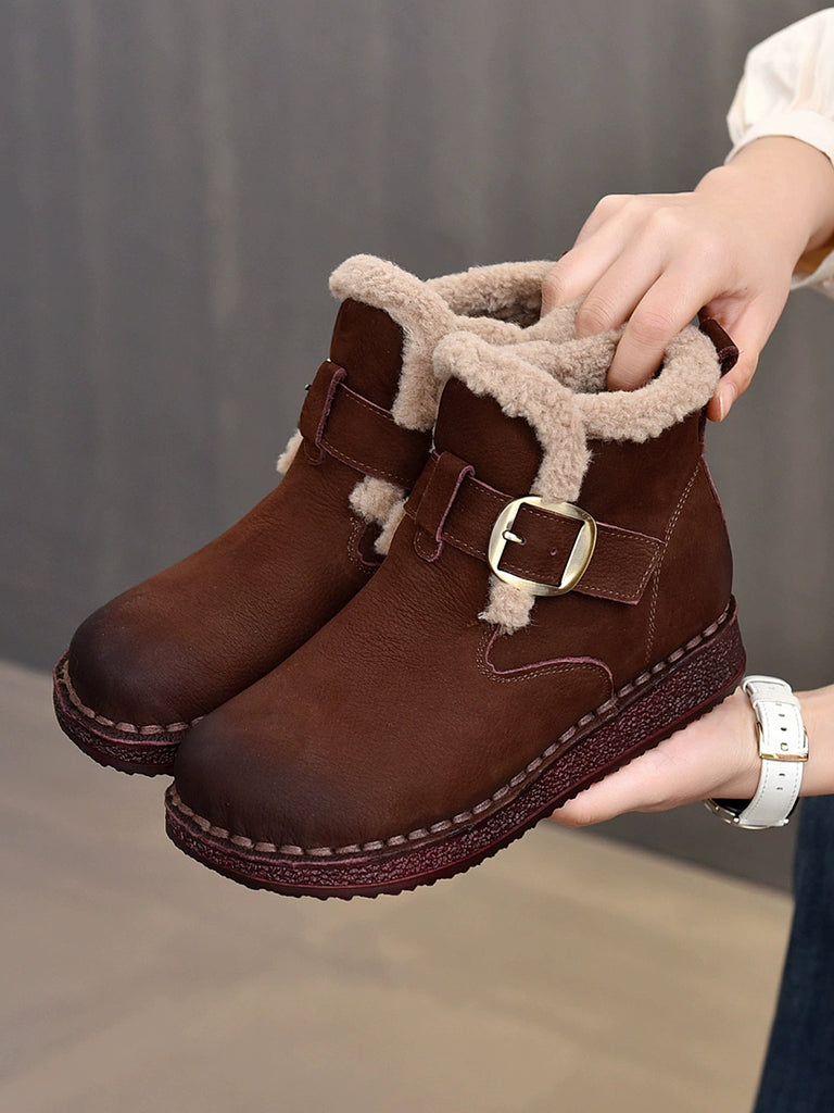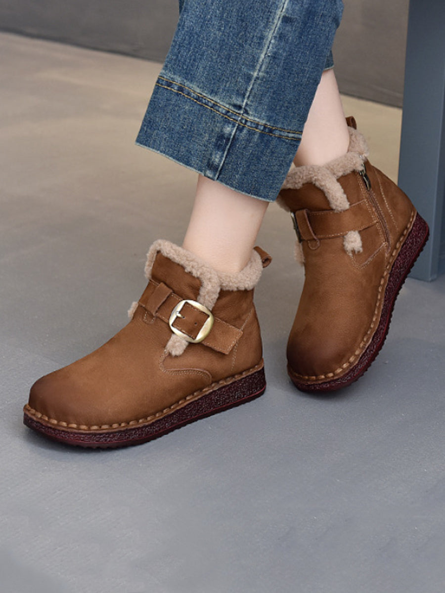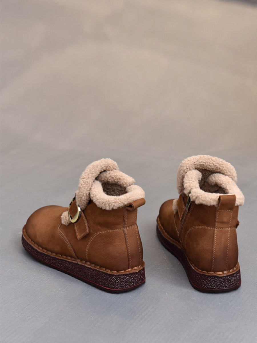 حذاء نسائي شتوي من الجلد الطبيعي مبطن بالصوف