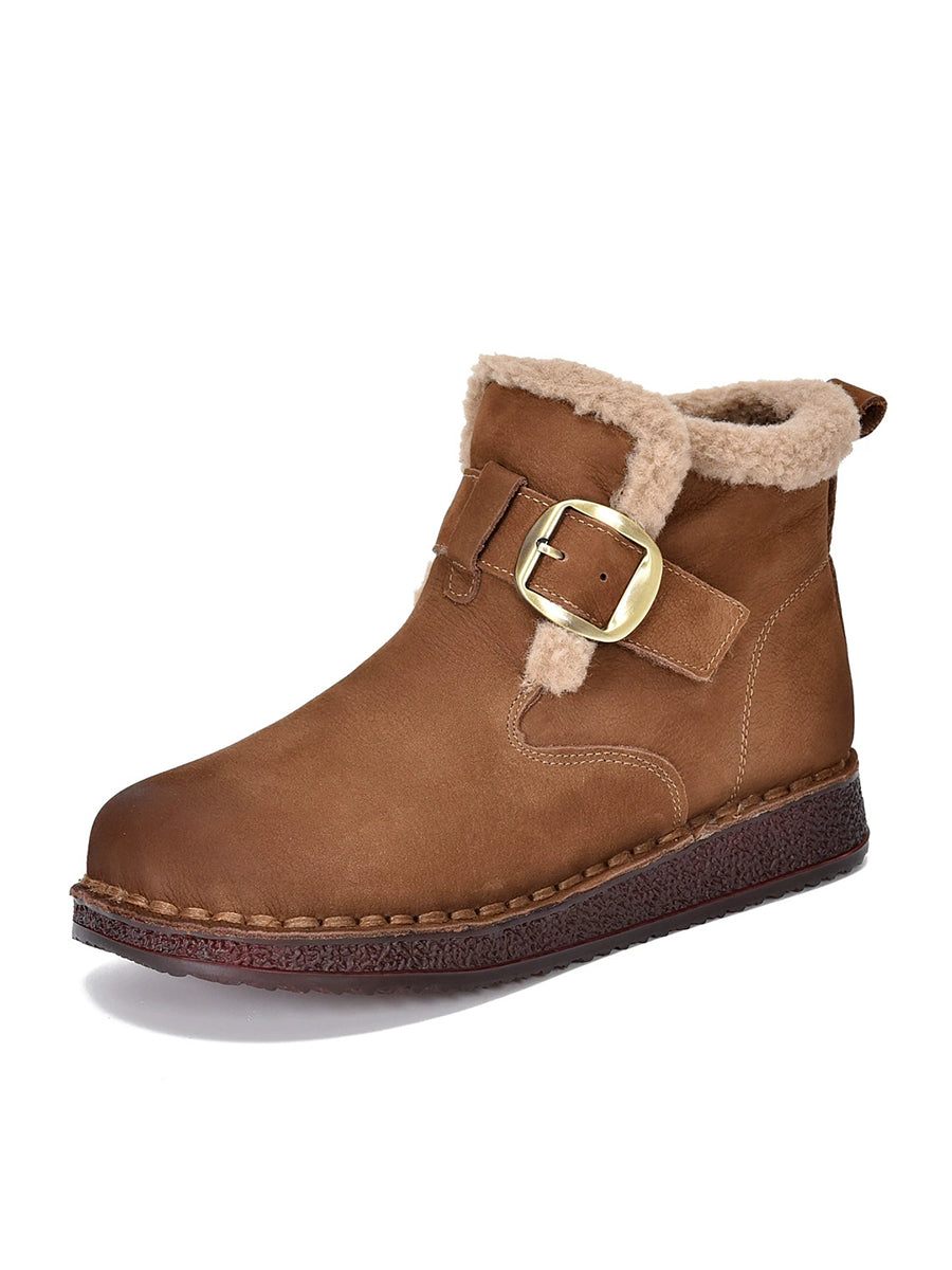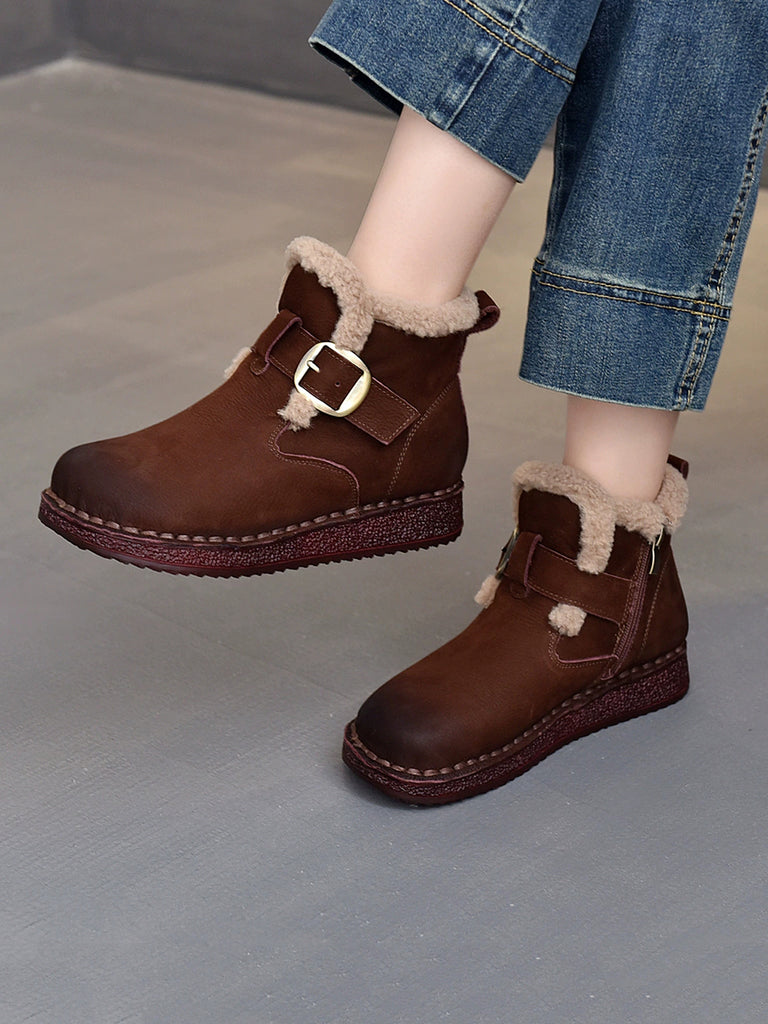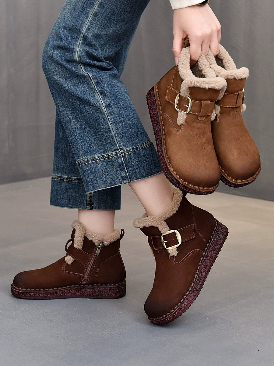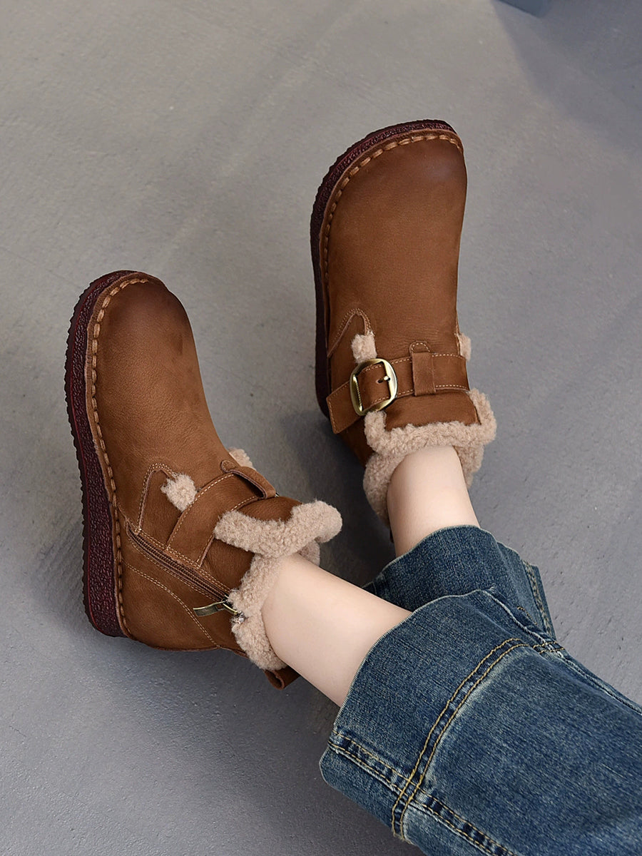 حذاء نسائي شتوي من الجلد الطبيعي مبطن بالصوف