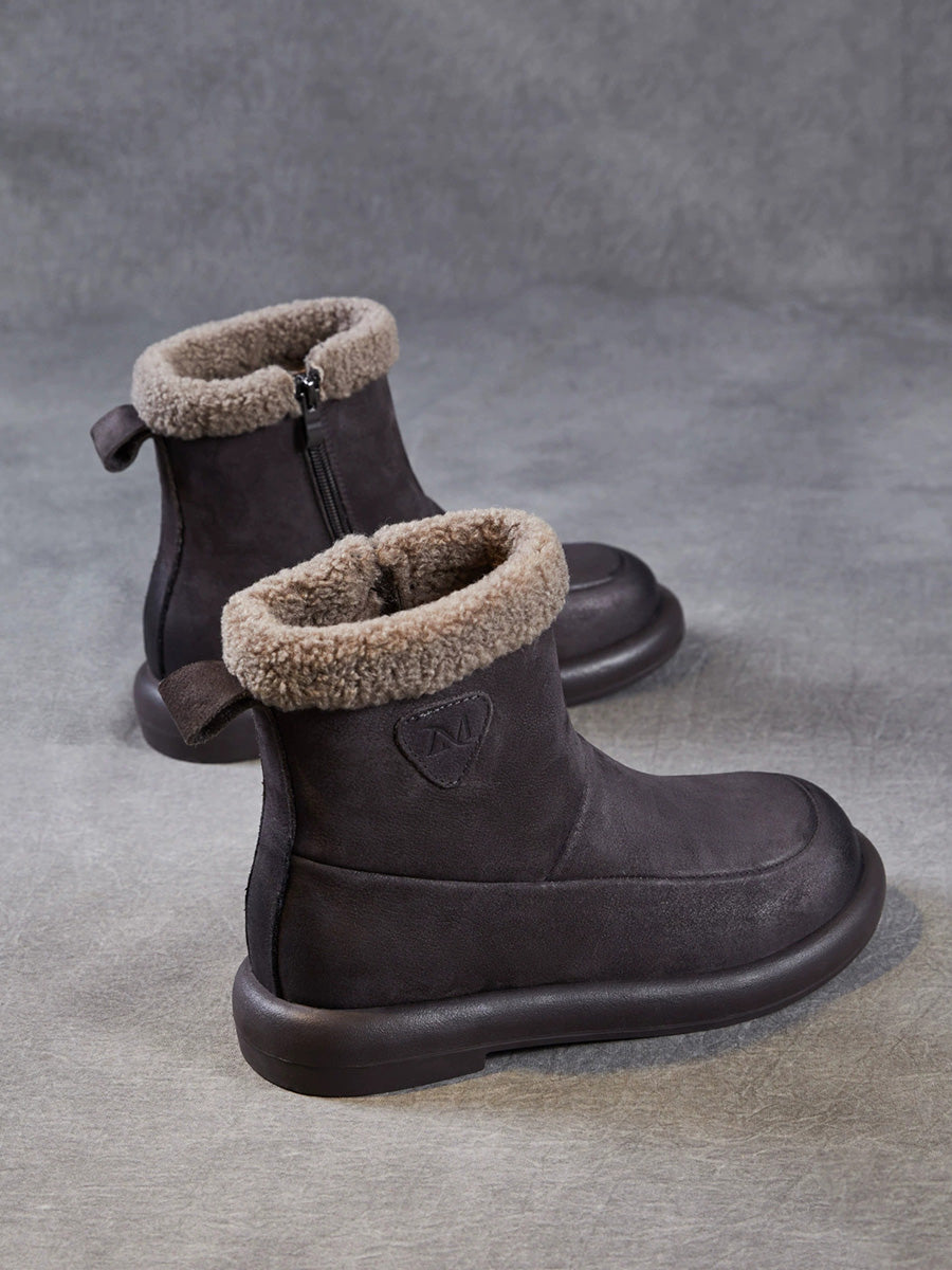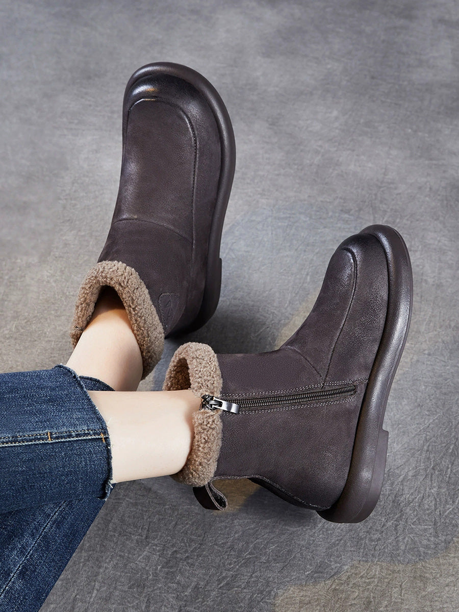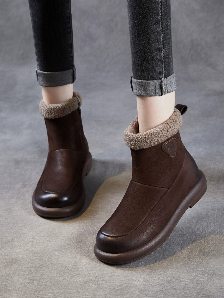 حذاء نسائي شتوي مبطن بالصوف من الجلد الطبيعي