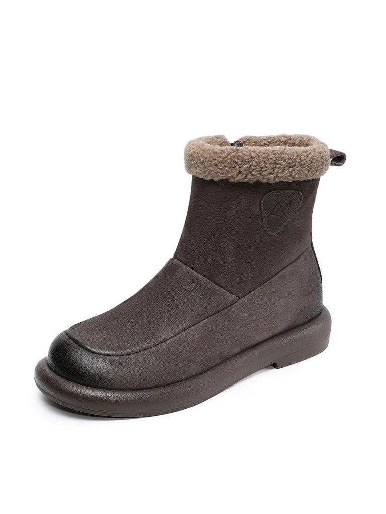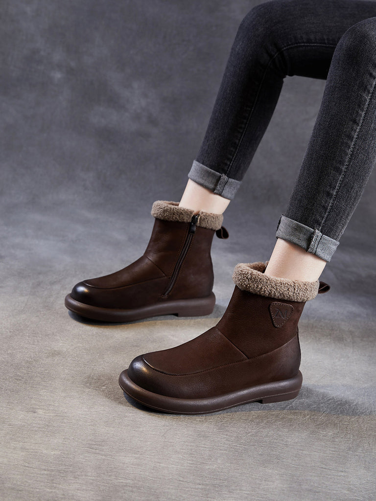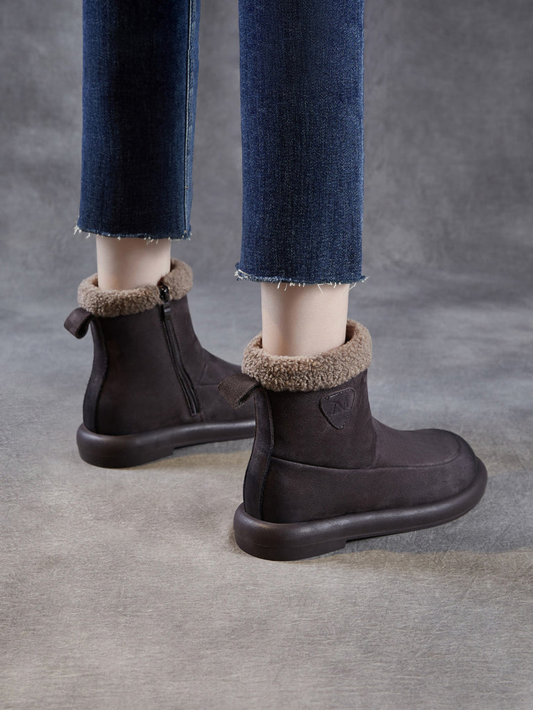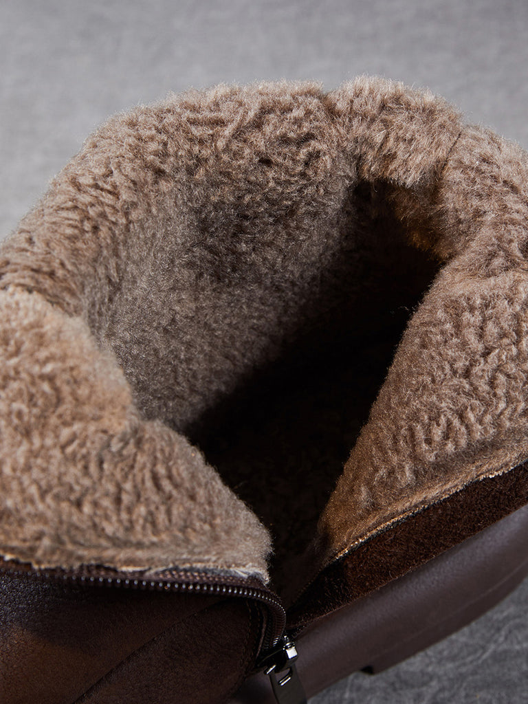 حذاء نسائي شتوي مبطن بالصوف من الجلد الطبيعي