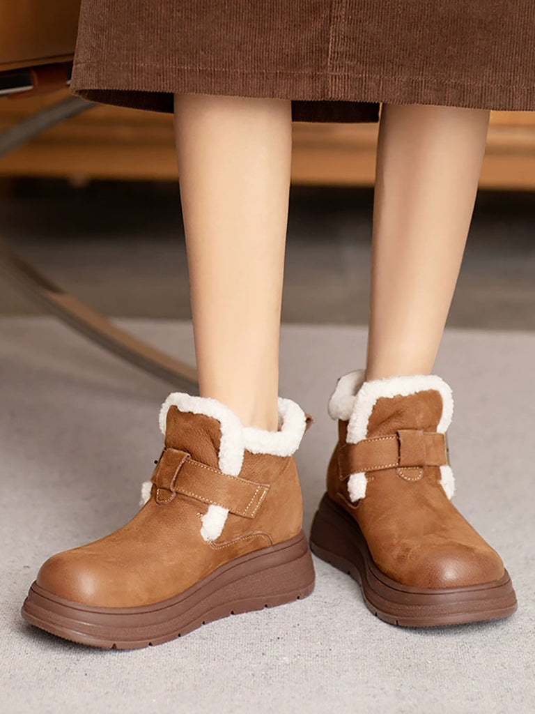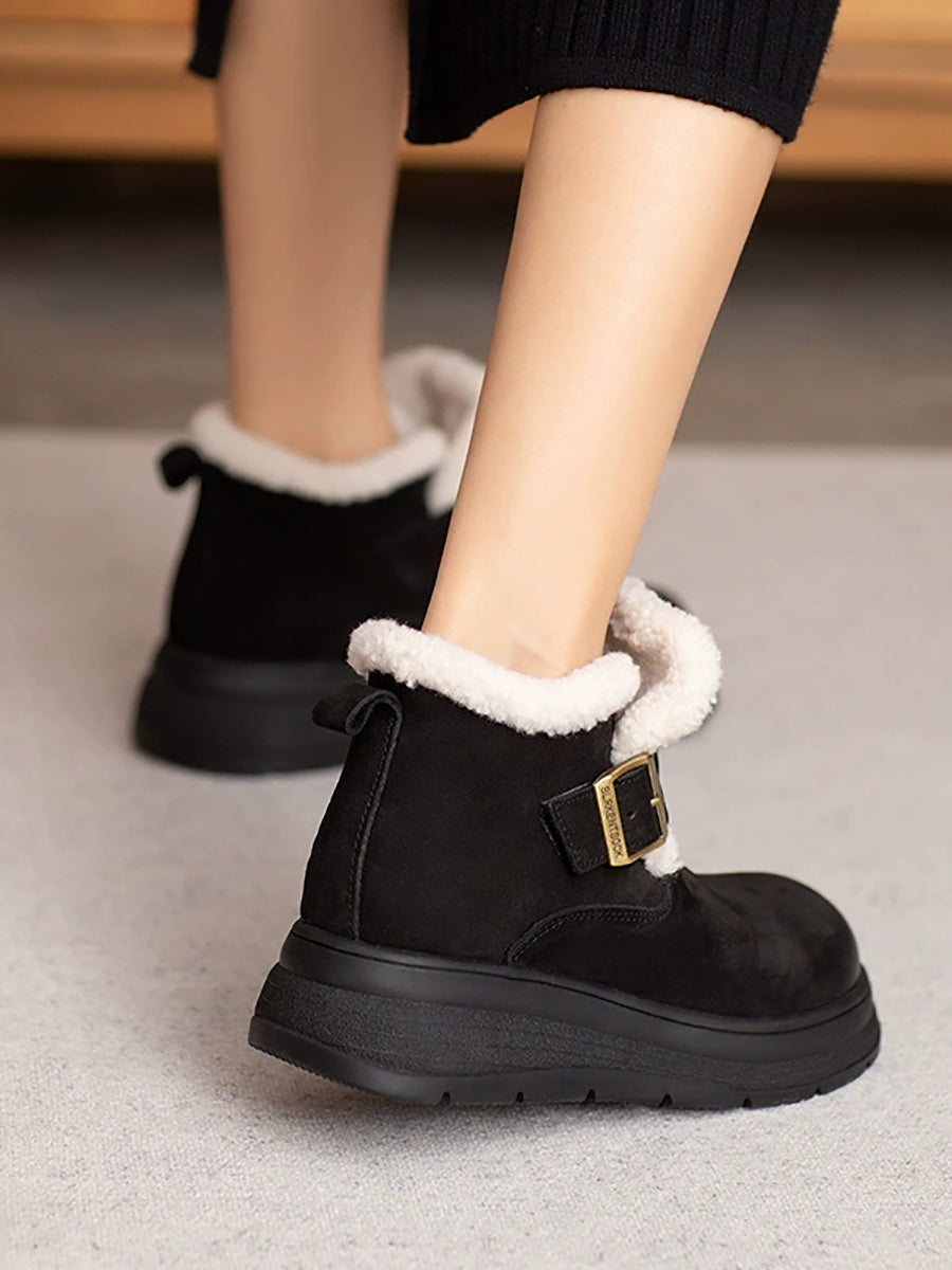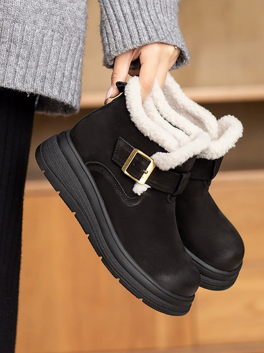 حذاء نسائي شتوي مبطن بالصوف من الجلد الطبيعي
