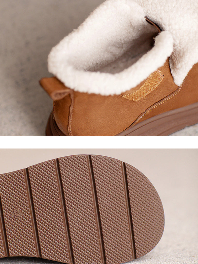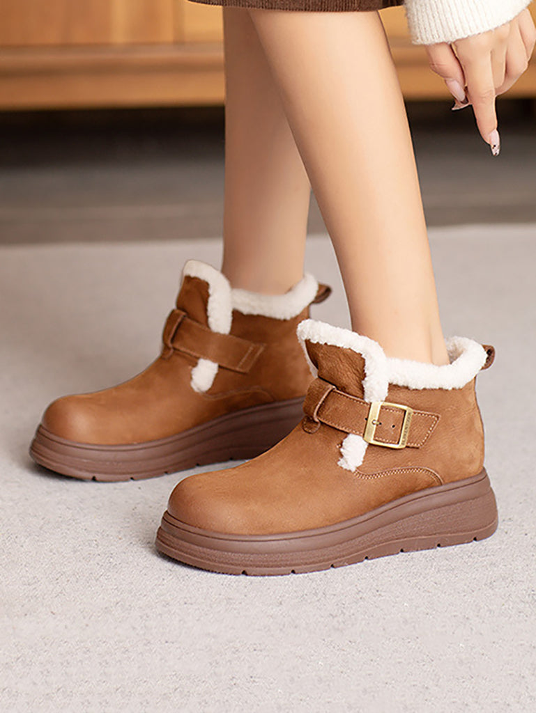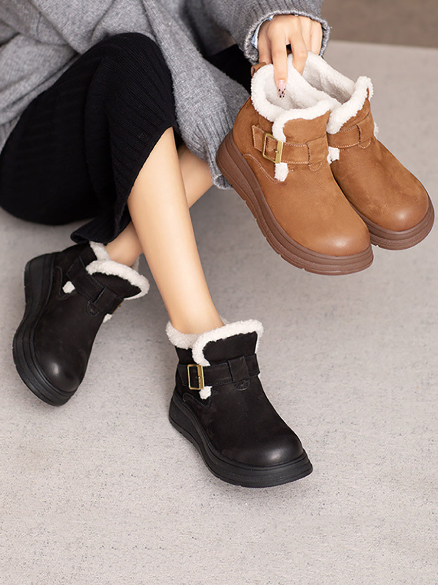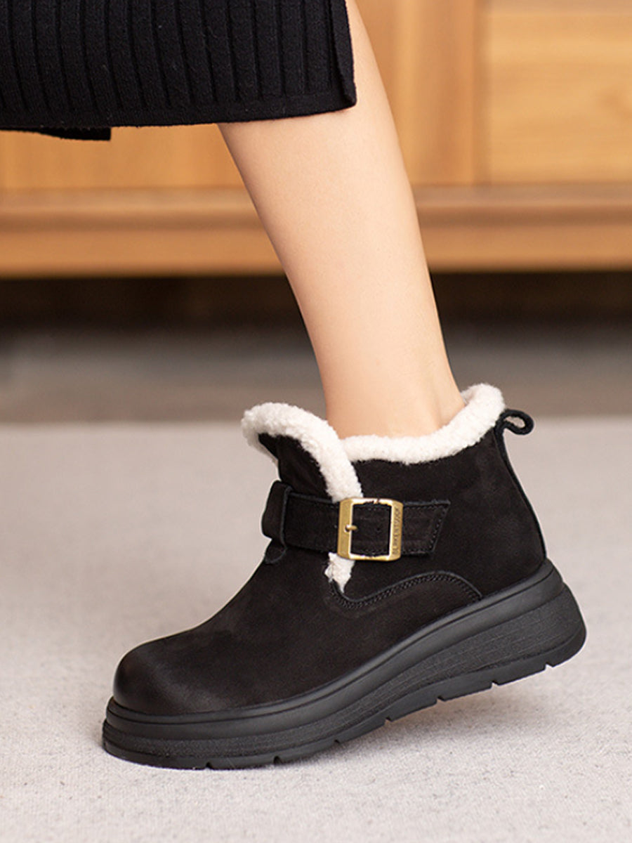حذاء نسائي شتوي مبطن بالصوف من الجلد الطبيعي