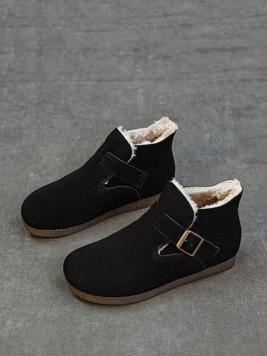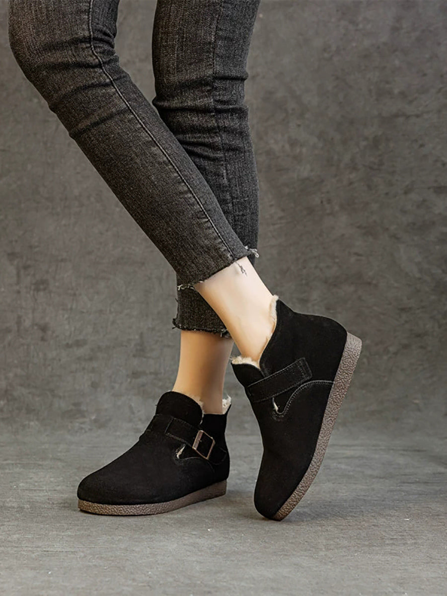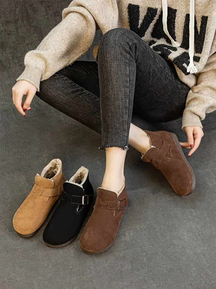 أحذية نسائية شتوية من الجلد الطبيعي مبطنة بالفرو