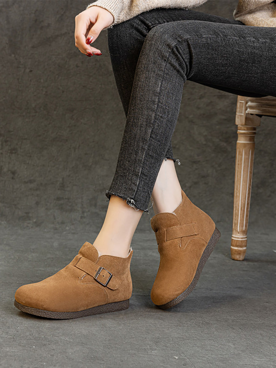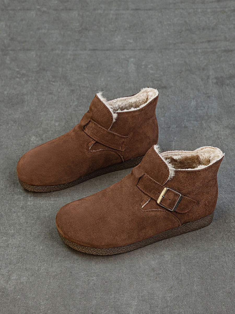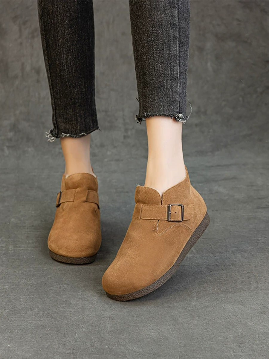 أحذية نسائية شتوية من الجلد الطبيعي مبطنة بالفرو