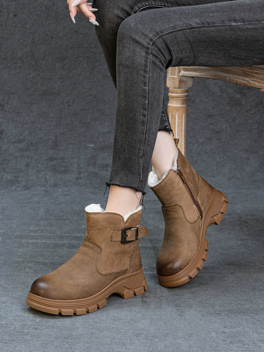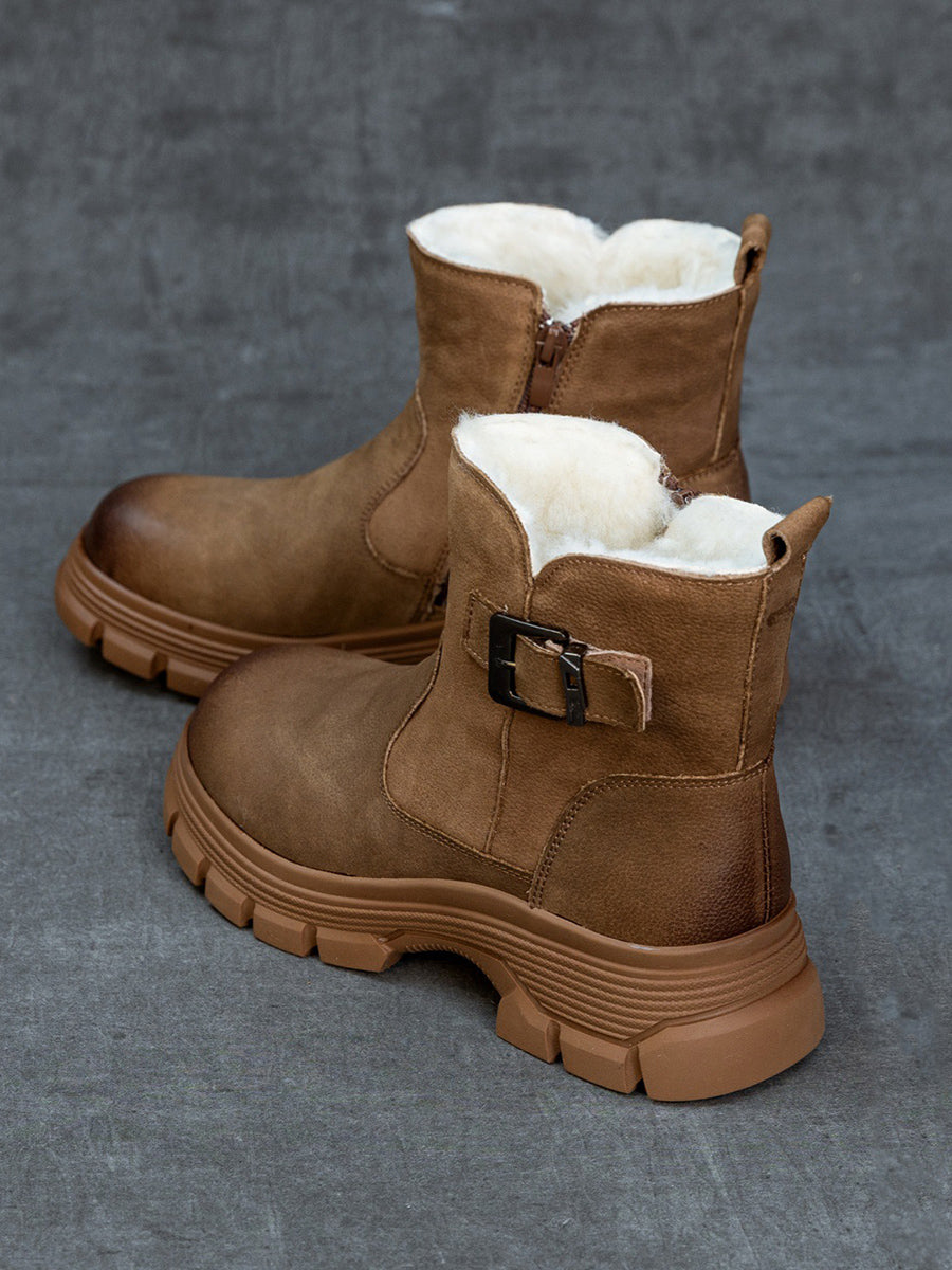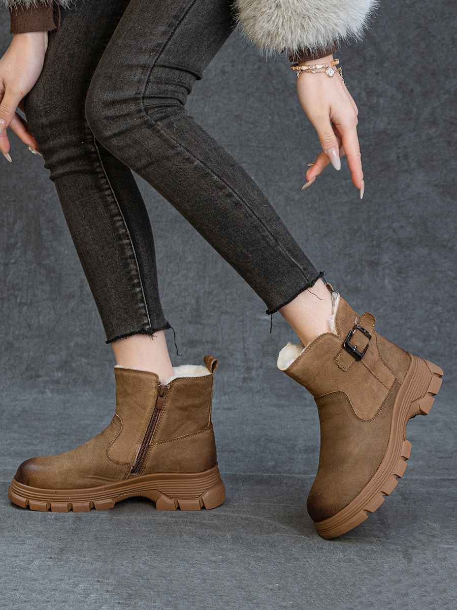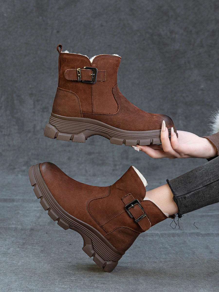 أحذية نسائية شتوية من الجلد مبطنة بالفرو ذات نعل سميك