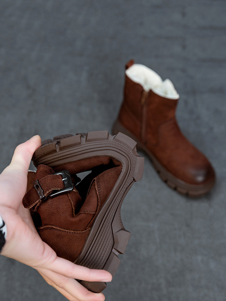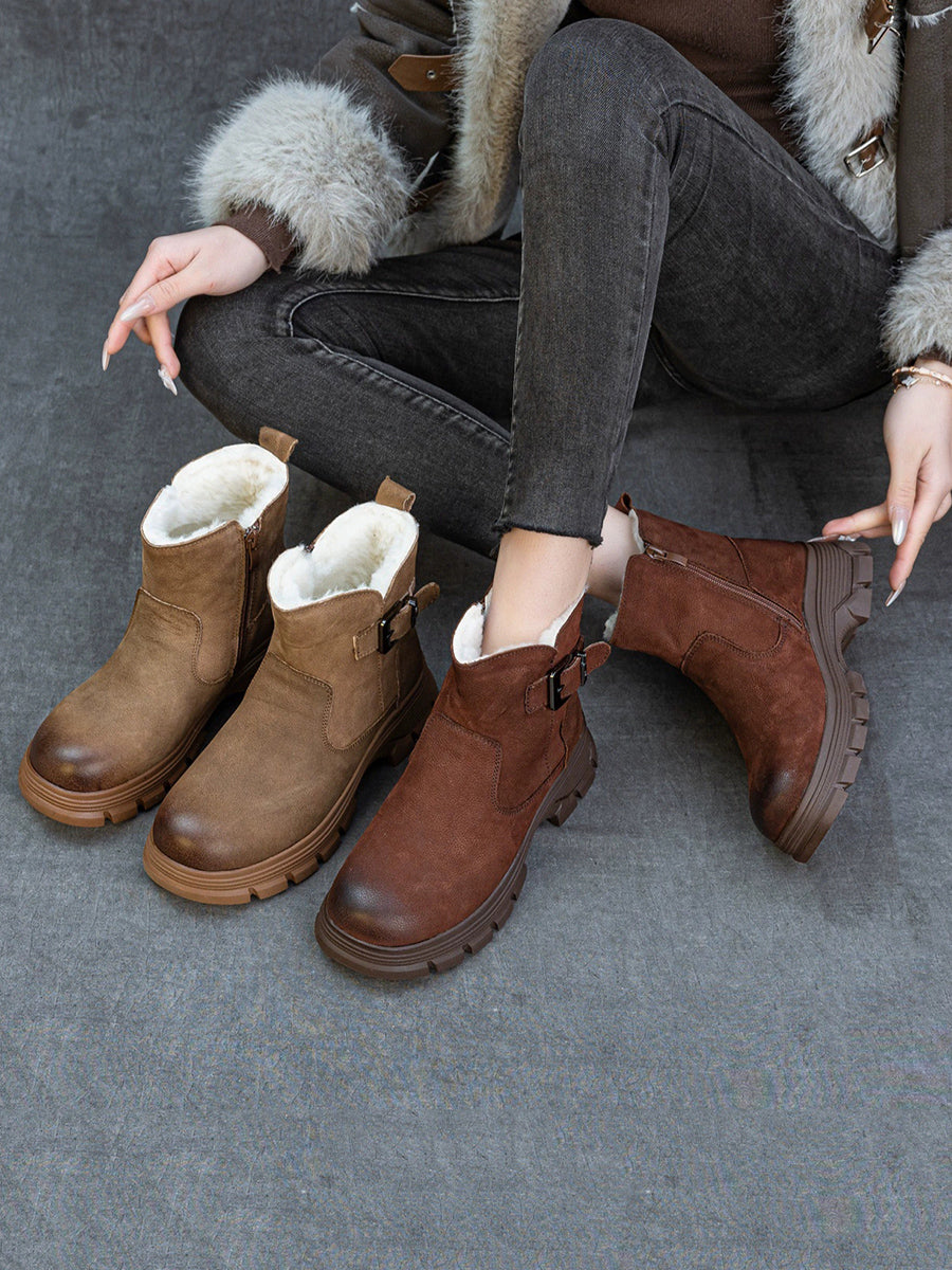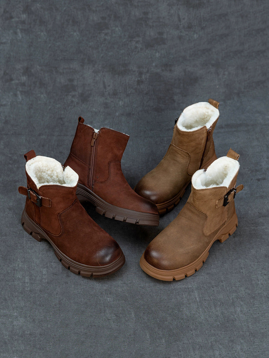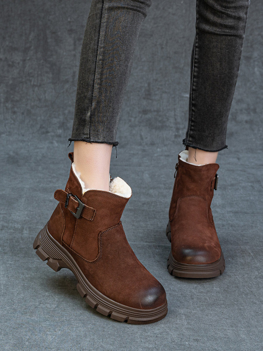 أحذية نسائية شتوية من الجلد مبطنة بالفرو ذات نعل سميك