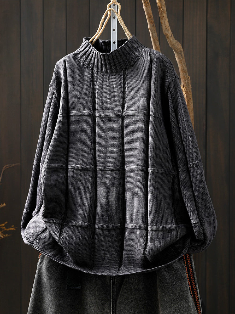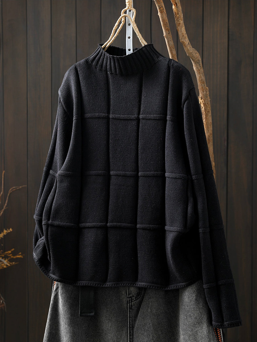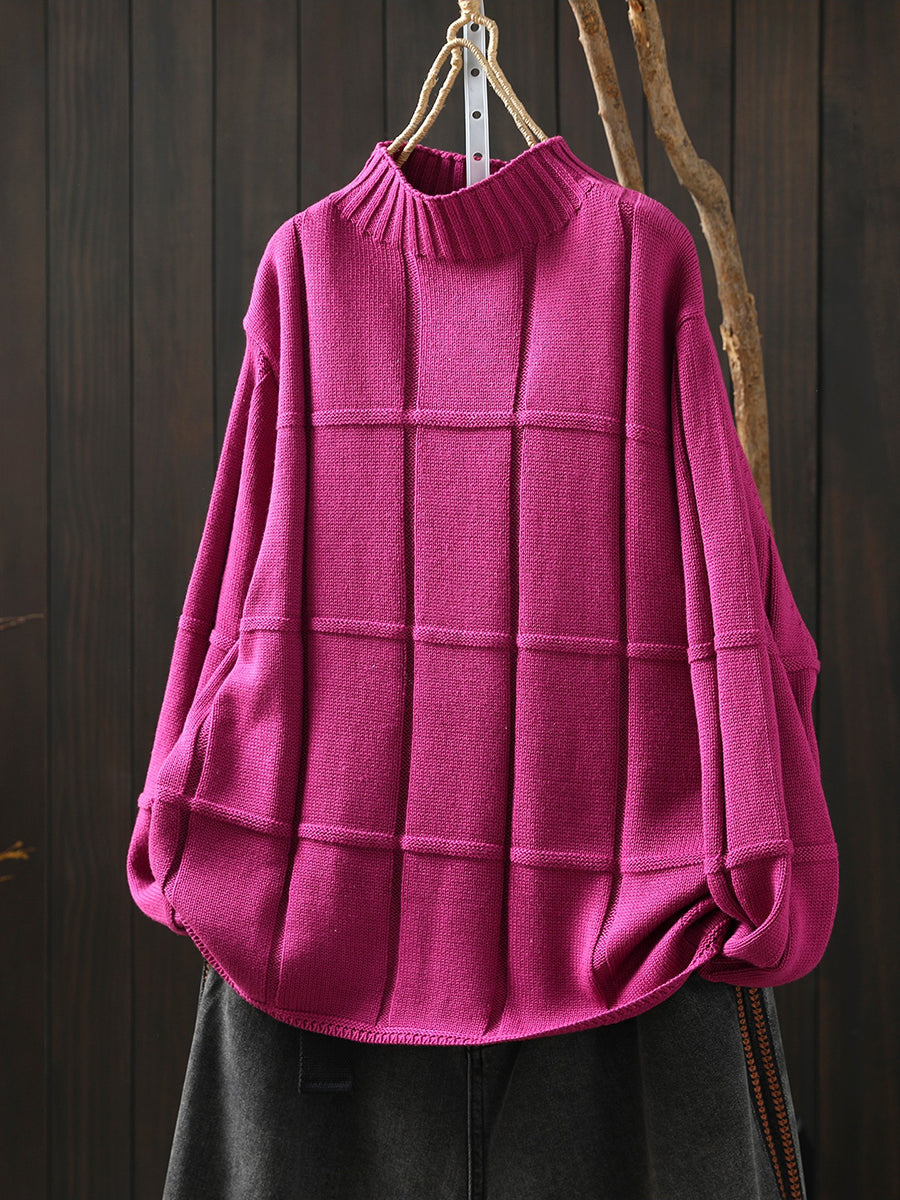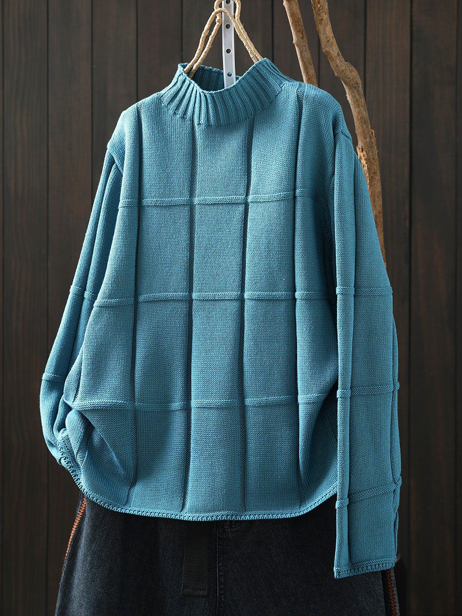 كنزة شتوية نسائية محبوكة بلون موحد بنصف ياقة عالية