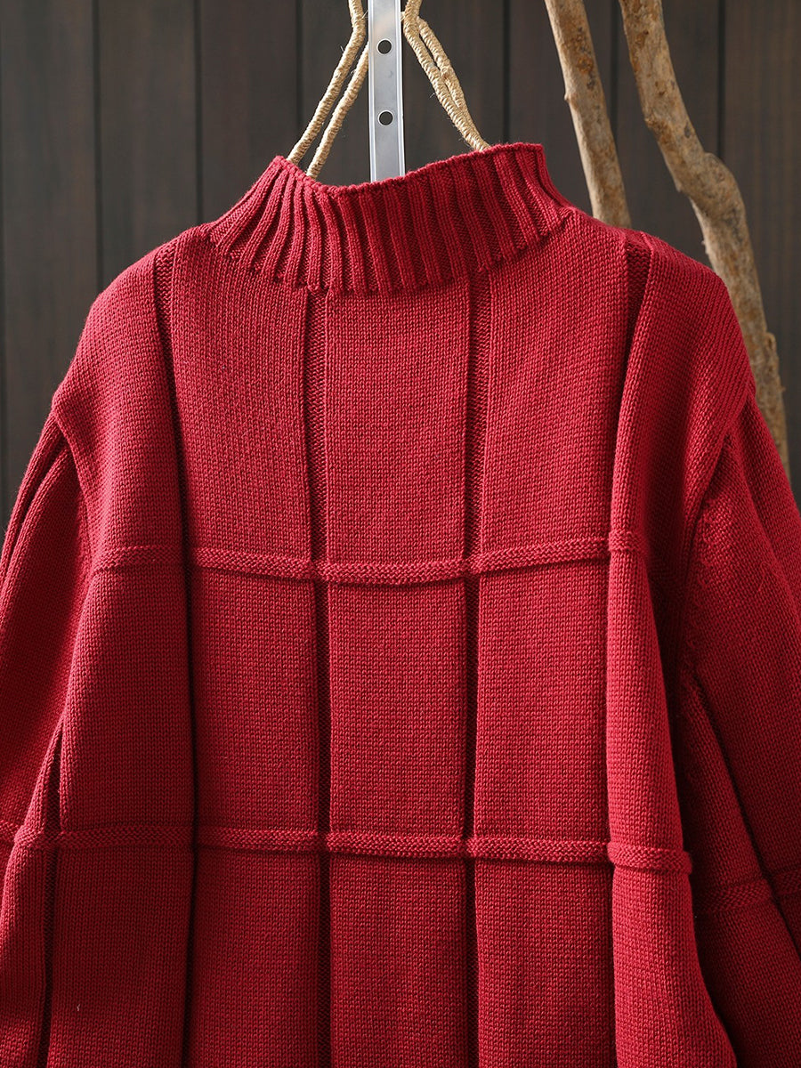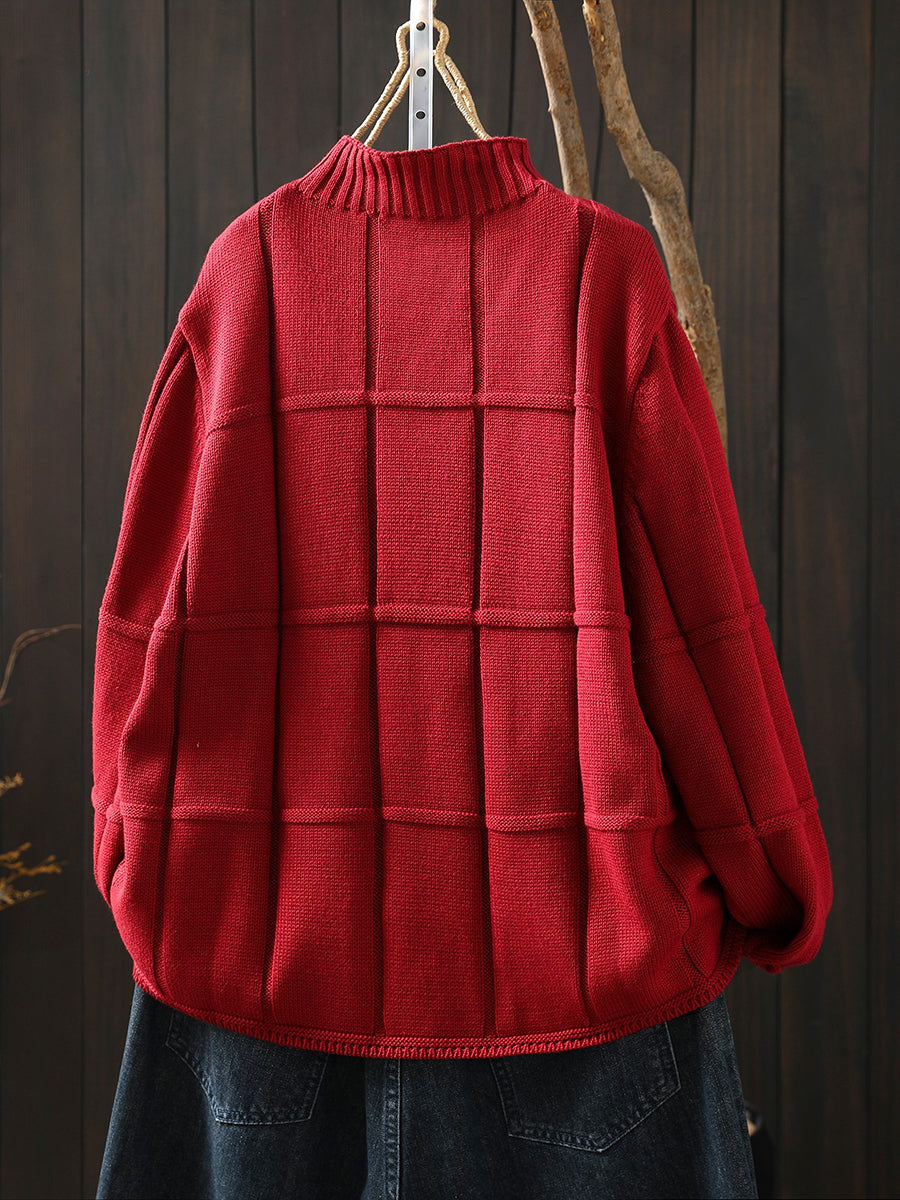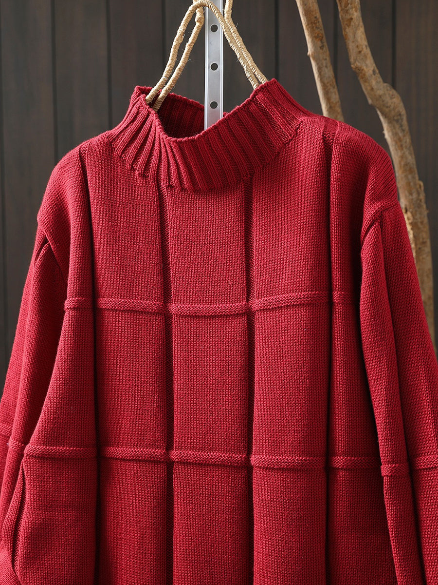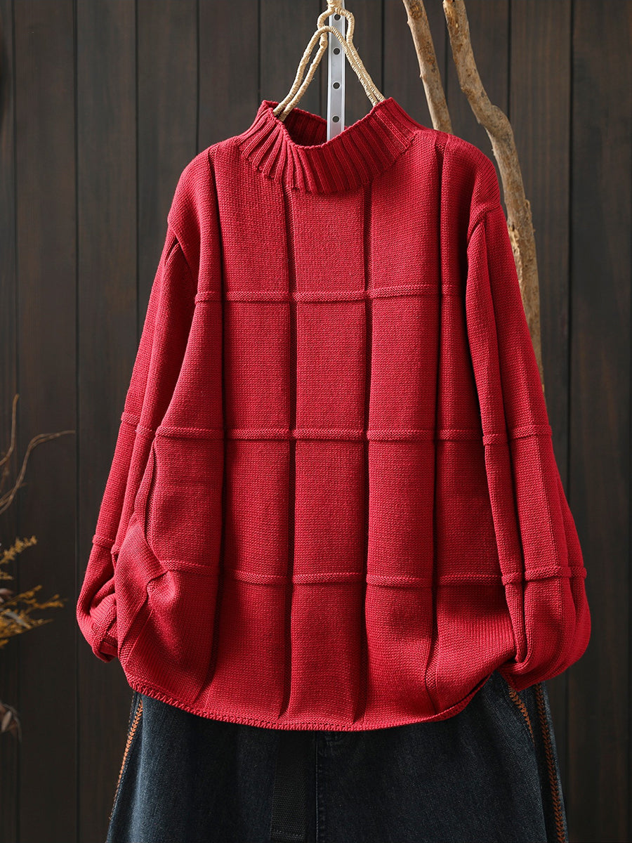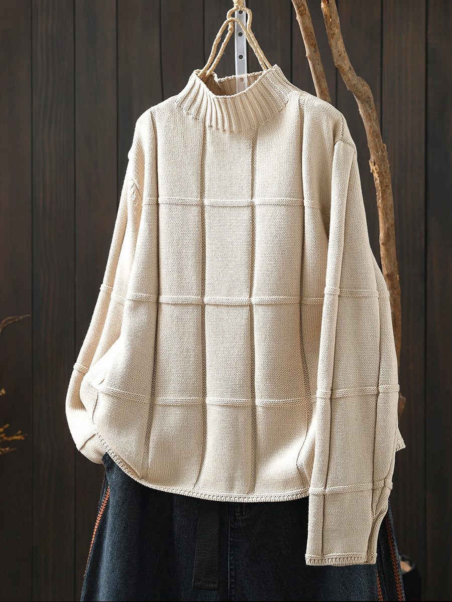 كنزة شتوية نسائية محبوكة بلون موحد بنصف ياقة عالية