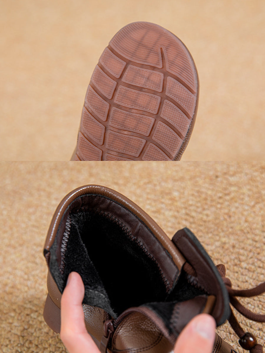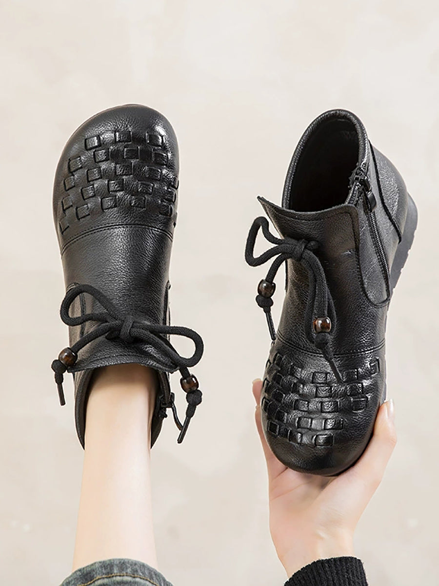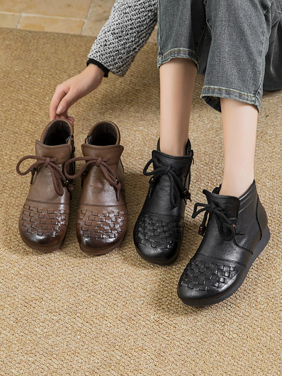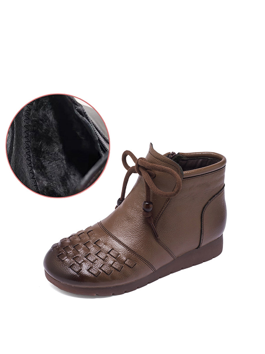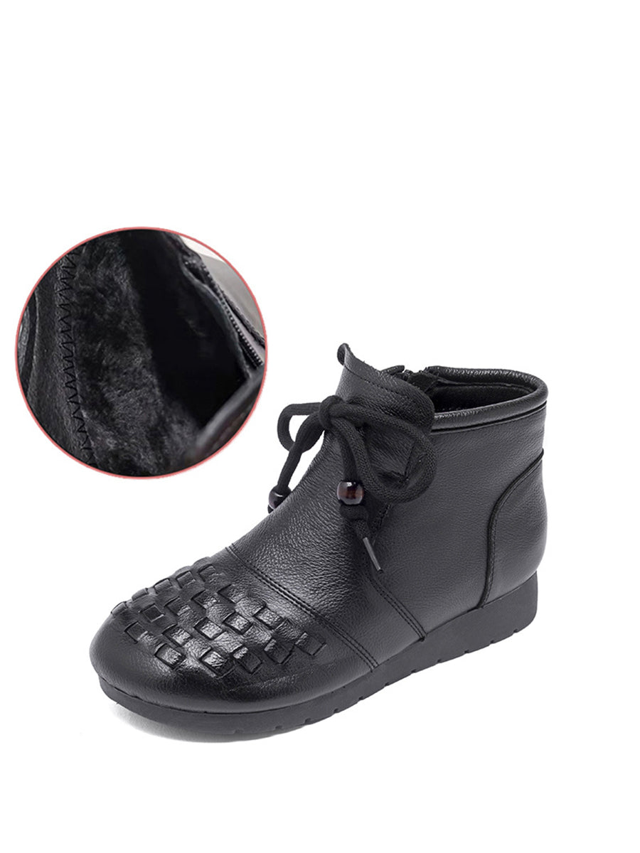 أحذية نسائية شتوية من الجلد المنسوج بلون موحد تصل إلى الكاحل