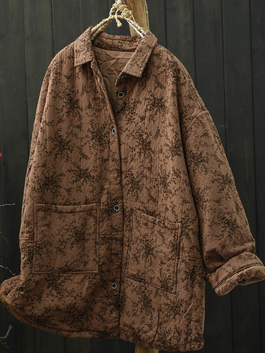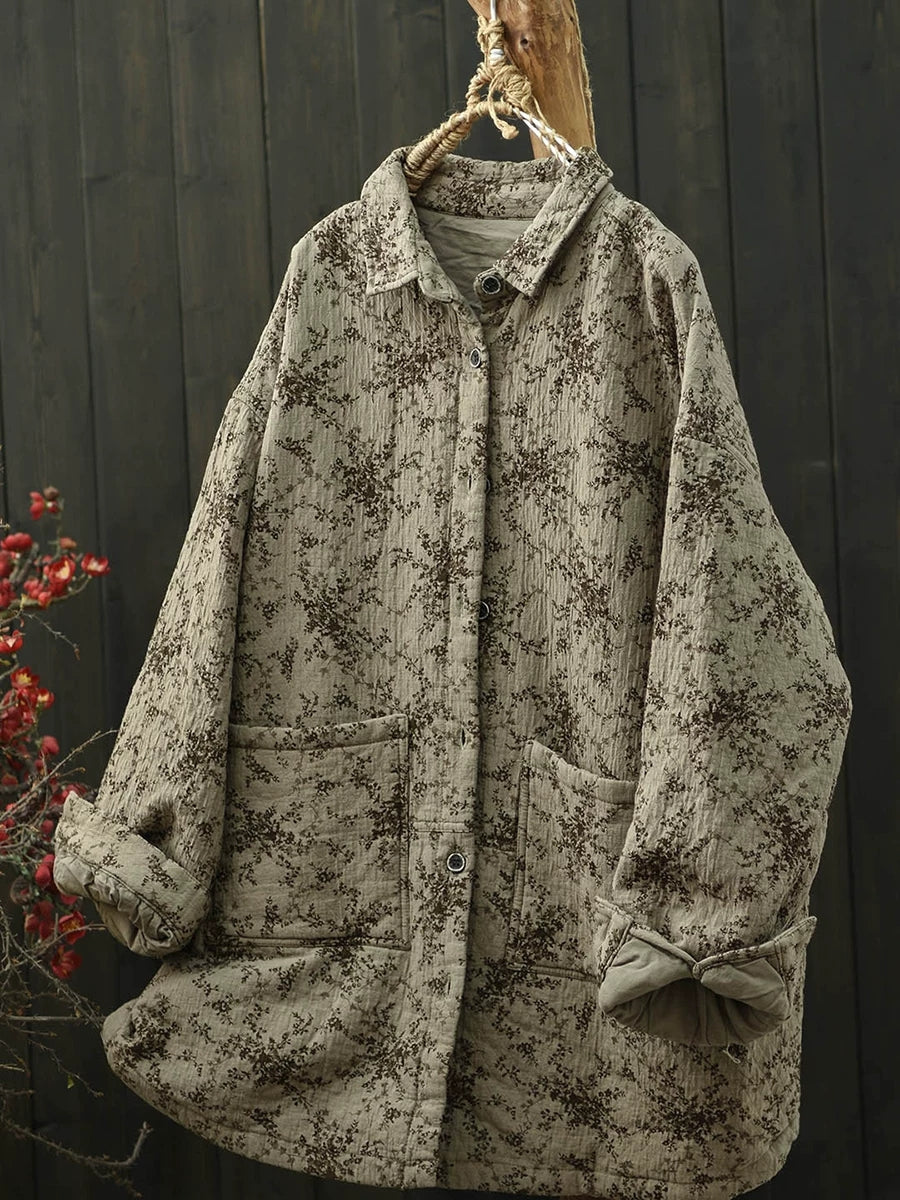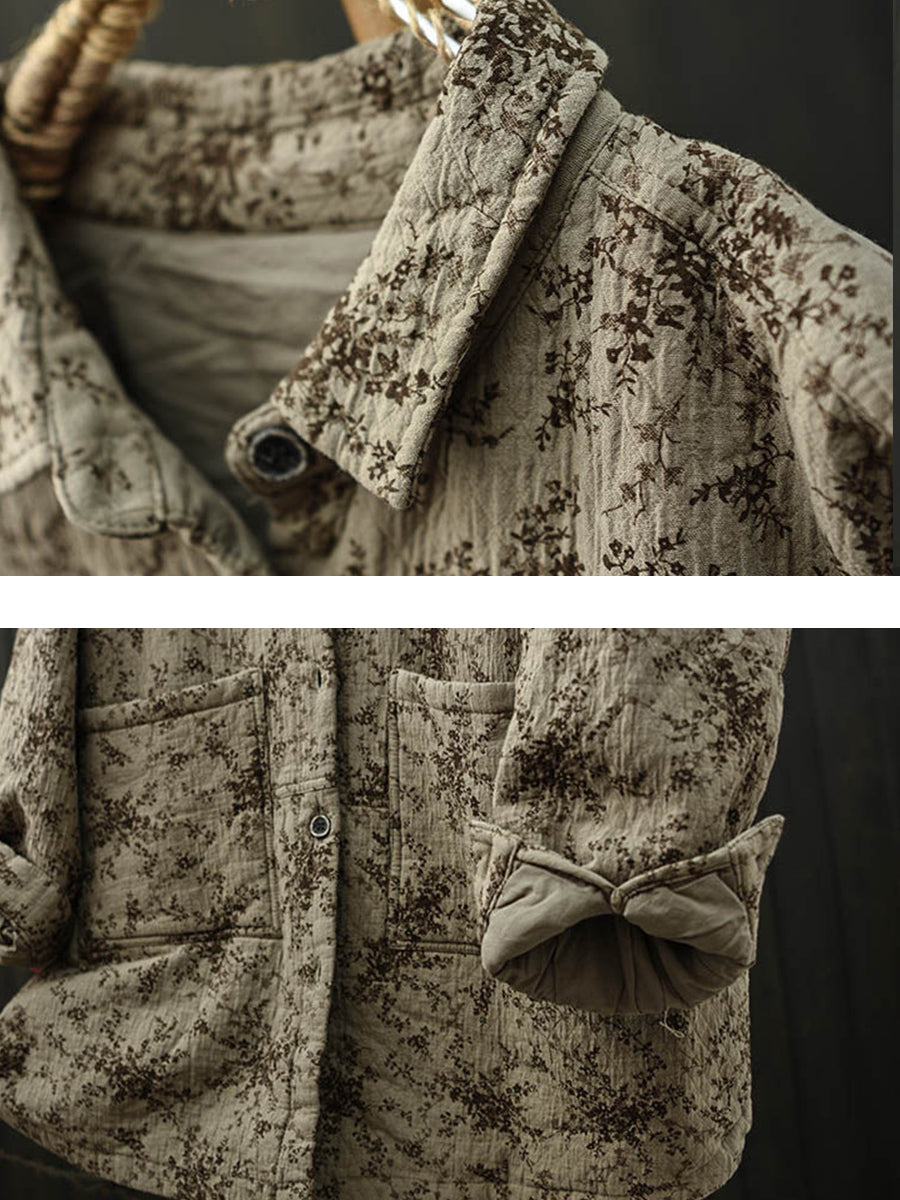معطف شتوي نسائي مبطن بالقطن بنقشة زهور كلاسيكية