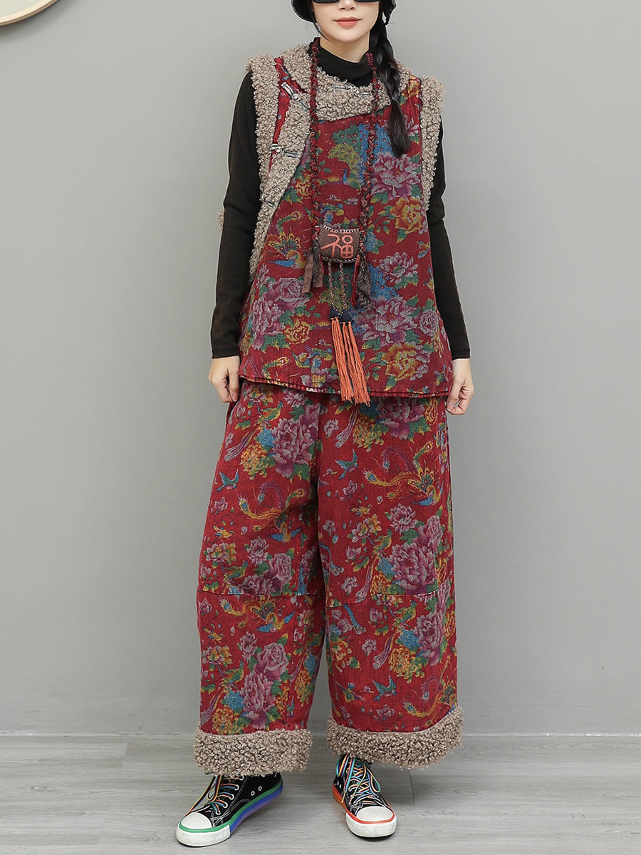 بدلات شتوية نسائية مبطنة بياقة دائرية مزينة بنقوش زهور كلاسيكية من الصوف