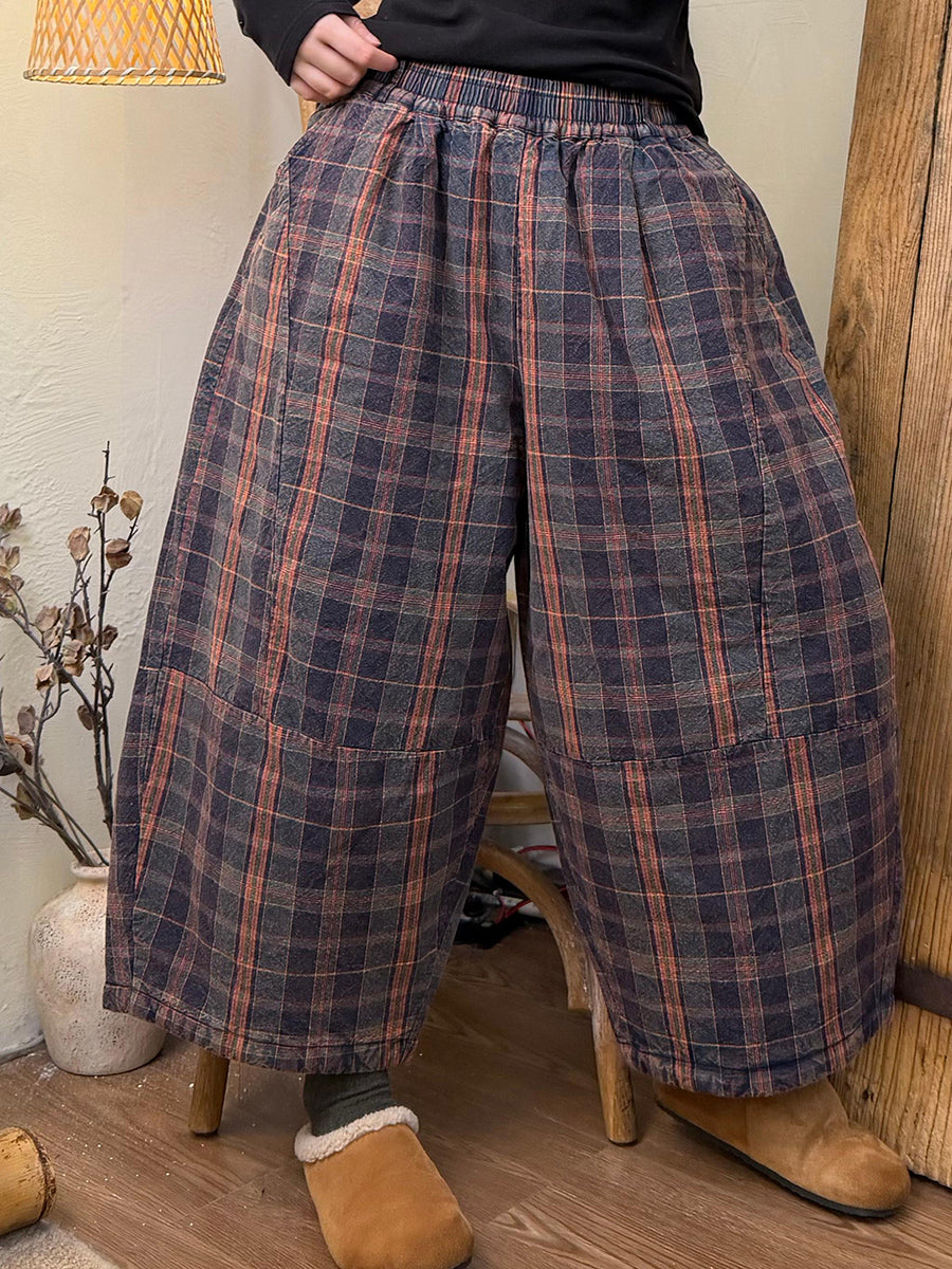 بنطلون نسائي شتوي كلاسيكي بنقشة مربعات مخططة مستقيم مبطن