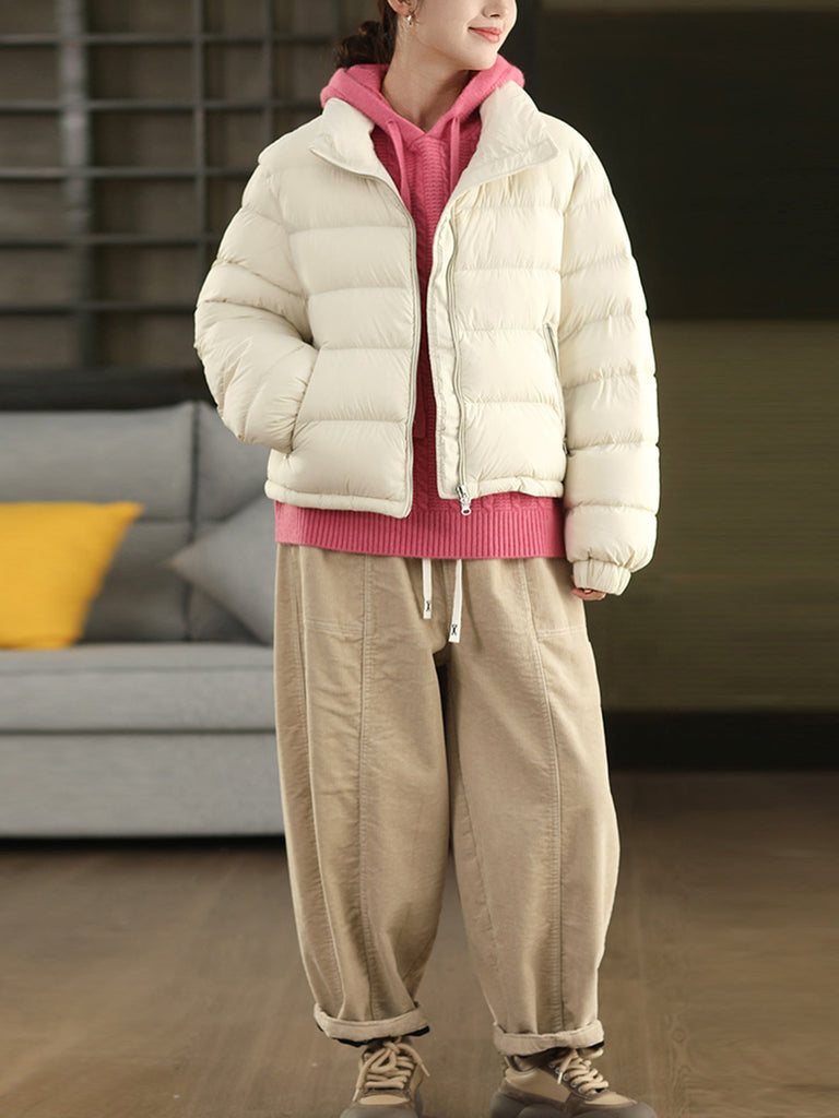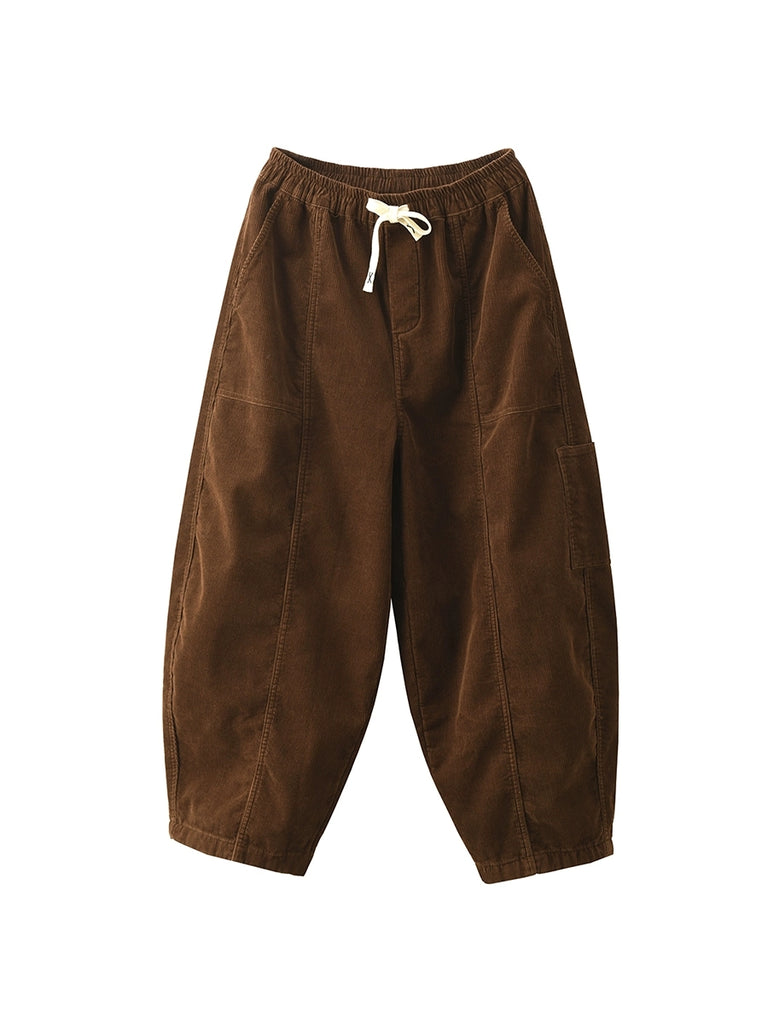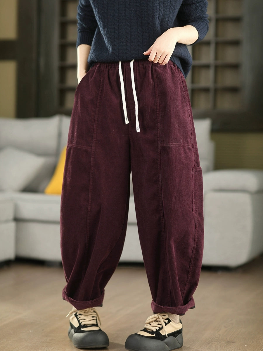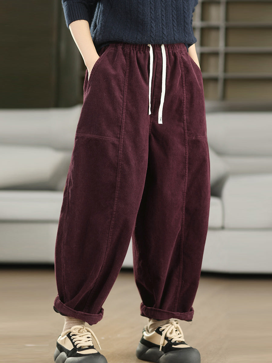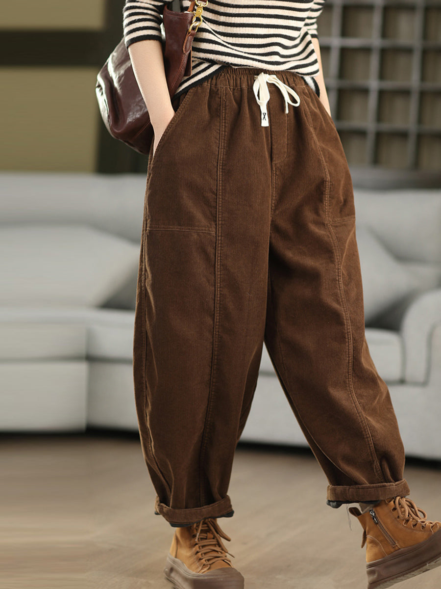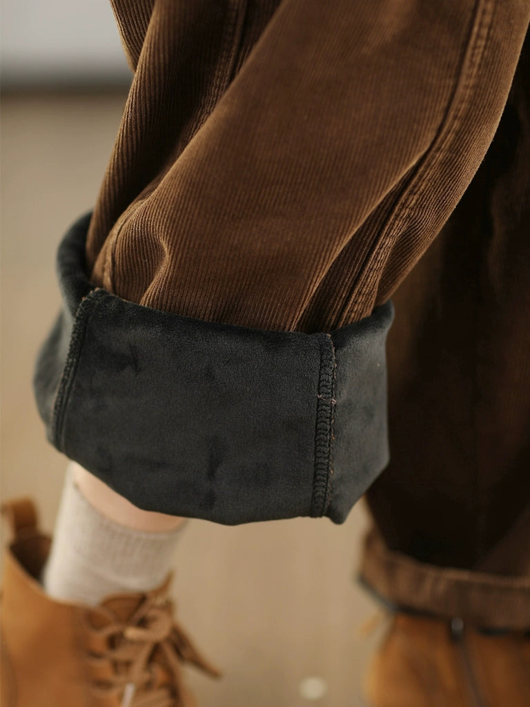 بنطلون حريمي شتوي بتصميم ريترو بلون نقي من قماش مخملي مبطن بالصوف