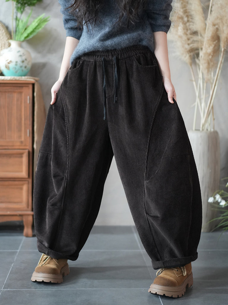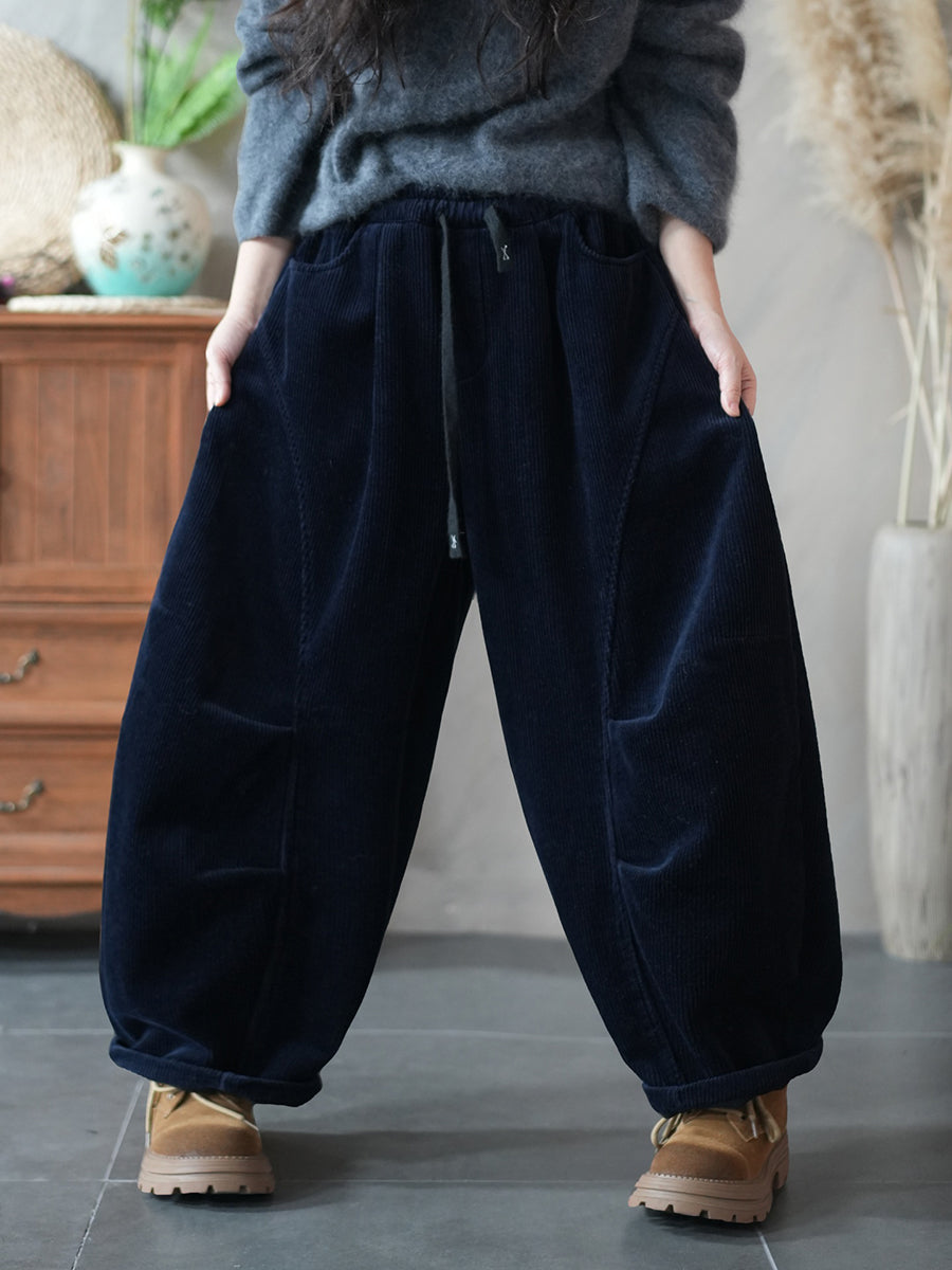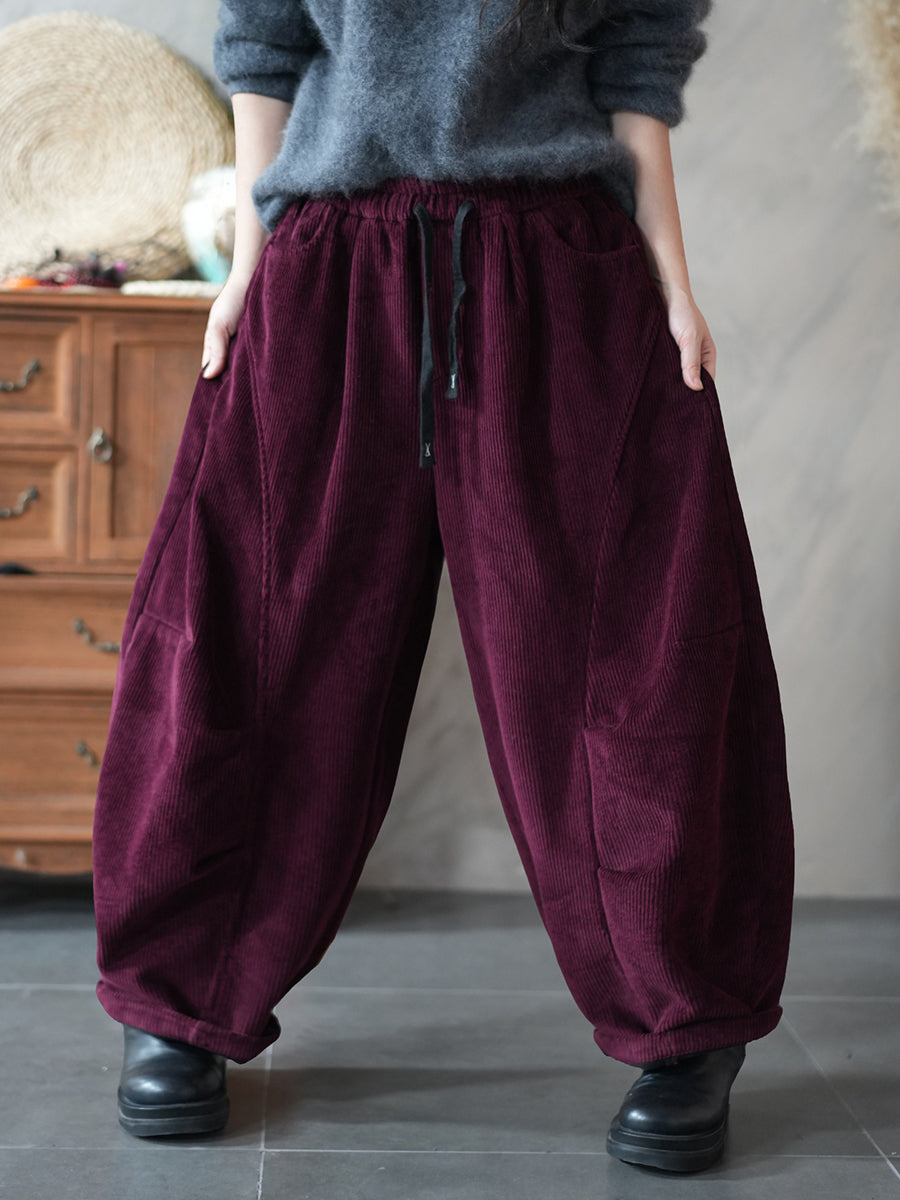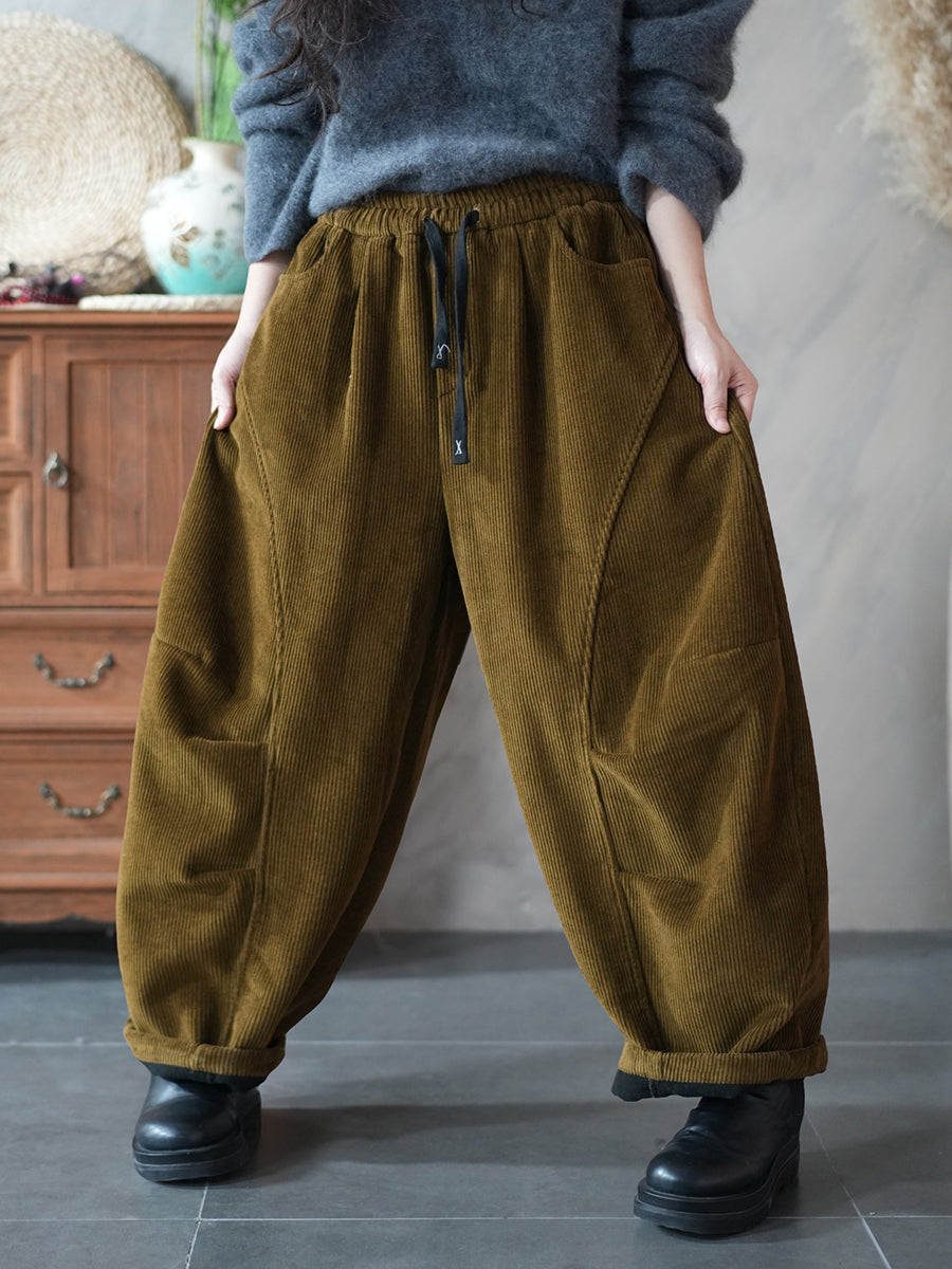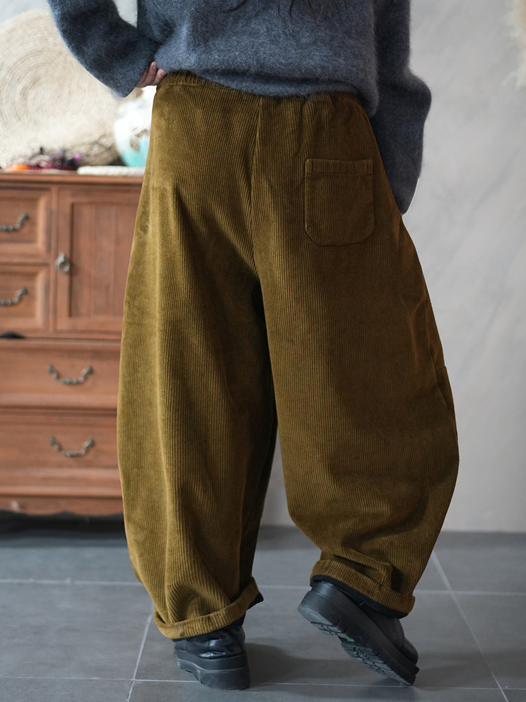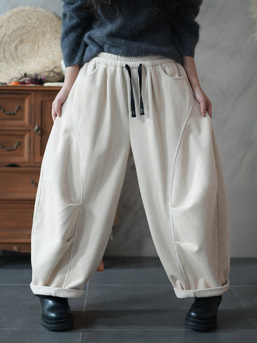 بنطلون حريمي شتوي من قماش مخملي بلون نقي بتصميم كلاسيكي