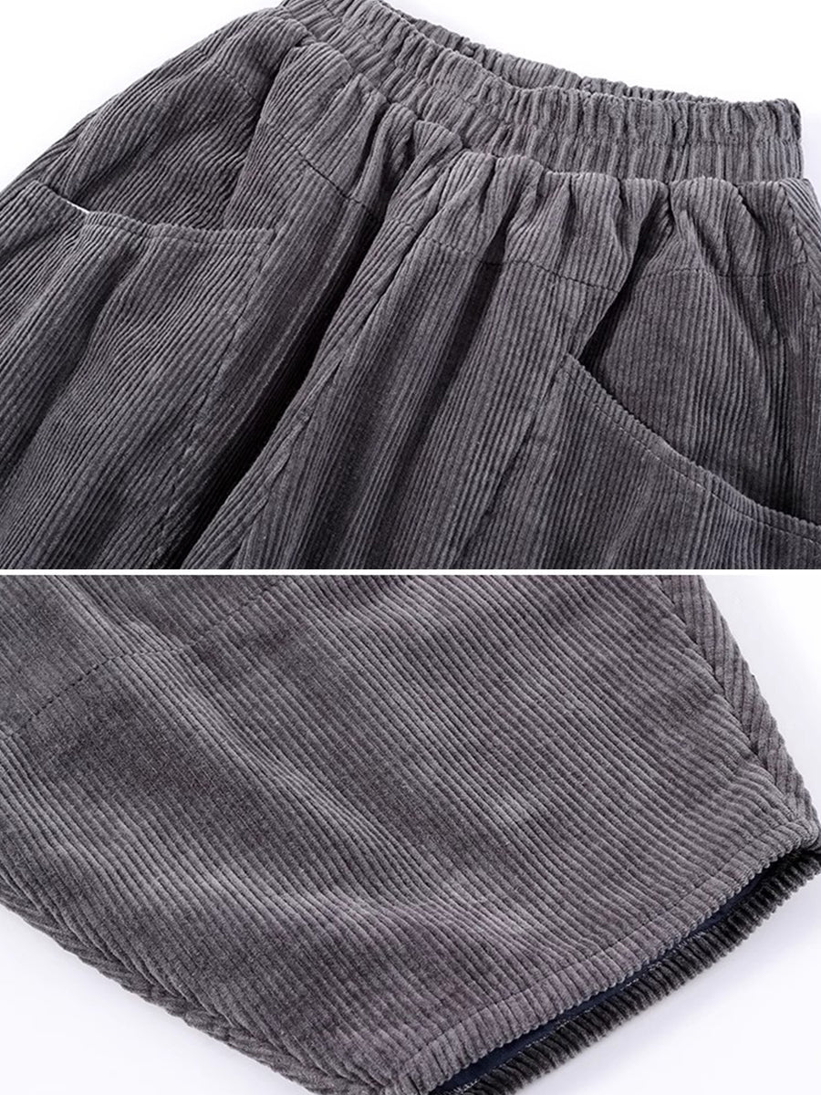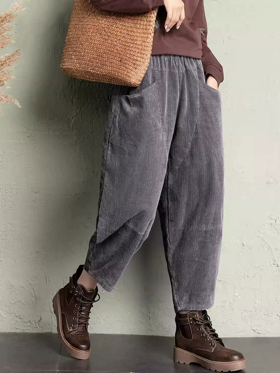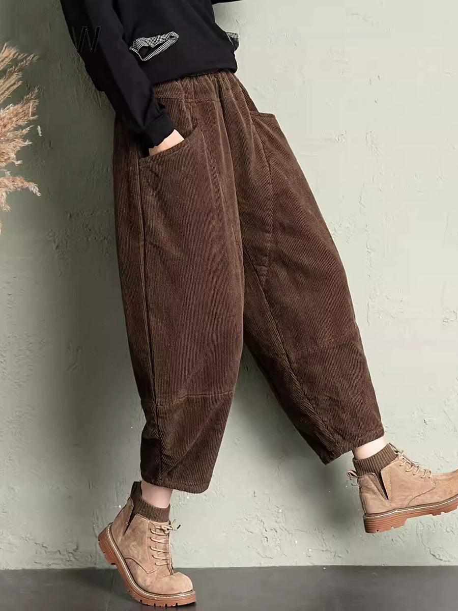 بنطلون نسائي شتوي كلاسيكي من قماش الكوردروي بلون موحد واسع