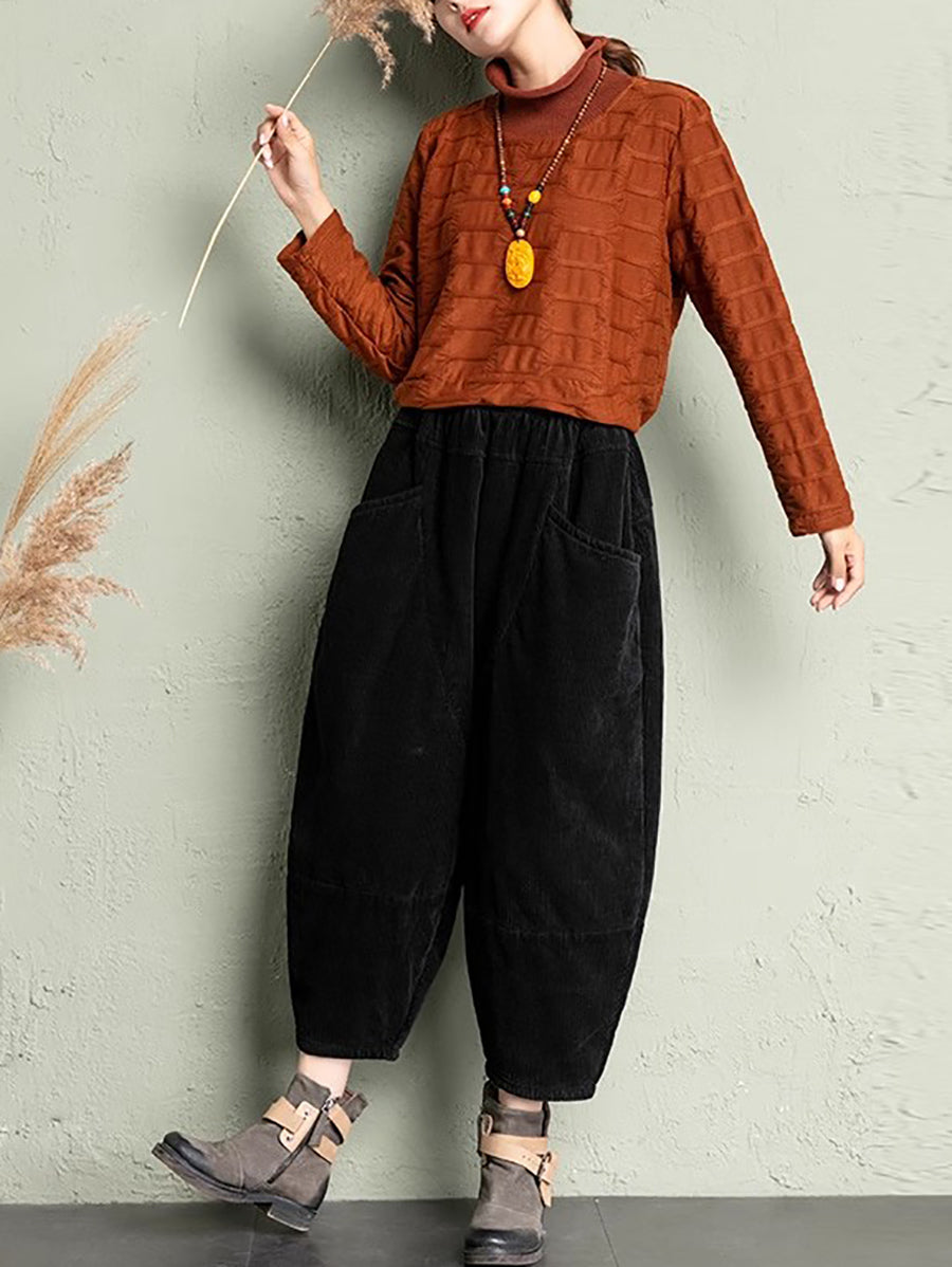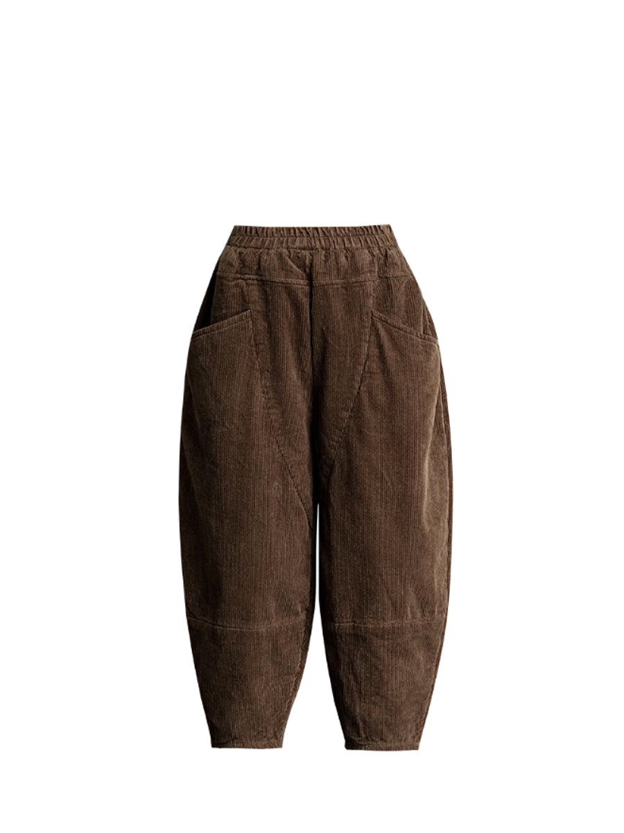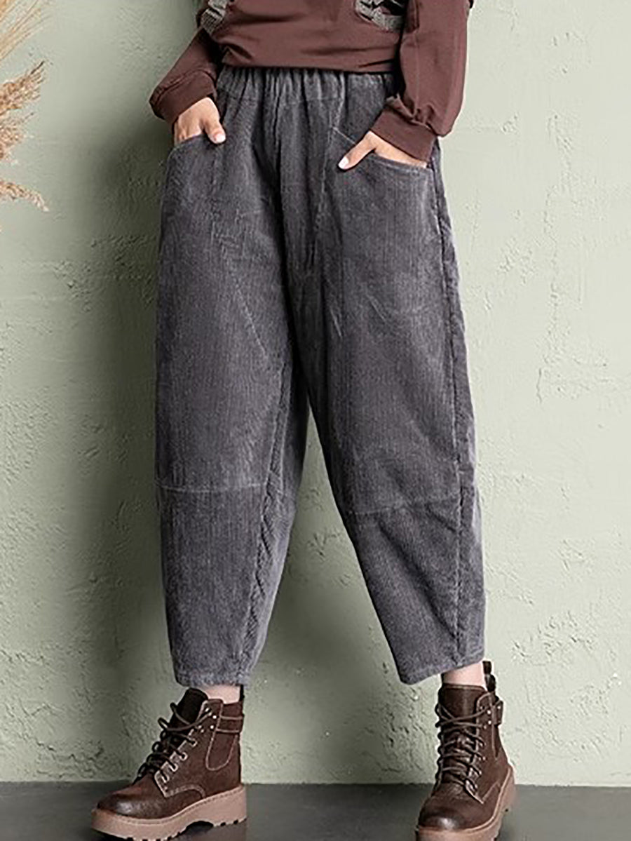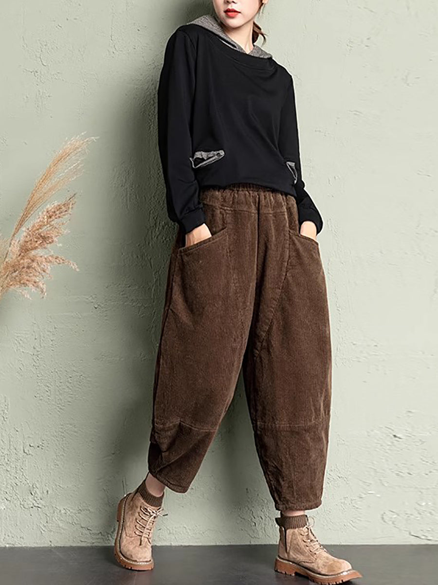 بنطلون نسائي شتوي كلاسيكي من قماش الكوردروي بلون موحد واسع