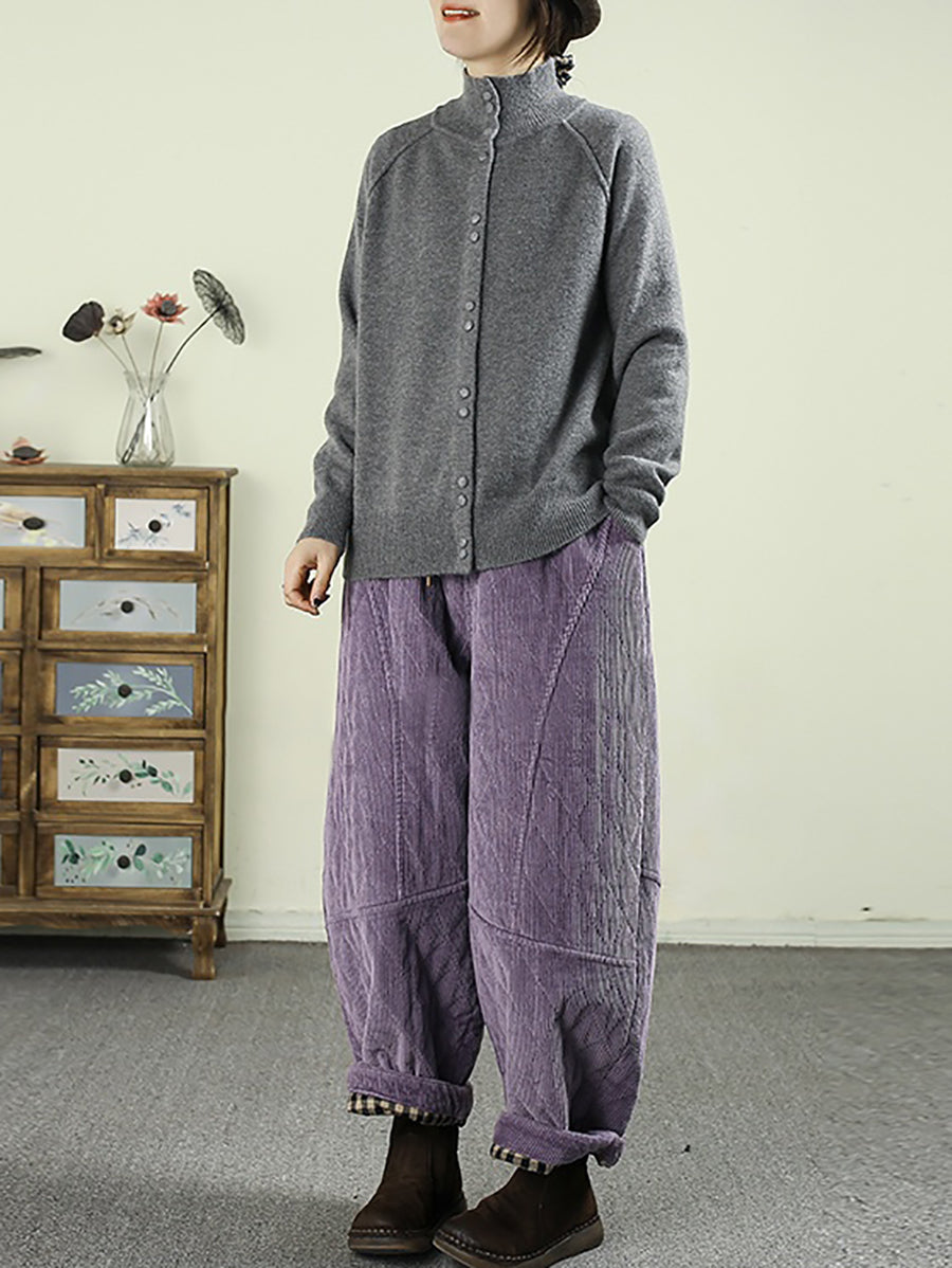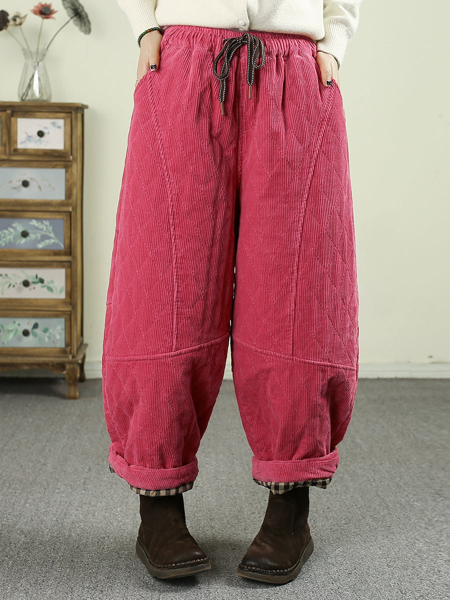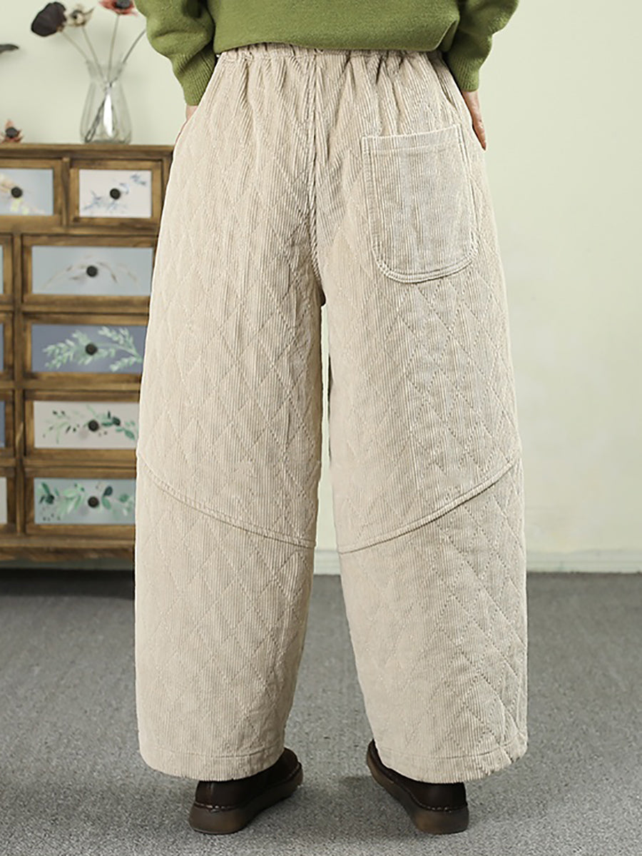 بنطلون حريمي شتوي من قماش مخملي مبطن بلون نقي