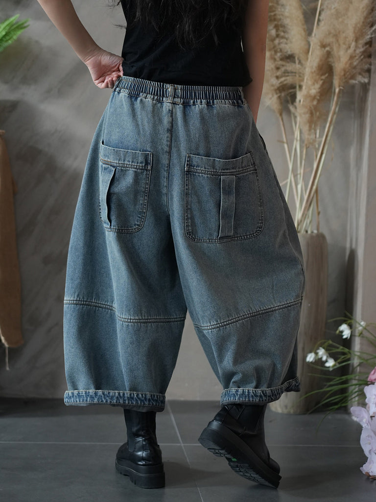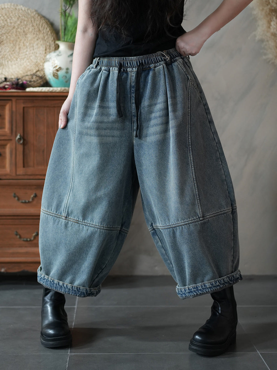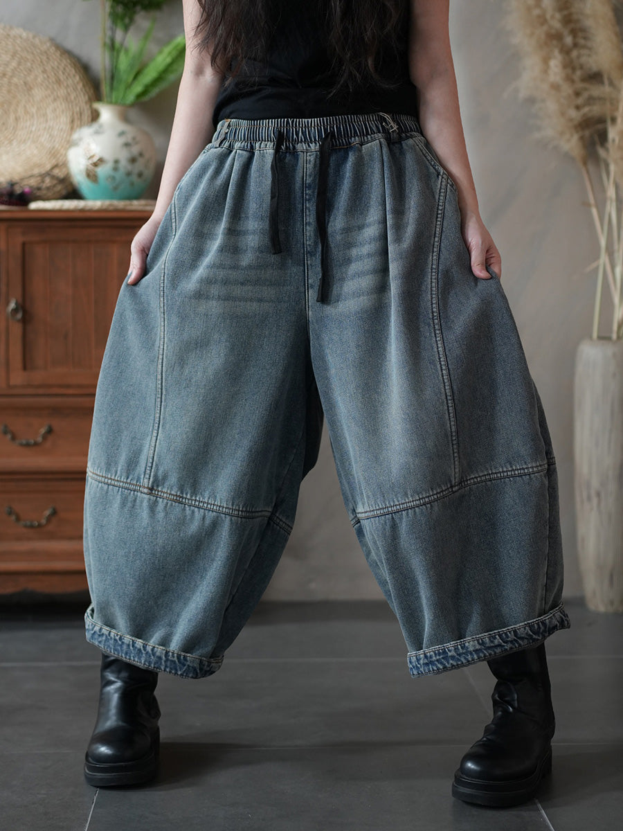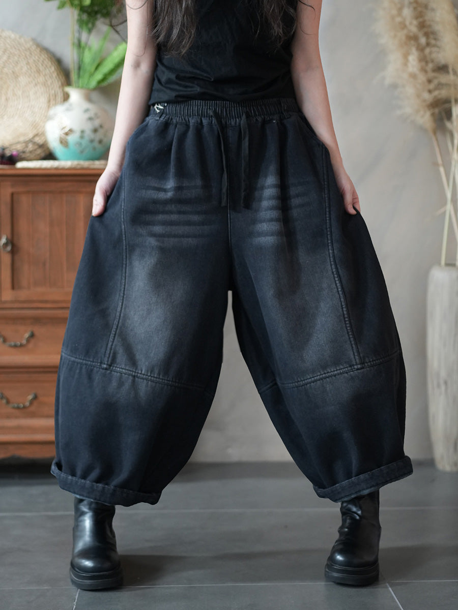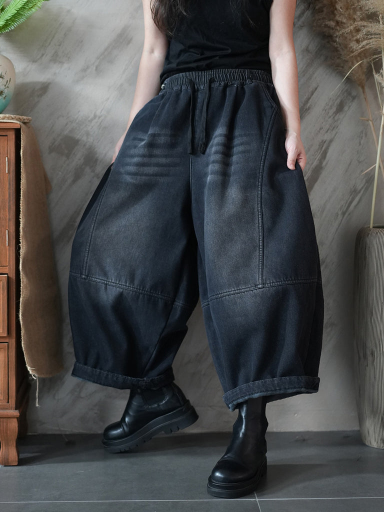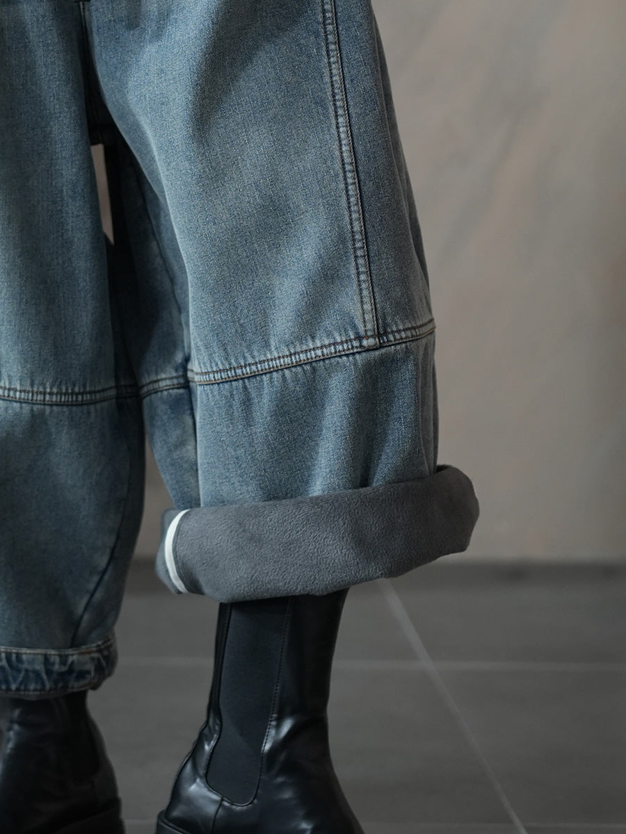 بنطلون حريمي شتوي من قماش الدنيم المبطن بالصوف بلون نقي