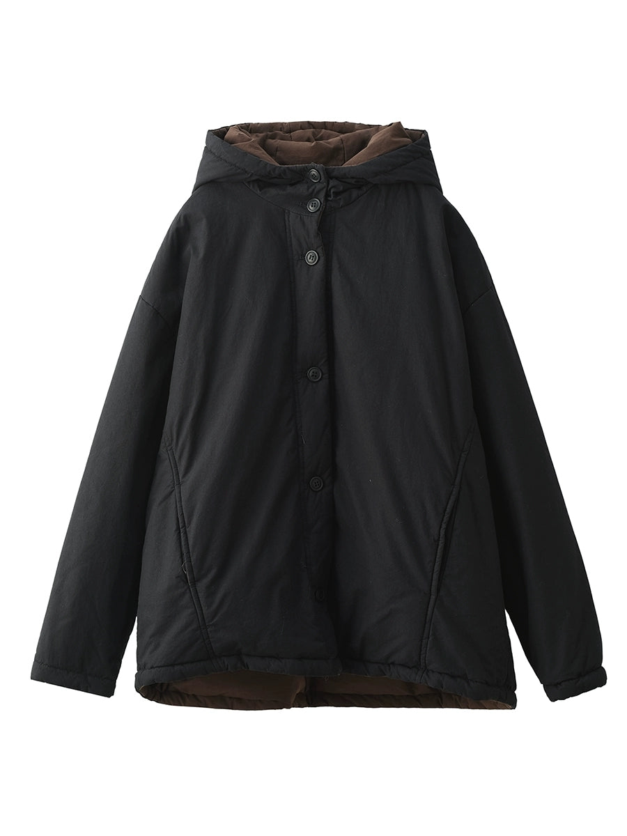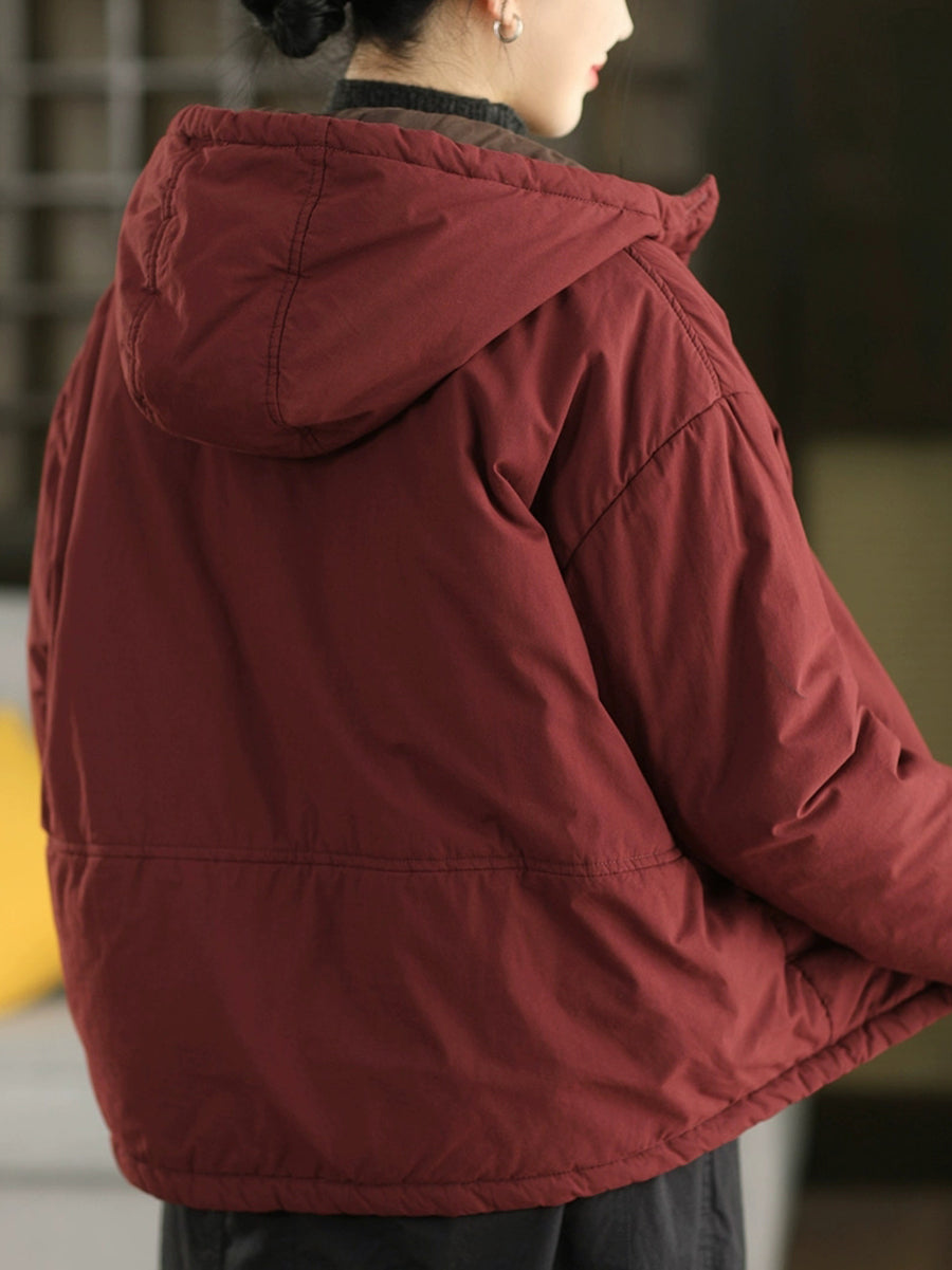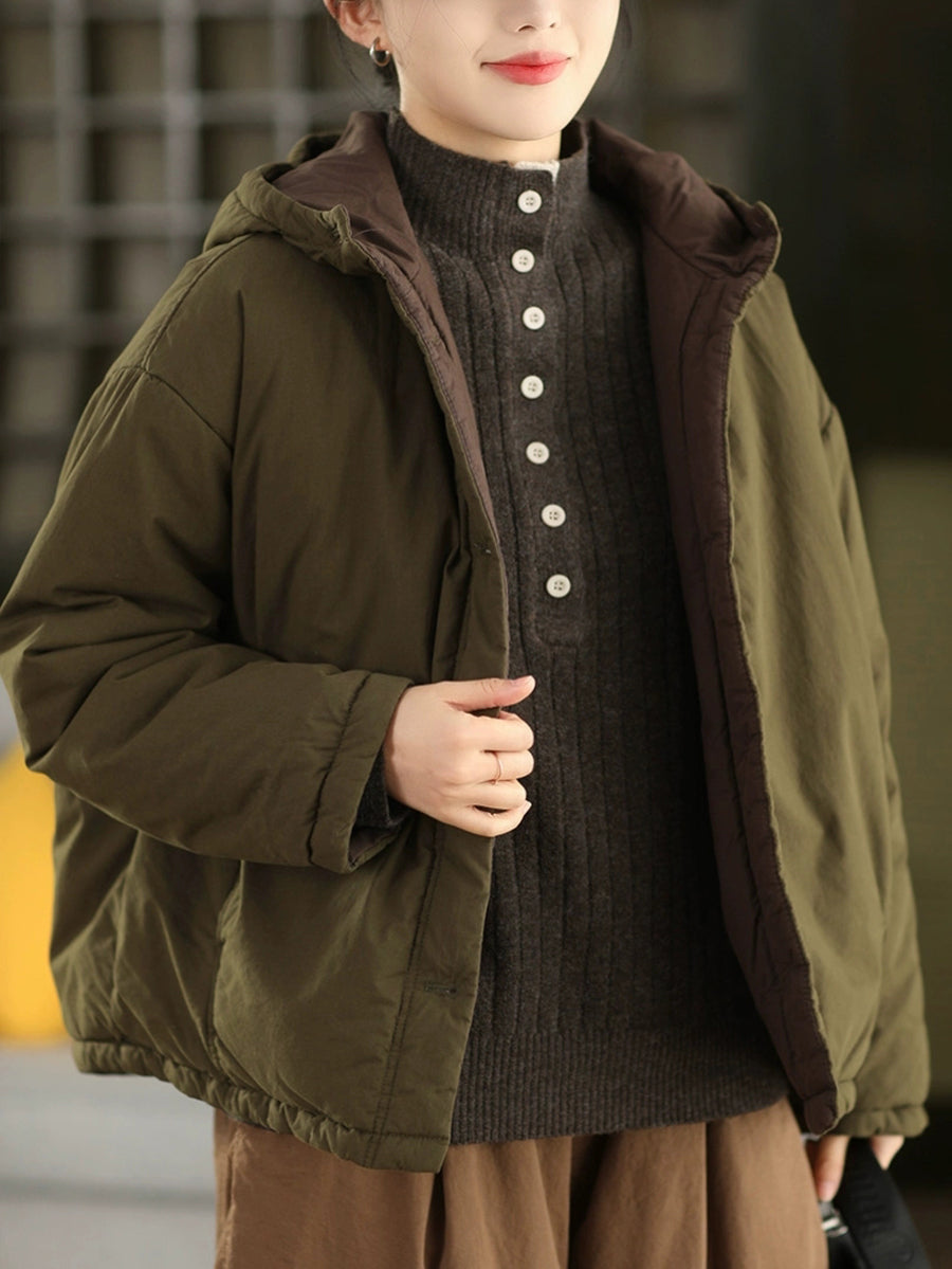 معطف شتوي نسائي كلاسيكي مبطن بغطاء رأس ولون سادة
