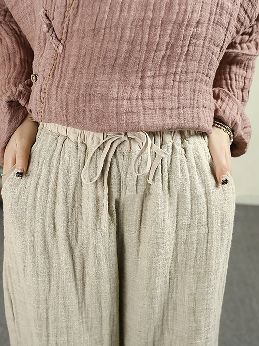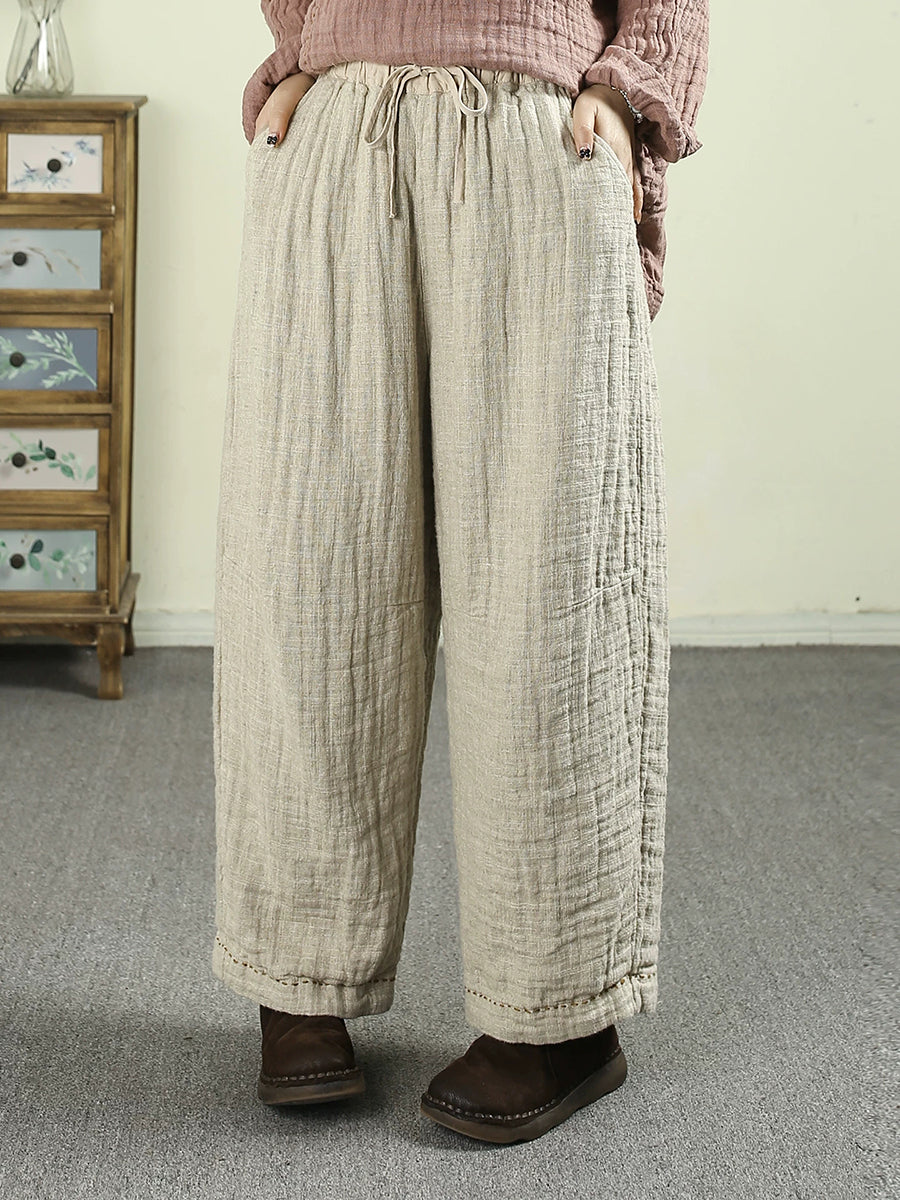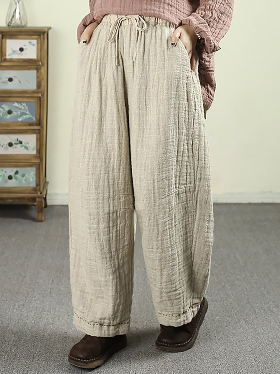 بنطلون حريمي مبطن بألوان سادة للنساء في فصل الشتاء بتصميم كلاسيكي
