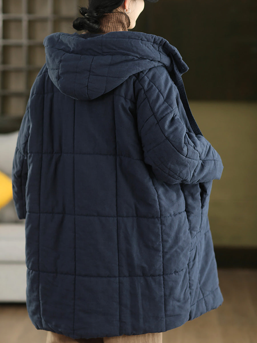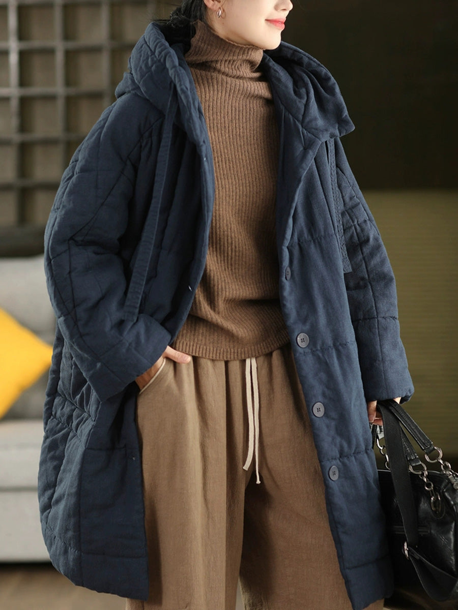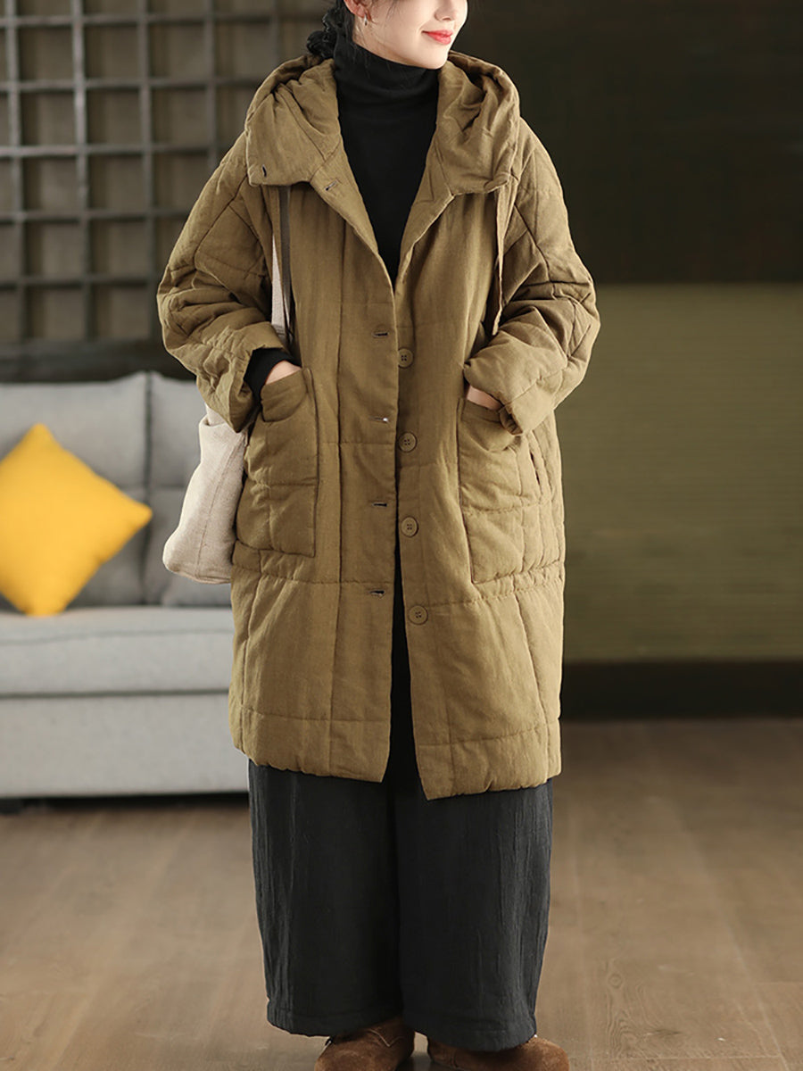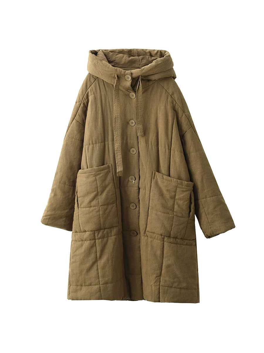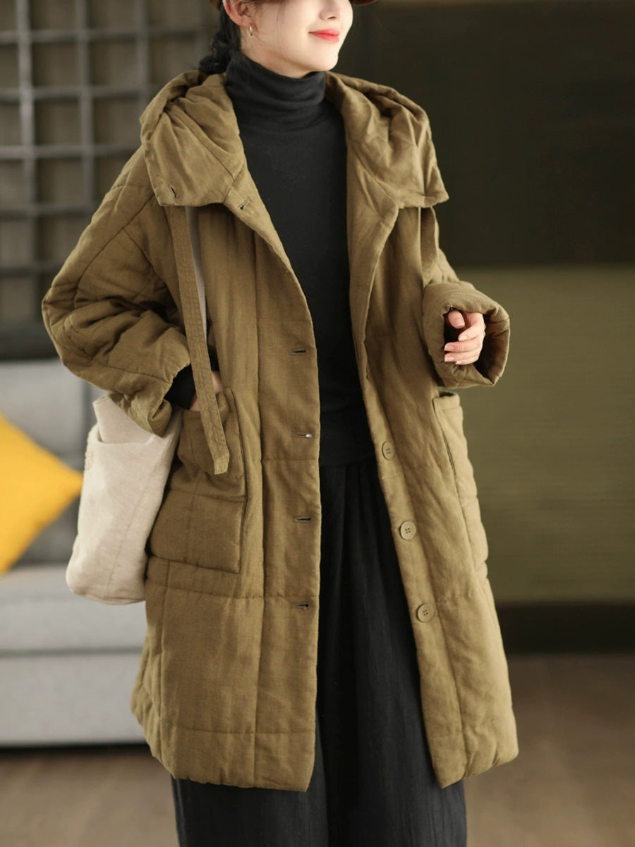 معطف شتوي نسائي مبطن بغطاء رأس من قماش الرامي بتصميم كلاسيكي