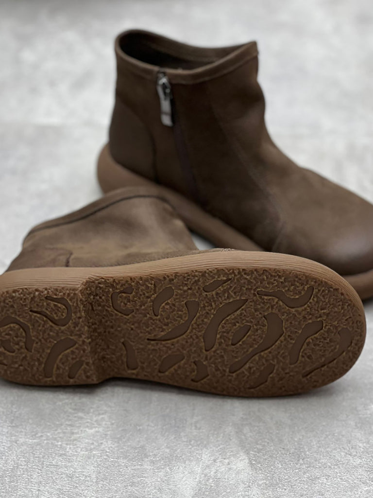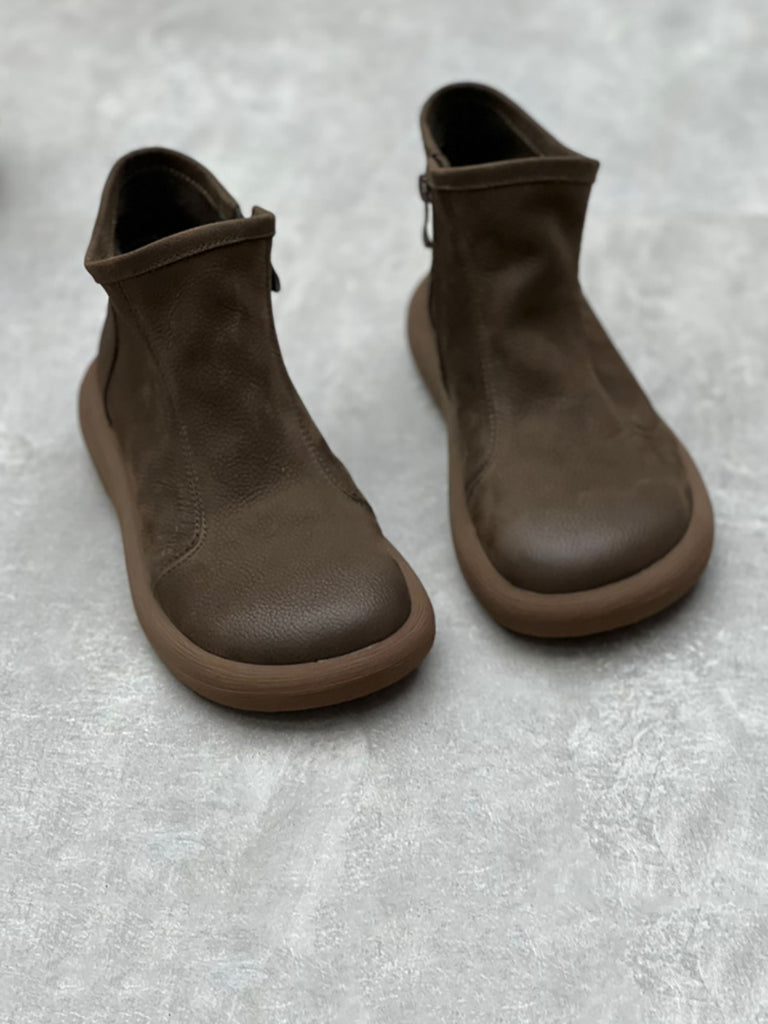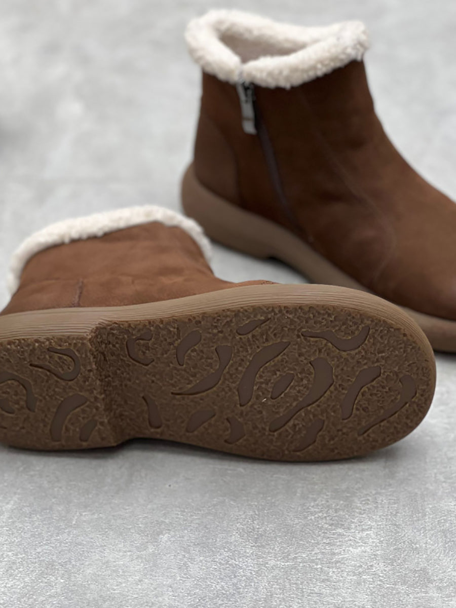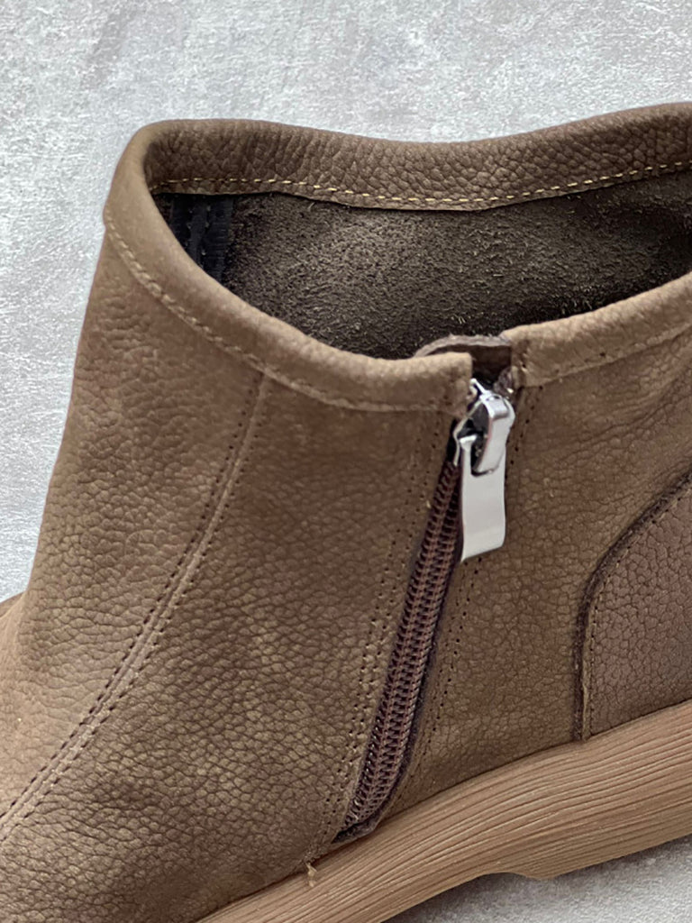 حذاء نسائي شتوي مسطح من الجلد الناعم بسحاب