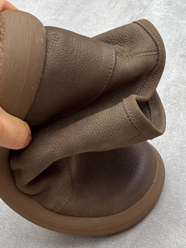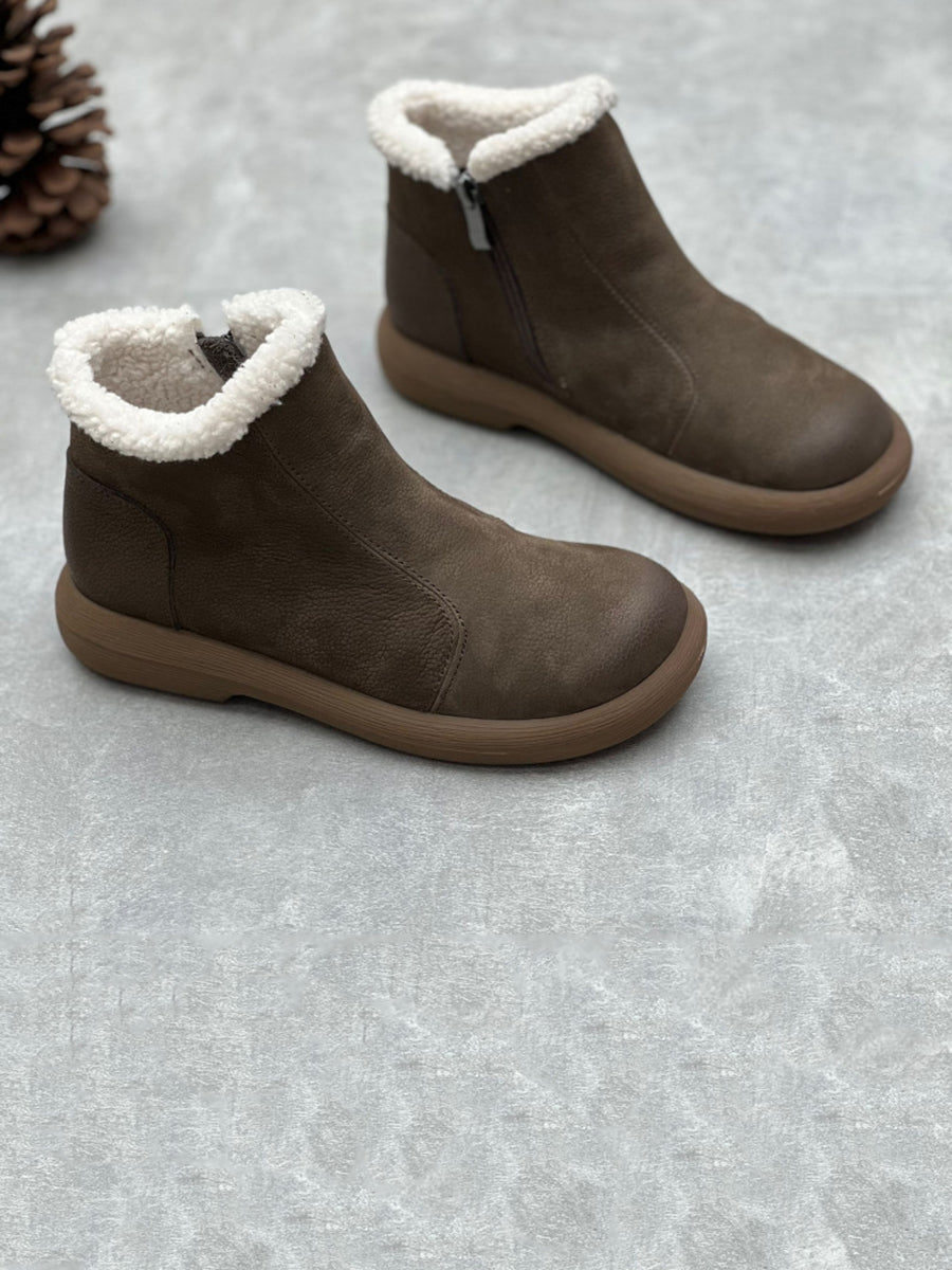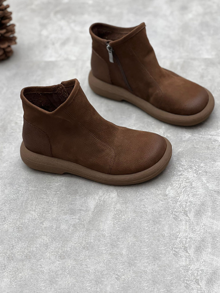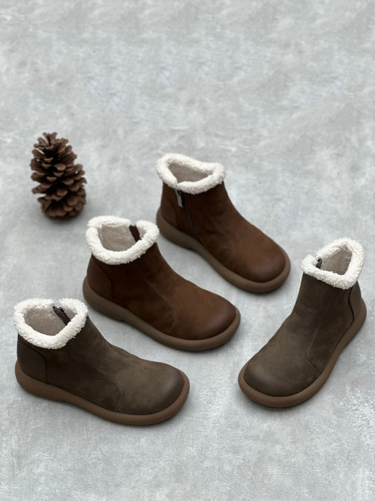 حذاء نسائي شتوي مسطح من الجلد الناعم بسحاب
