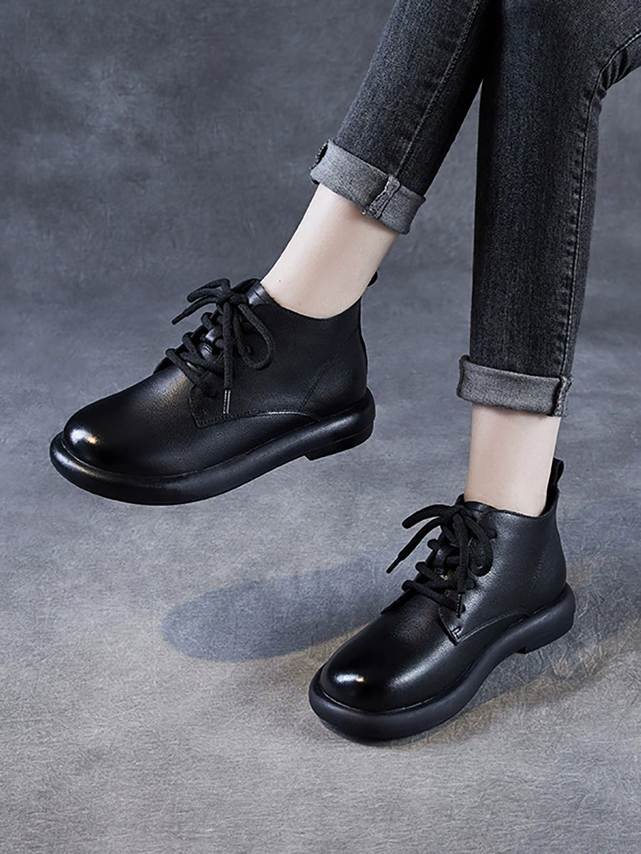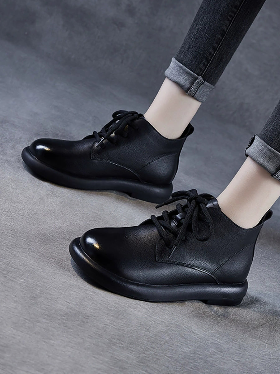 أحذية نسائية شتوية كلاسيكية من الجلد الطبيعي تصل إلى الكاحل