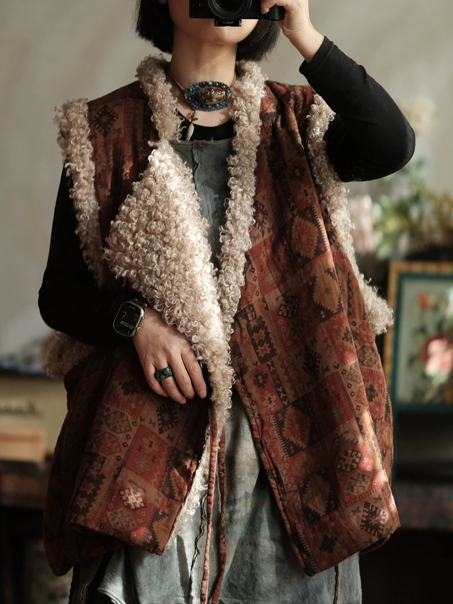 سترة صوفية نسائية شتوية عتيقة الطراز بياقة على شكل حرف V