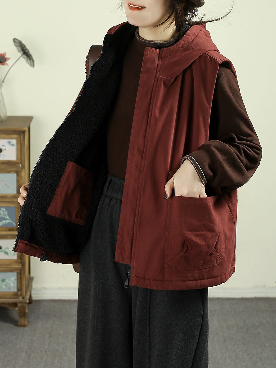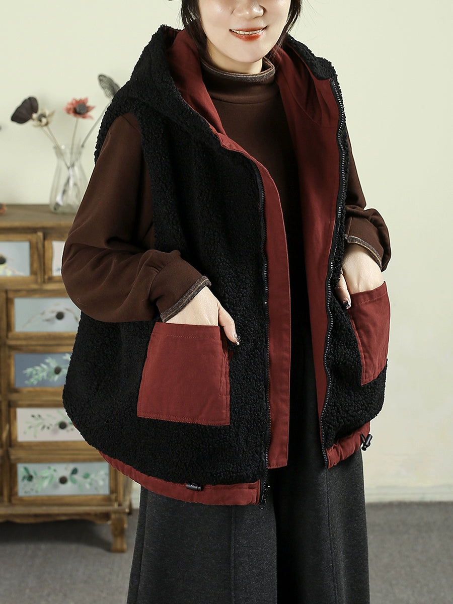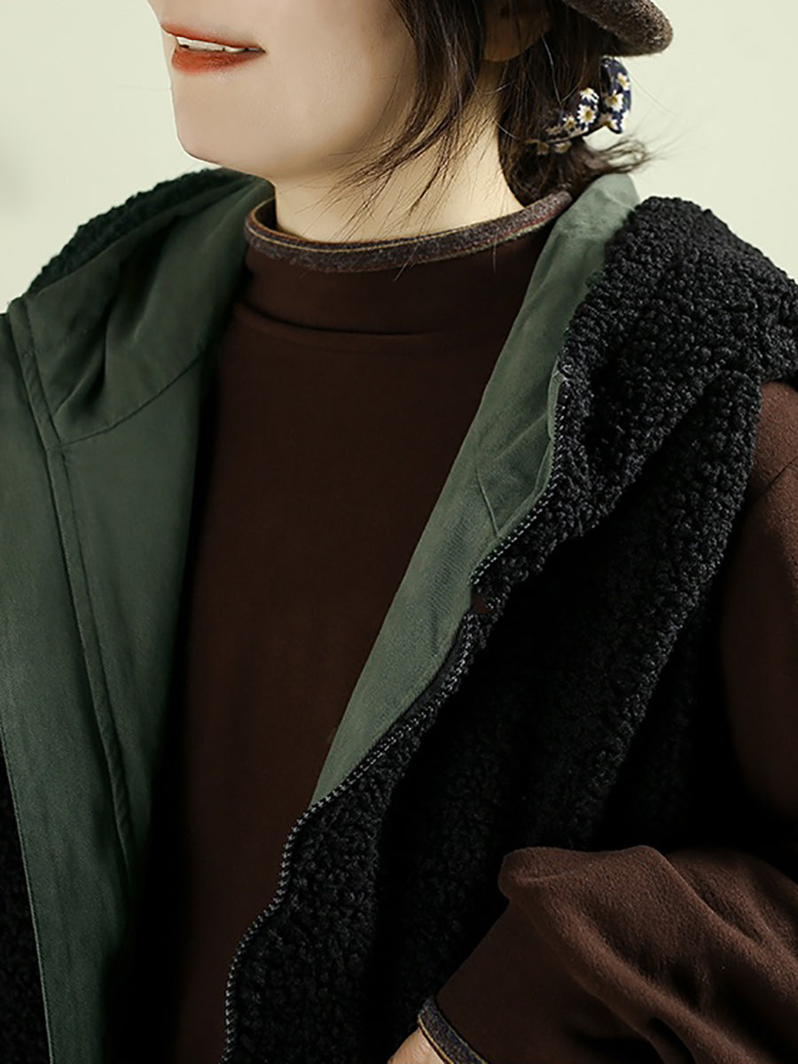 سترة شتوية نسائية عتيقة الطراز ذات وجهين بغطاء رأس