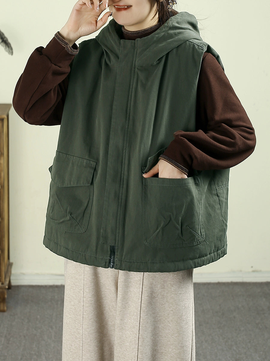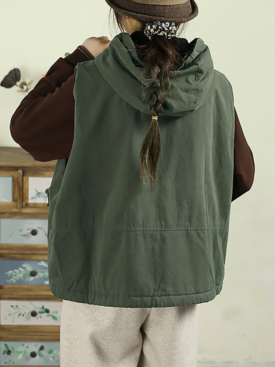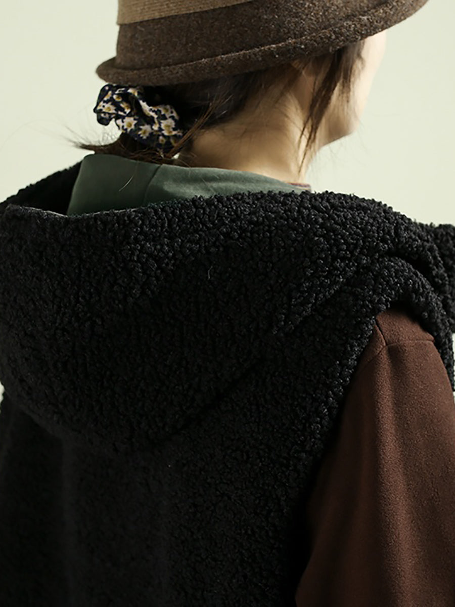 سترة شتوية نسائية عتيقة الطراز ذات وجهين بغطاء رأس