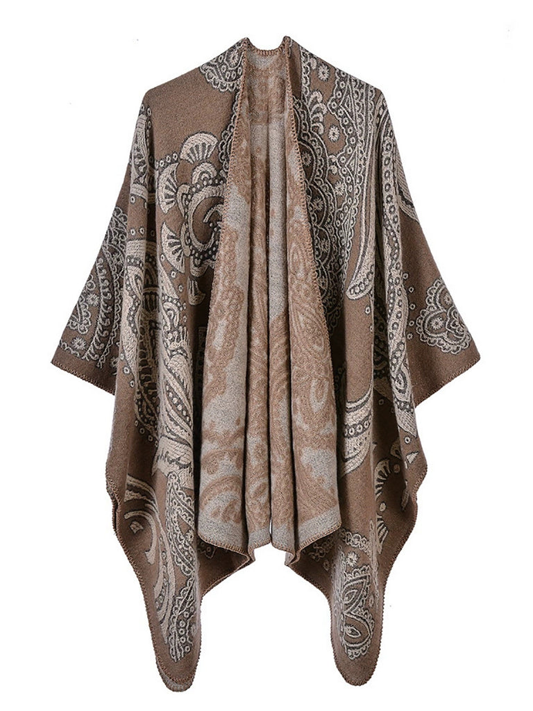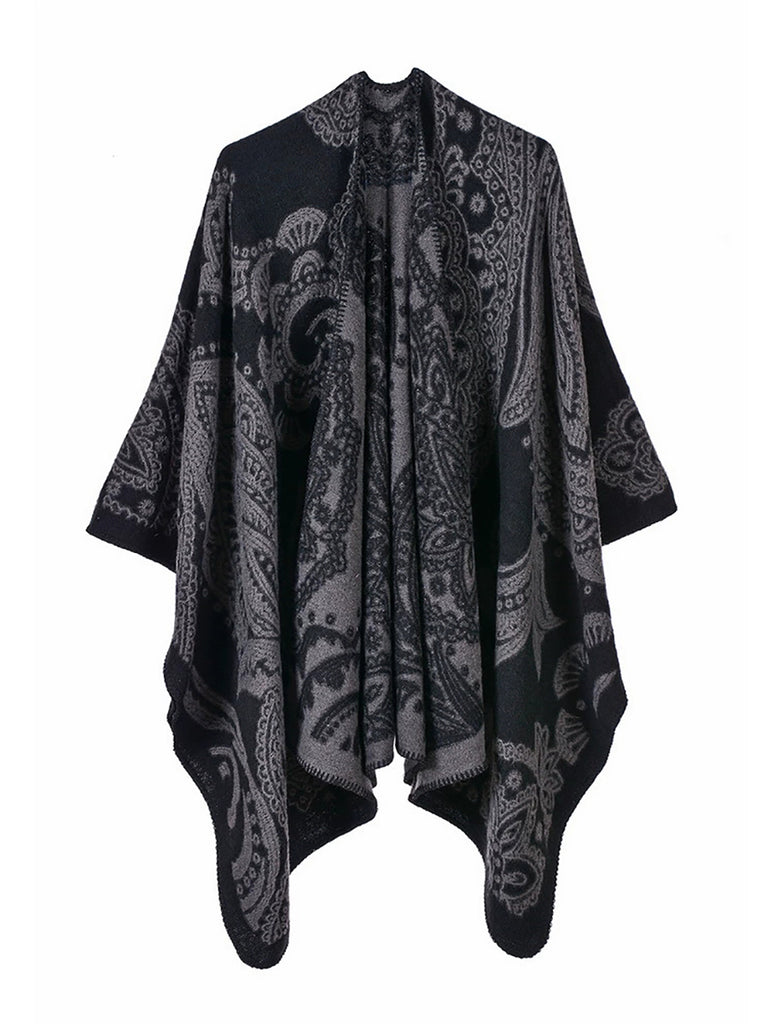 عباءة شتوية دافئة للنساء مع شال مزين بالزهور