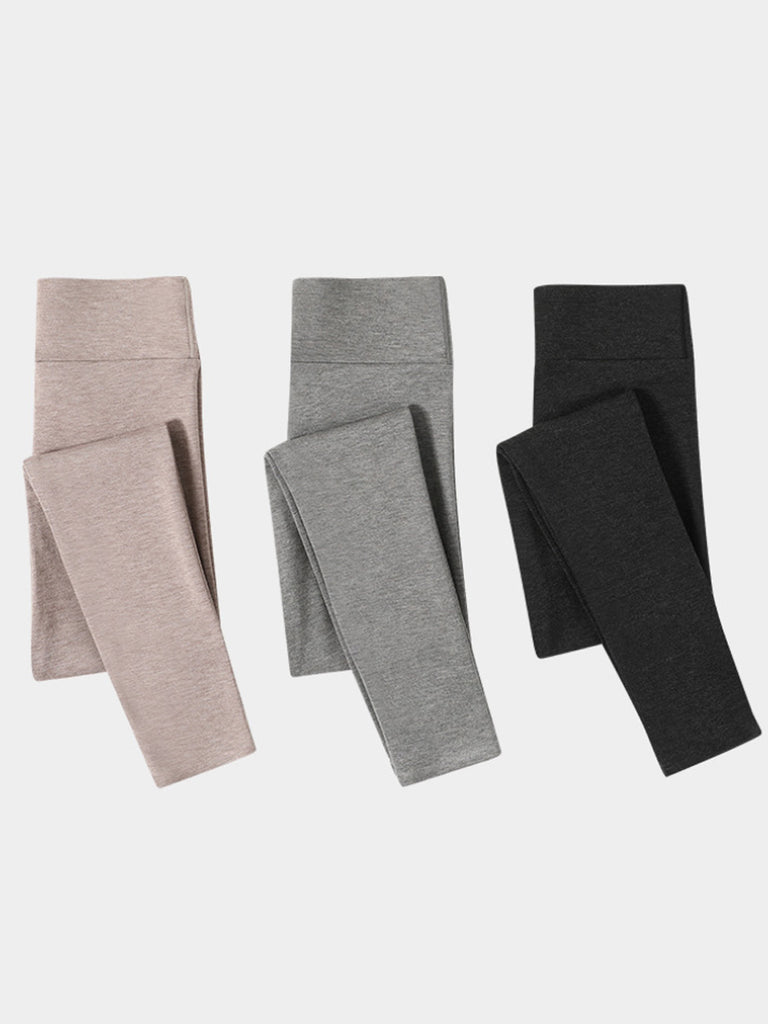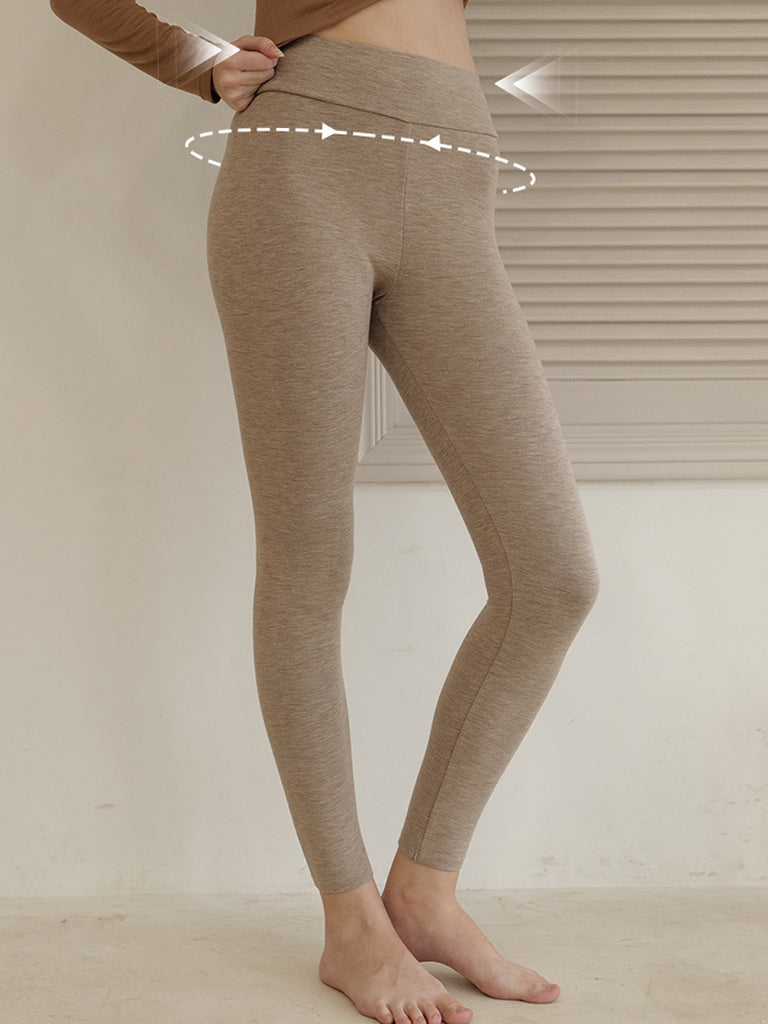 بنطلون ليجنز نسائي شتوي دافئ بلون نقي بخصر مرتفع