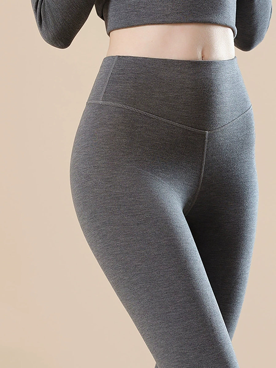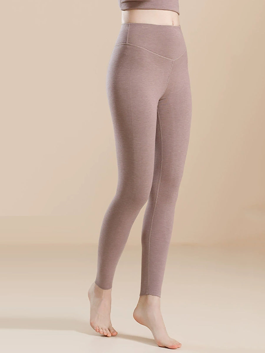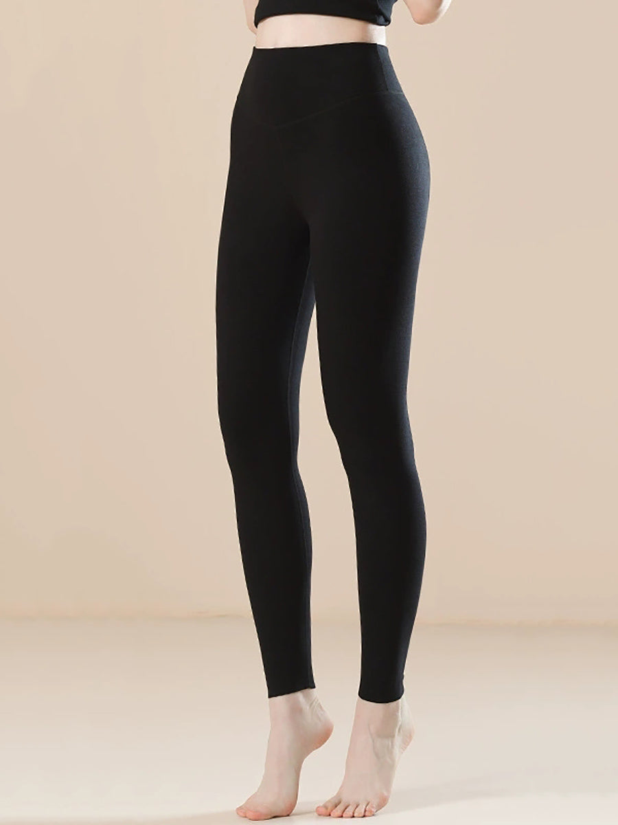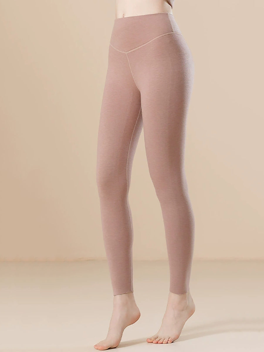 بنطلون ضيق نسائي شتوي دافئ بلون موحد وخصر عالٍ