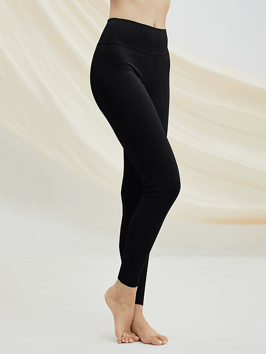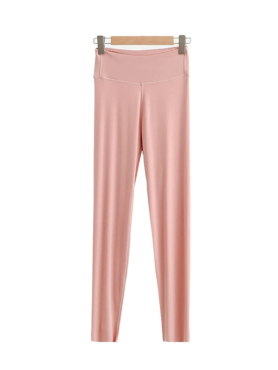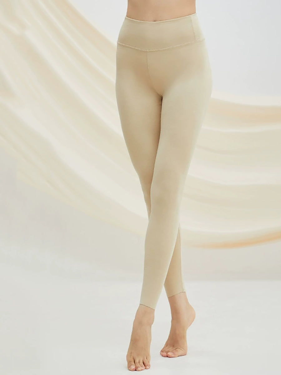 بنطلون ضيق نسائي شتوي دافئ بلون موحد وخصر عالٍ
