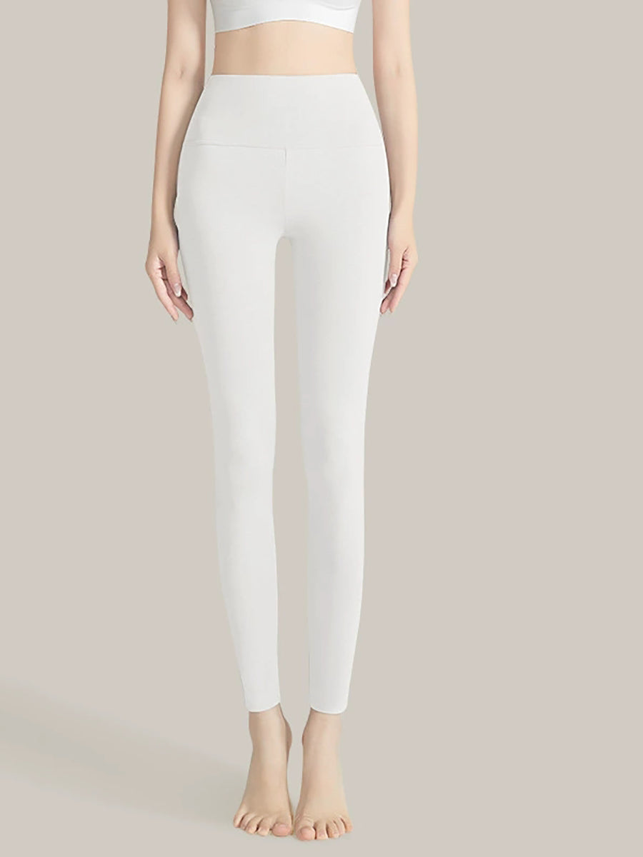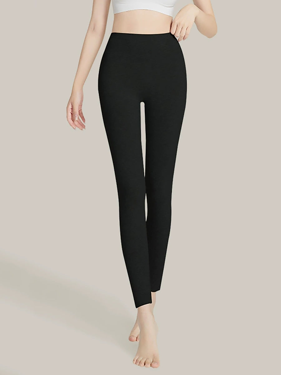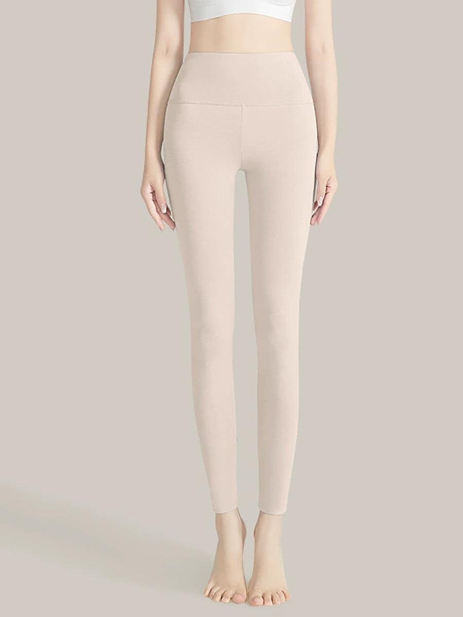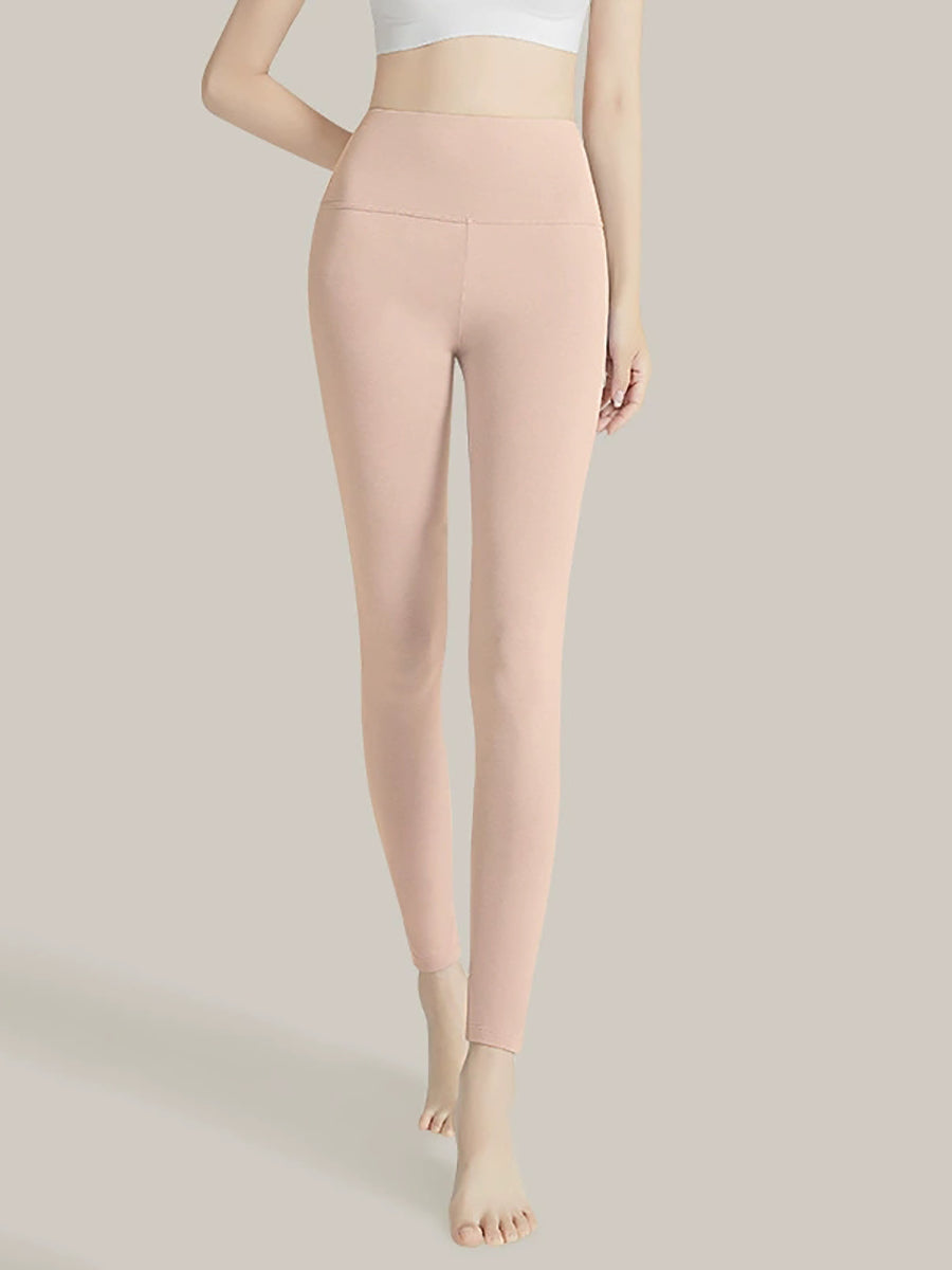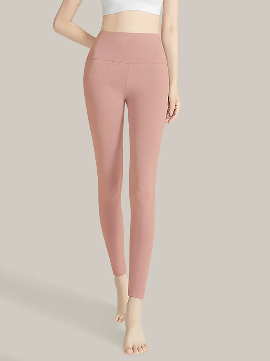 بنطلون ضيق نسائي شتوي دافئ بلون موحد وخصر عالٍ
