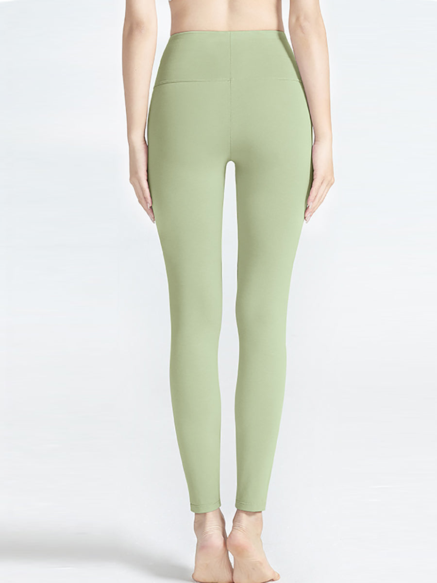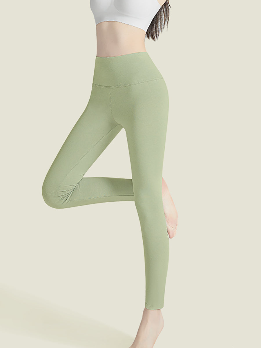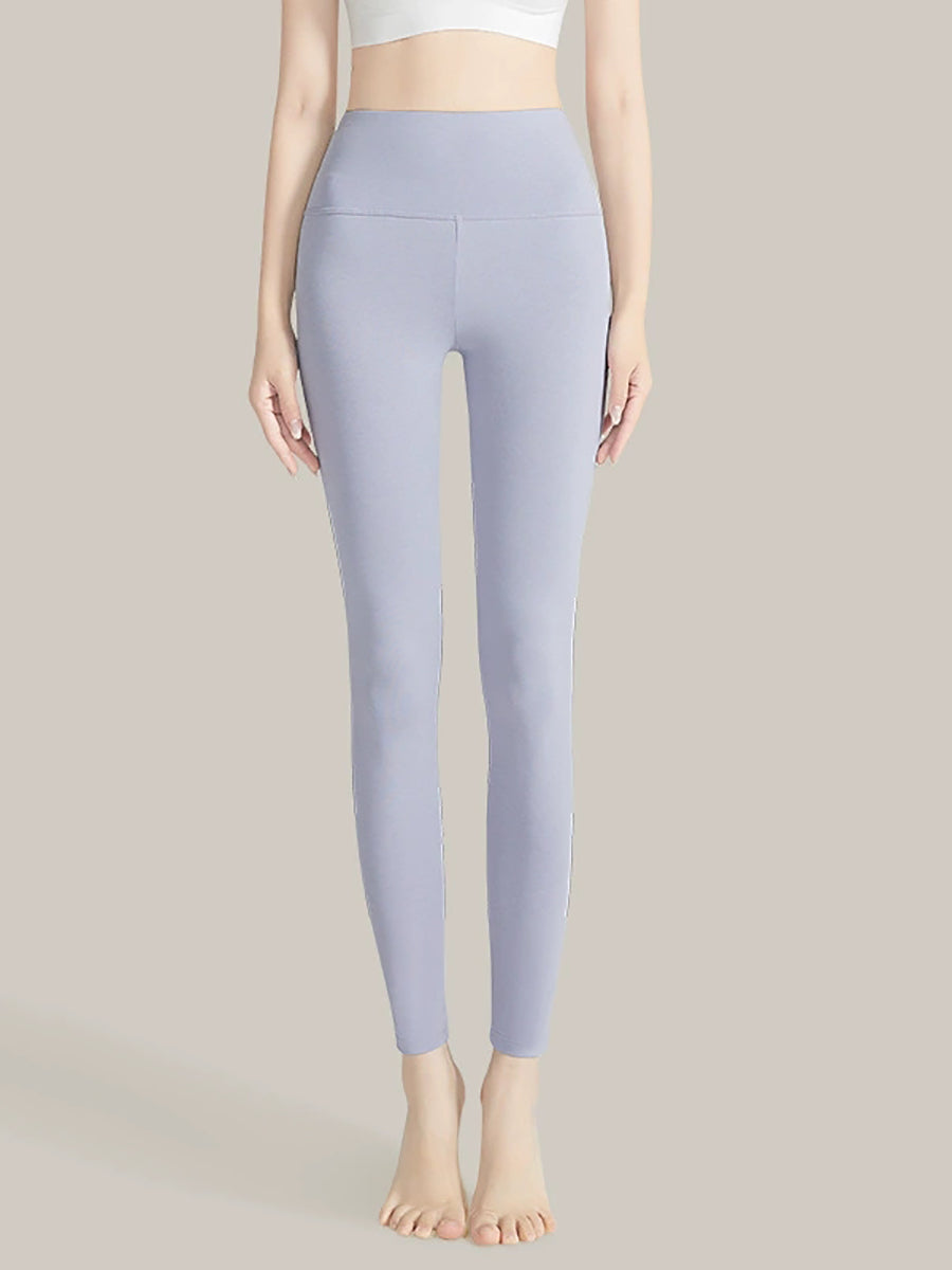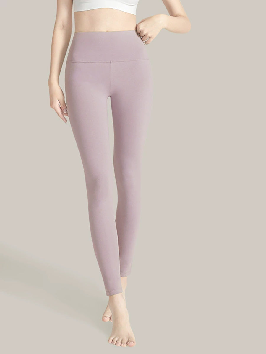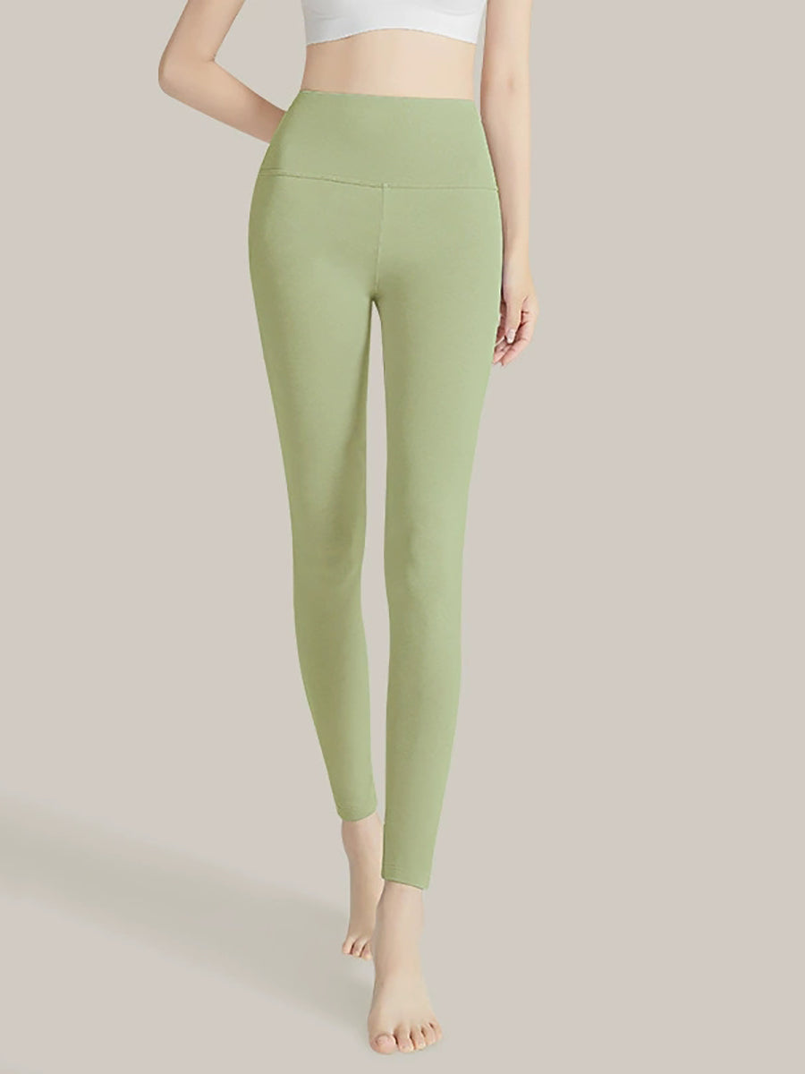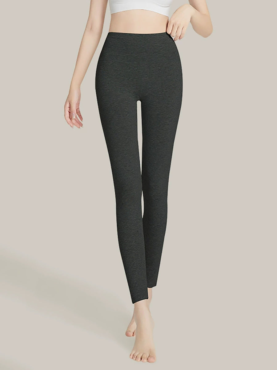 بنطلون ضيق نسائي شتوي دافئ بلون موحد وخصر عالٍ