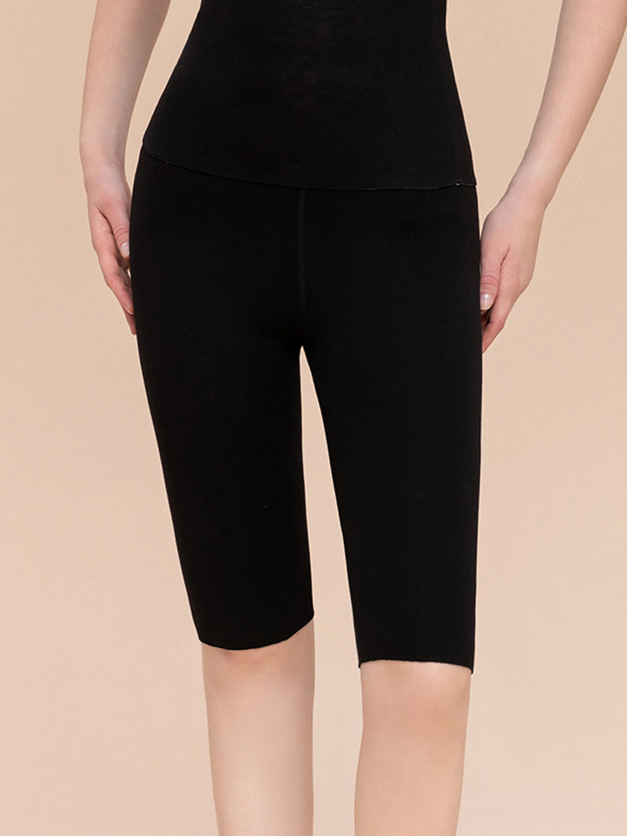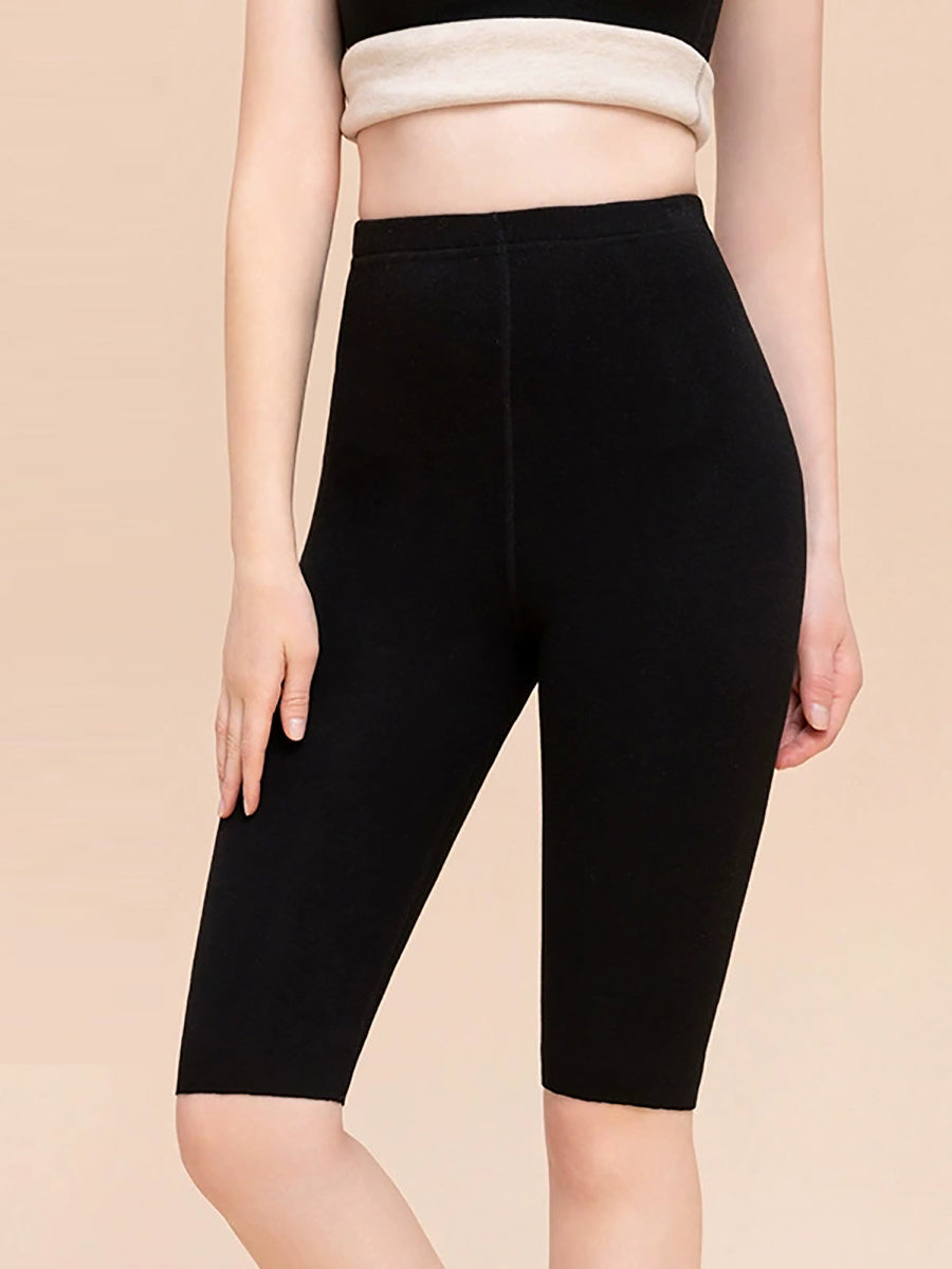 بنطلون ليجنز قصير عالي الخصر للنساء، دافئ، بلون موحد، مناسب لفصل الشتاء